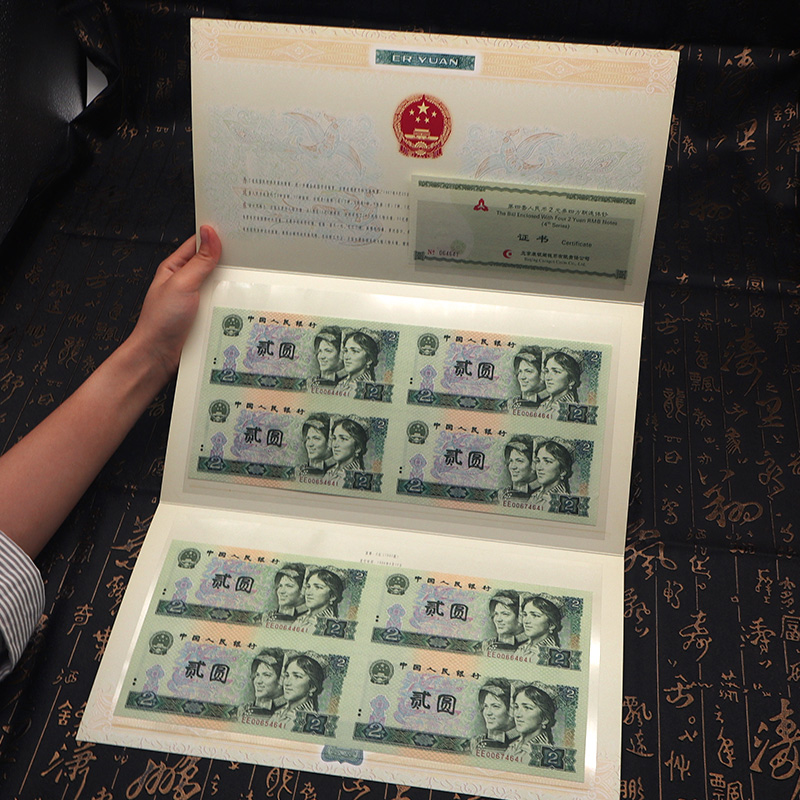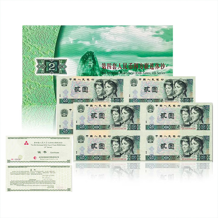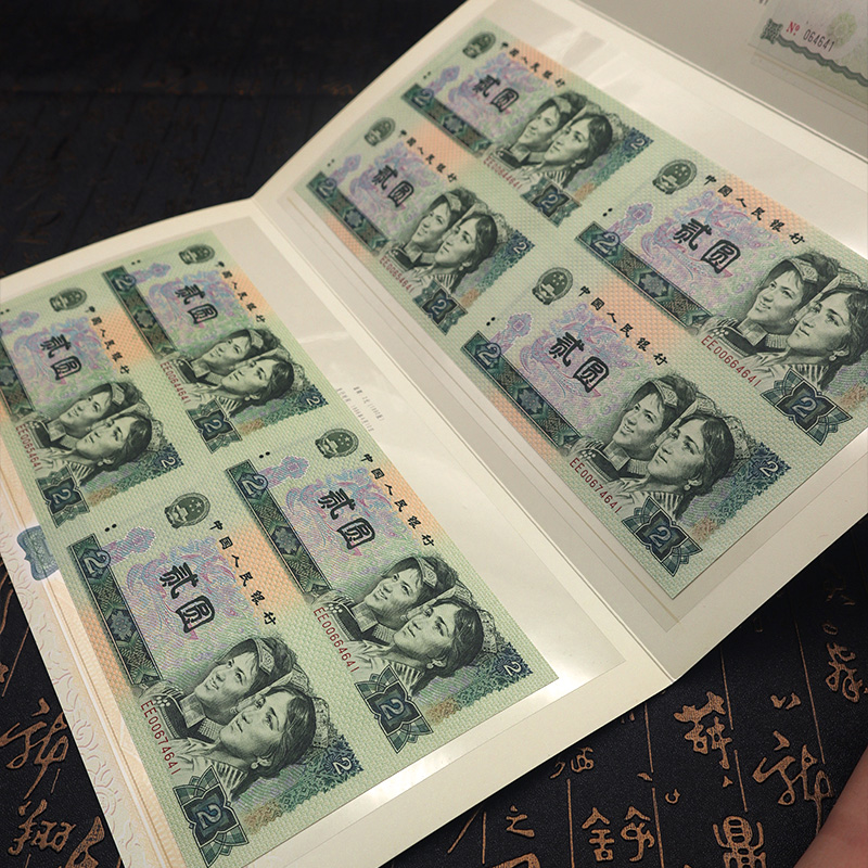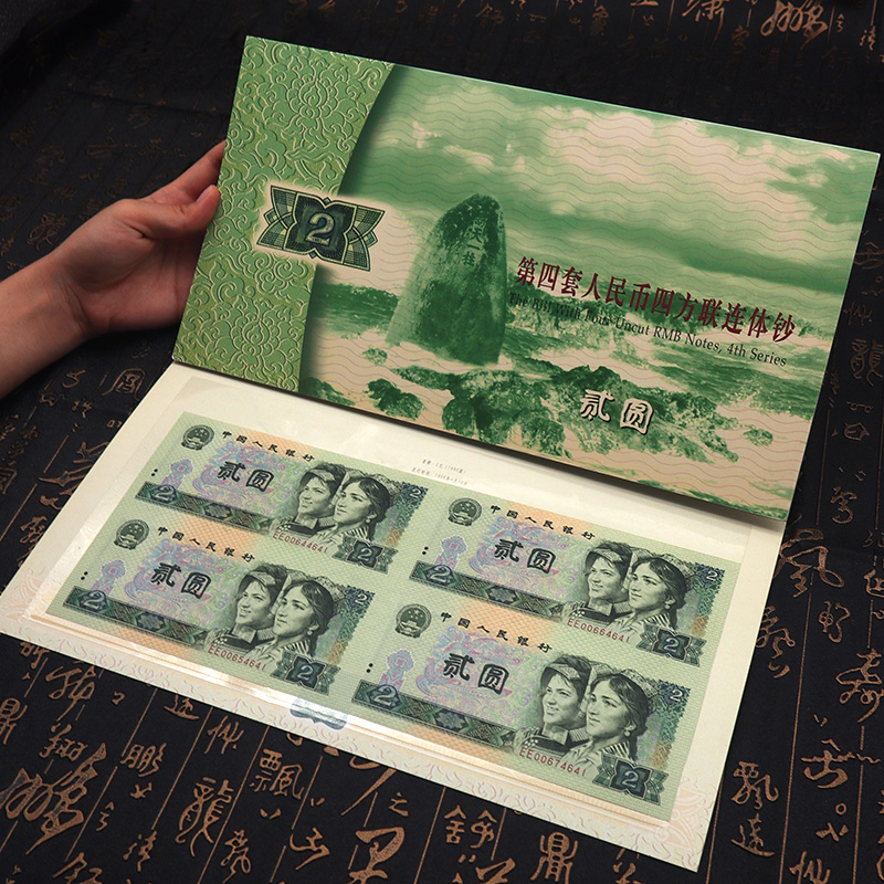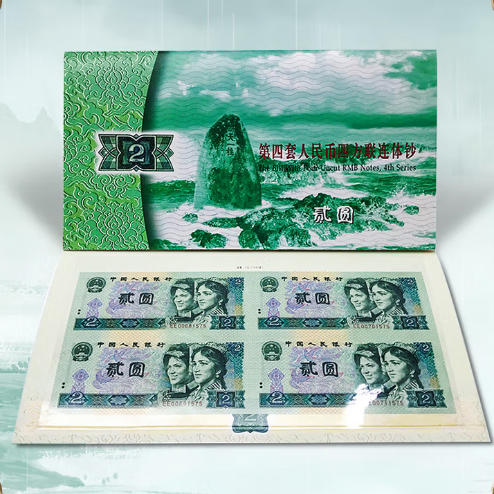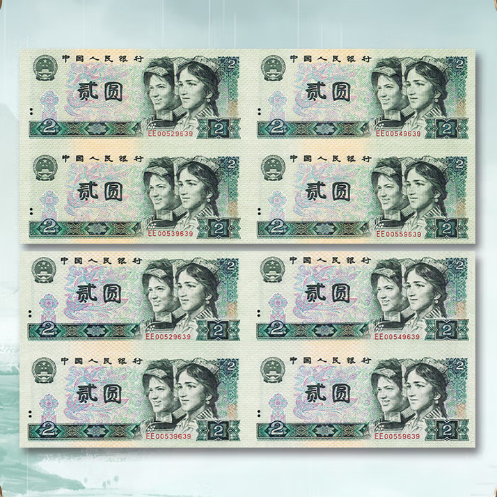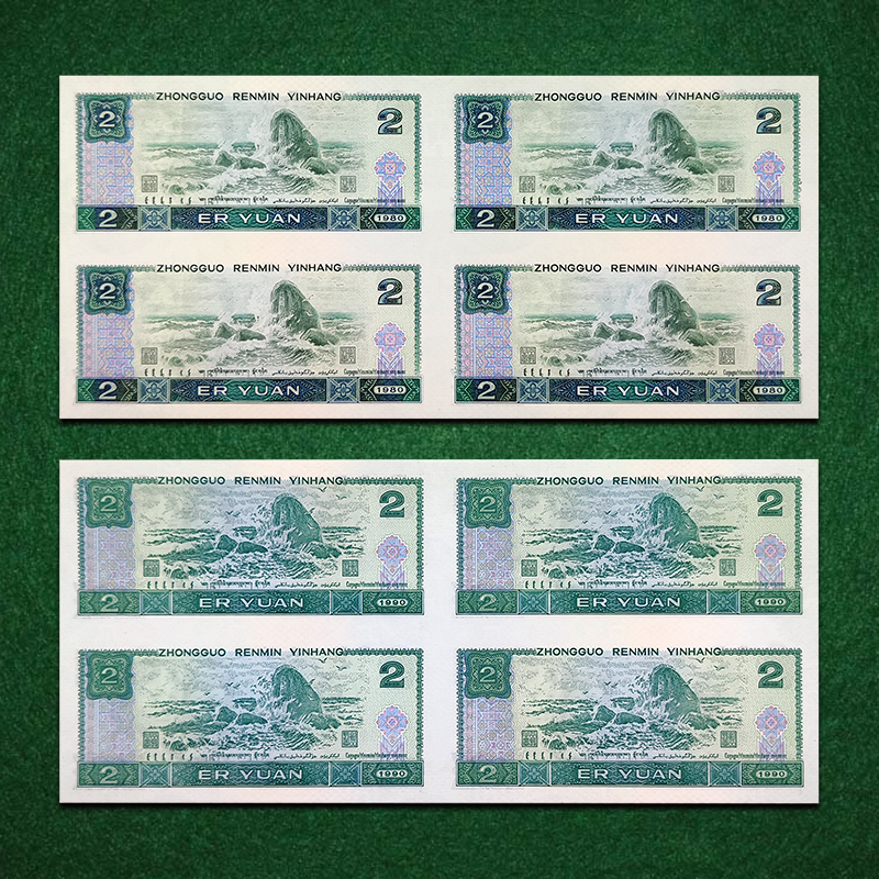 第四套人民币2元四方联连体钞 含80版钞和90版钞各一整张