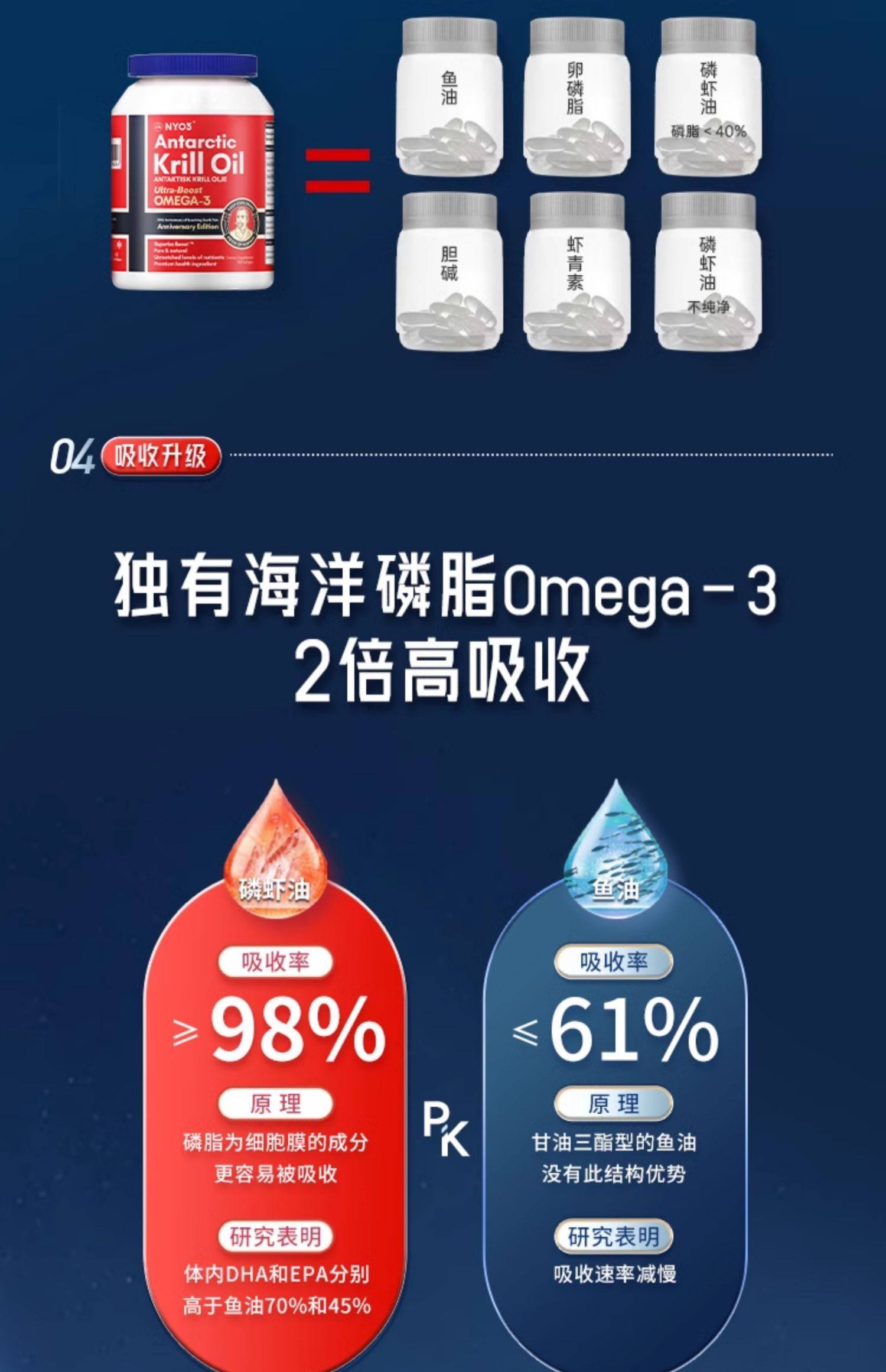 【5瓶巩固装】NYO3挪威进口纯南极磷虾油59海洋磷脂鱼油升级