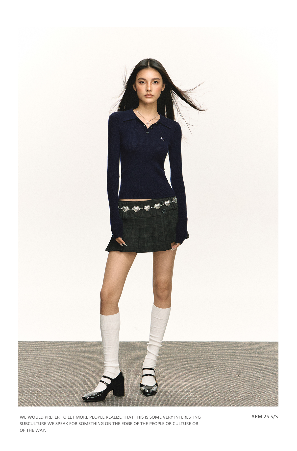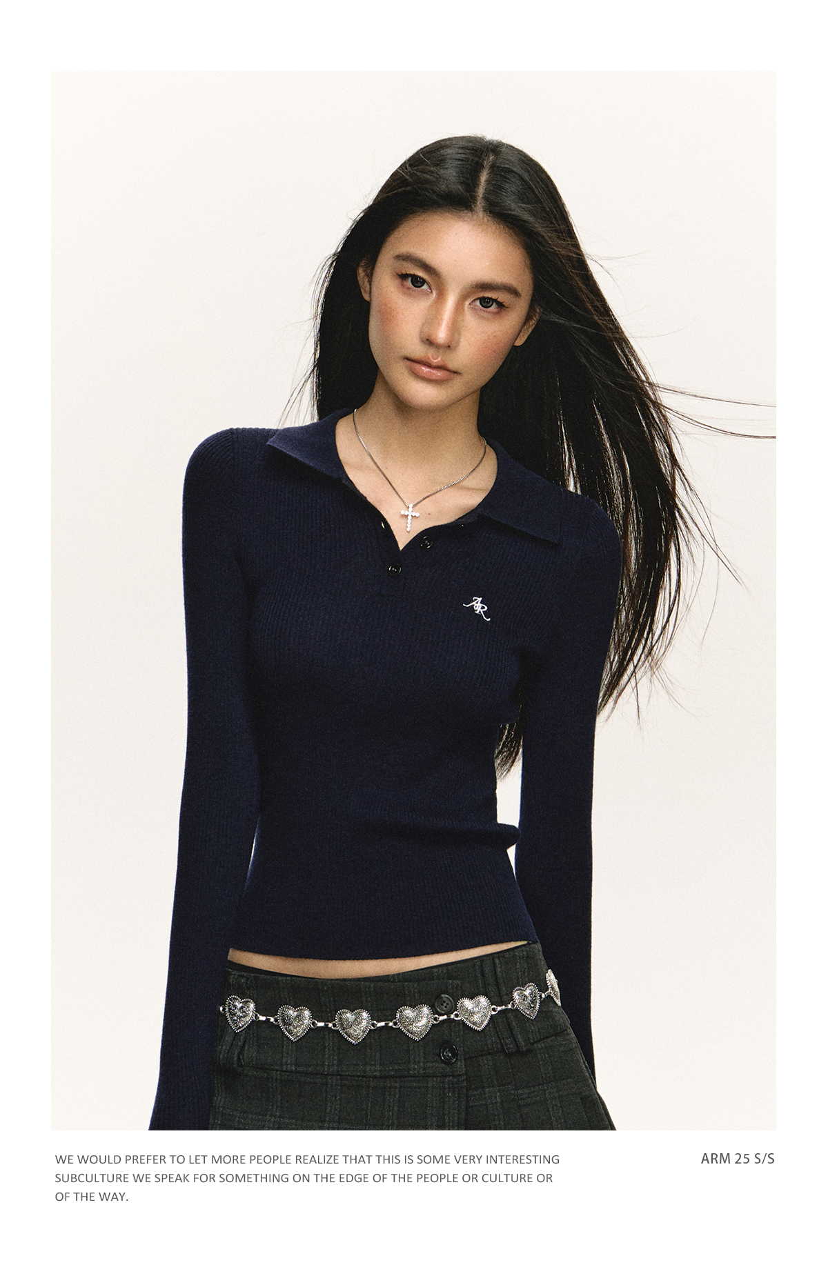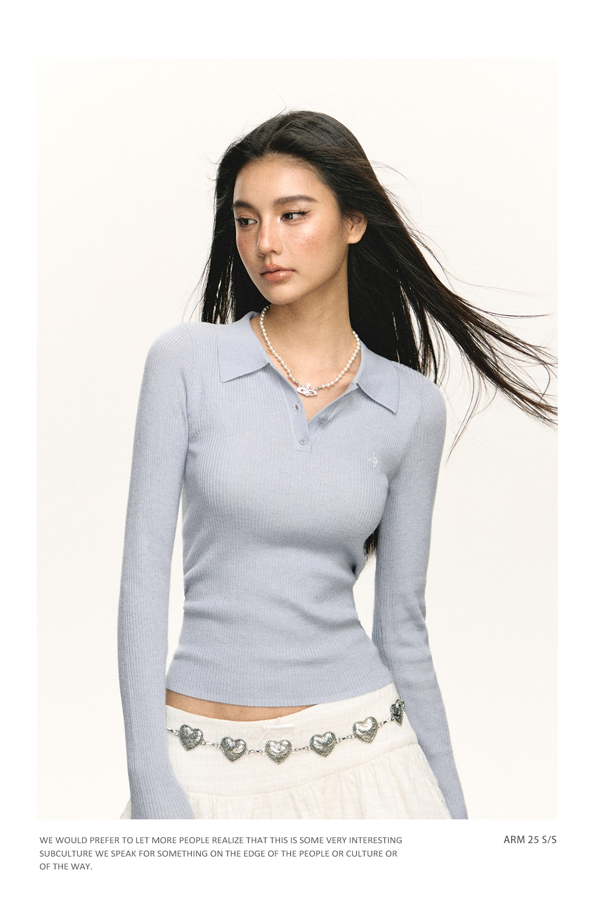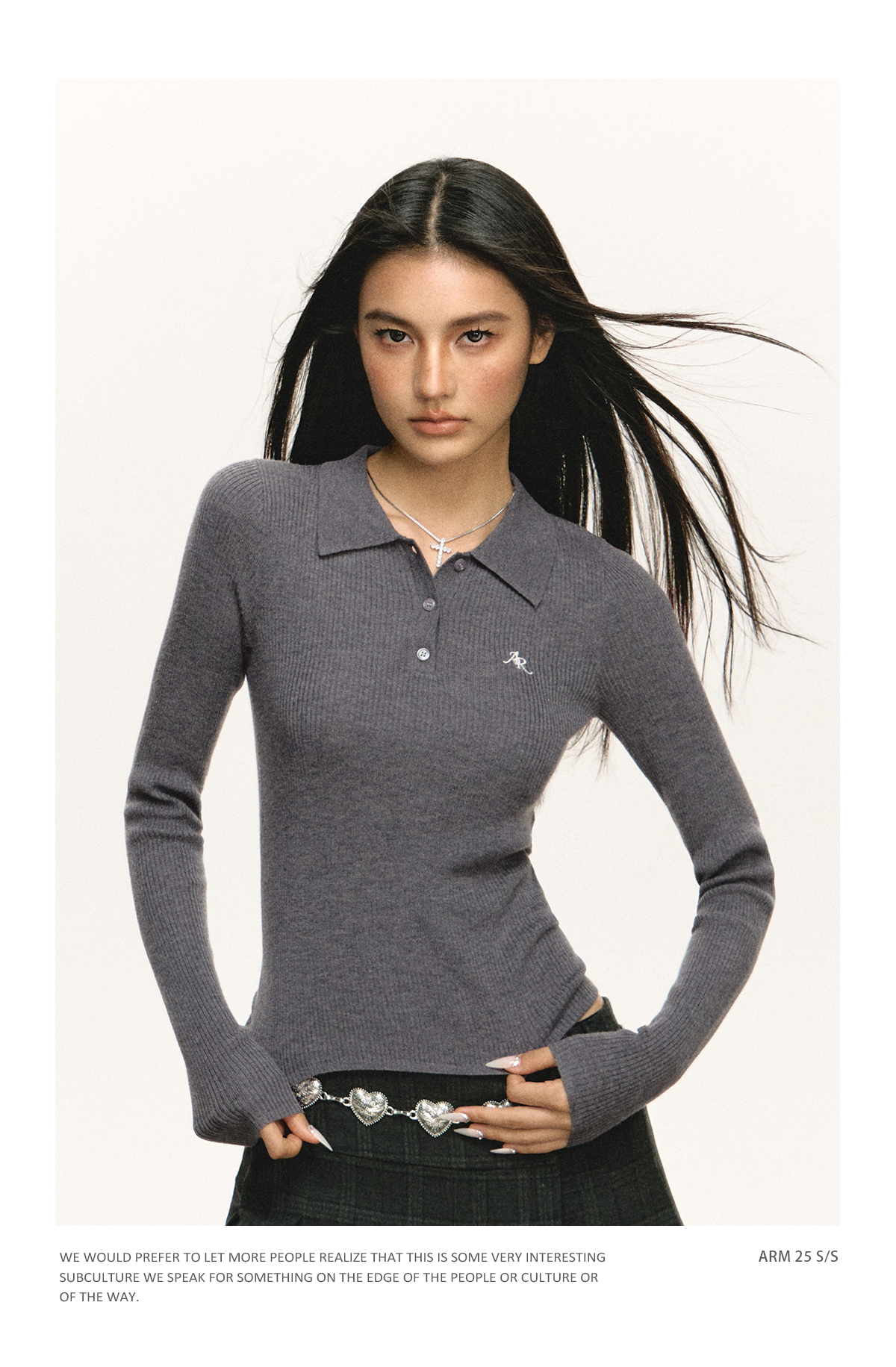 Ariseism 美式复古修身翻领针织衫女2025春季新款内搭打底上衣