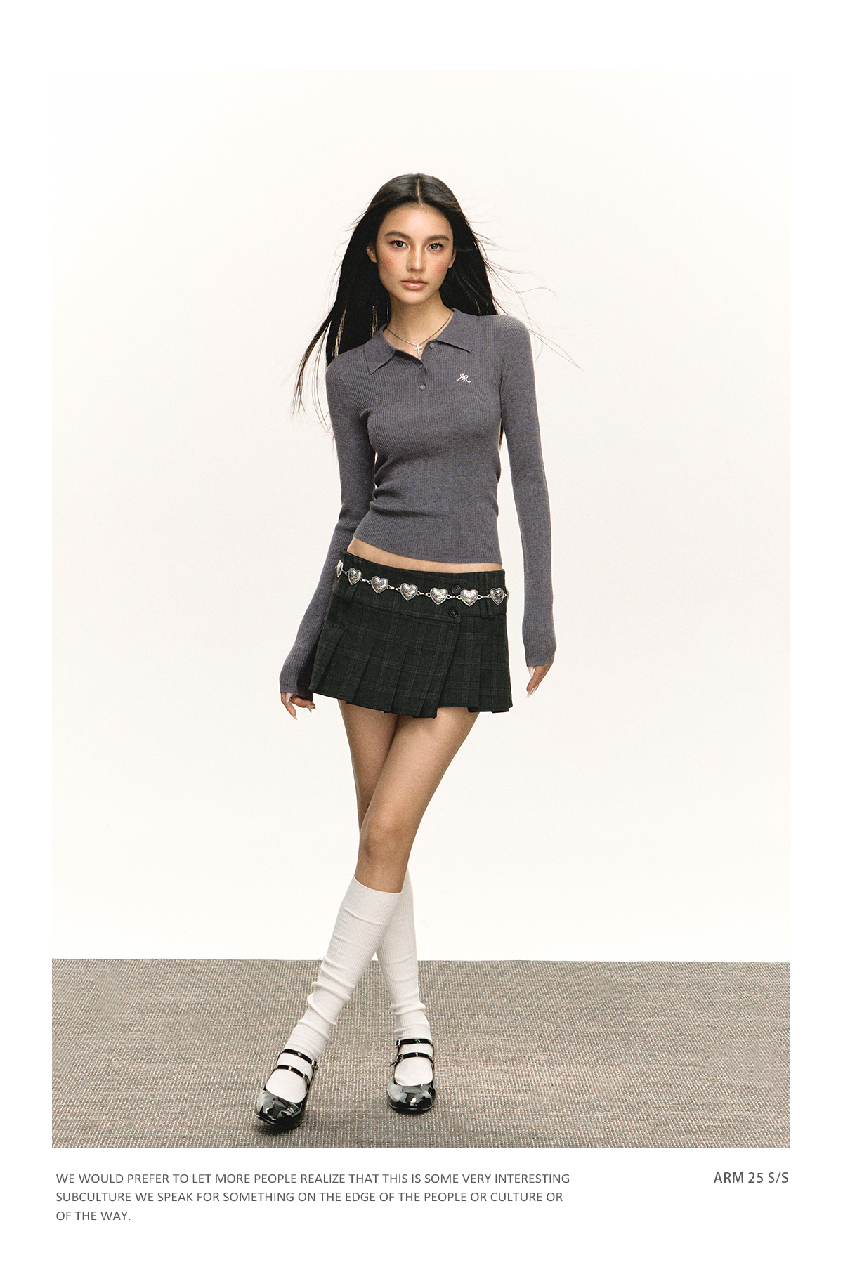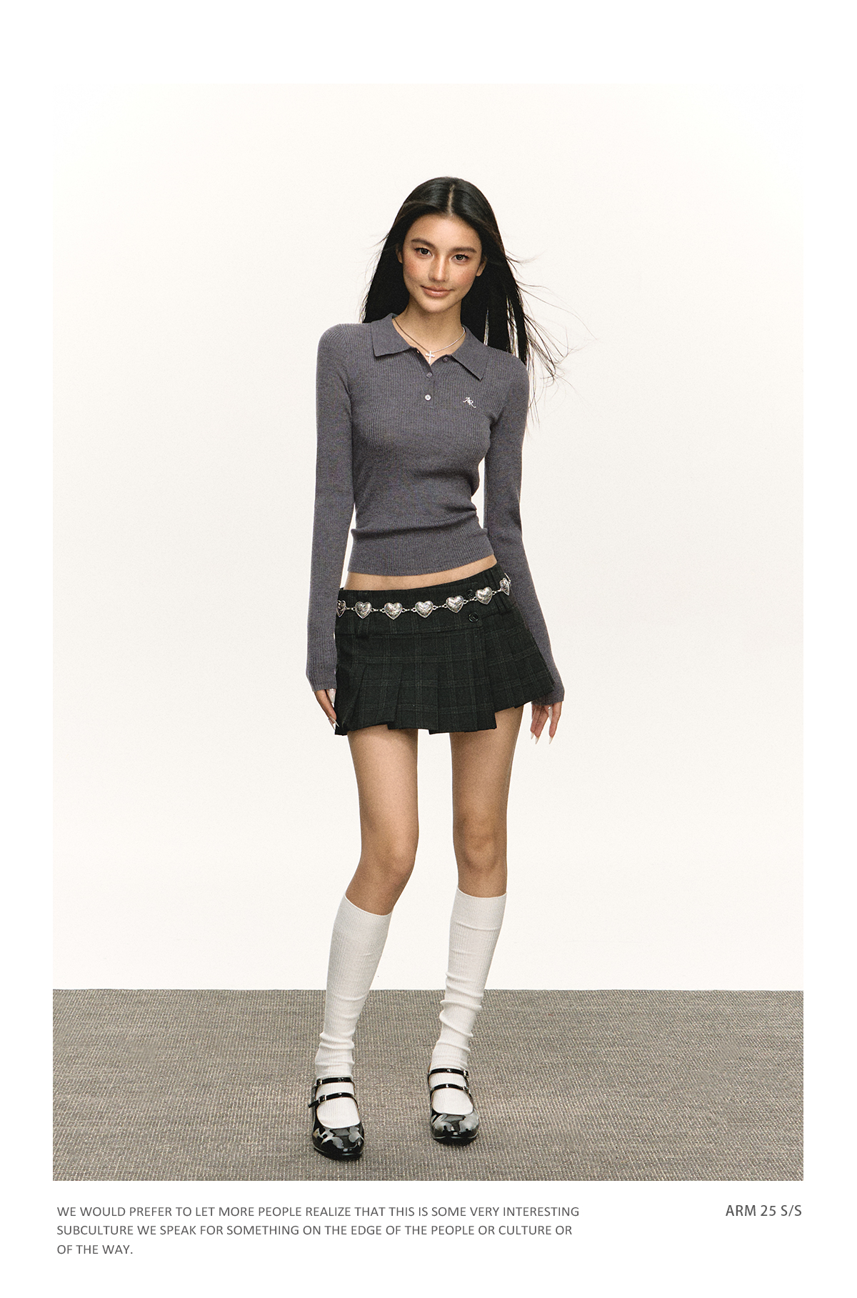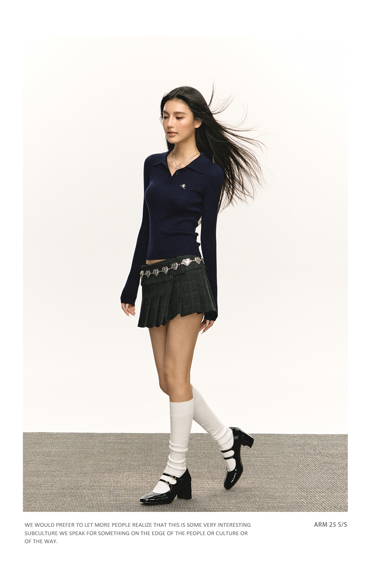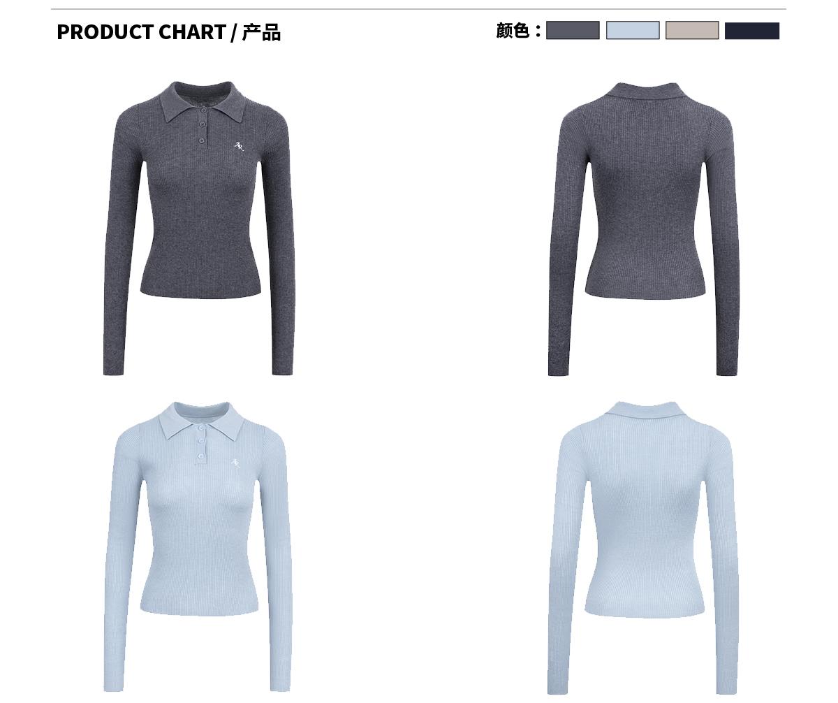 Ariseism 美式复古修身翻领针织衫女2025春季新款内搭打底上衣