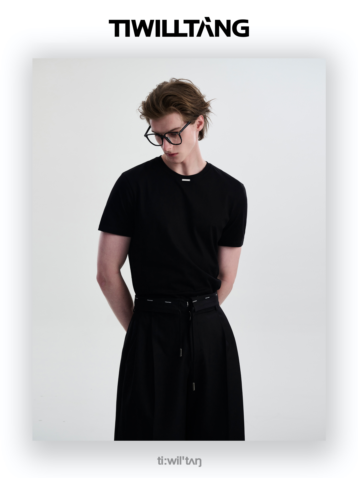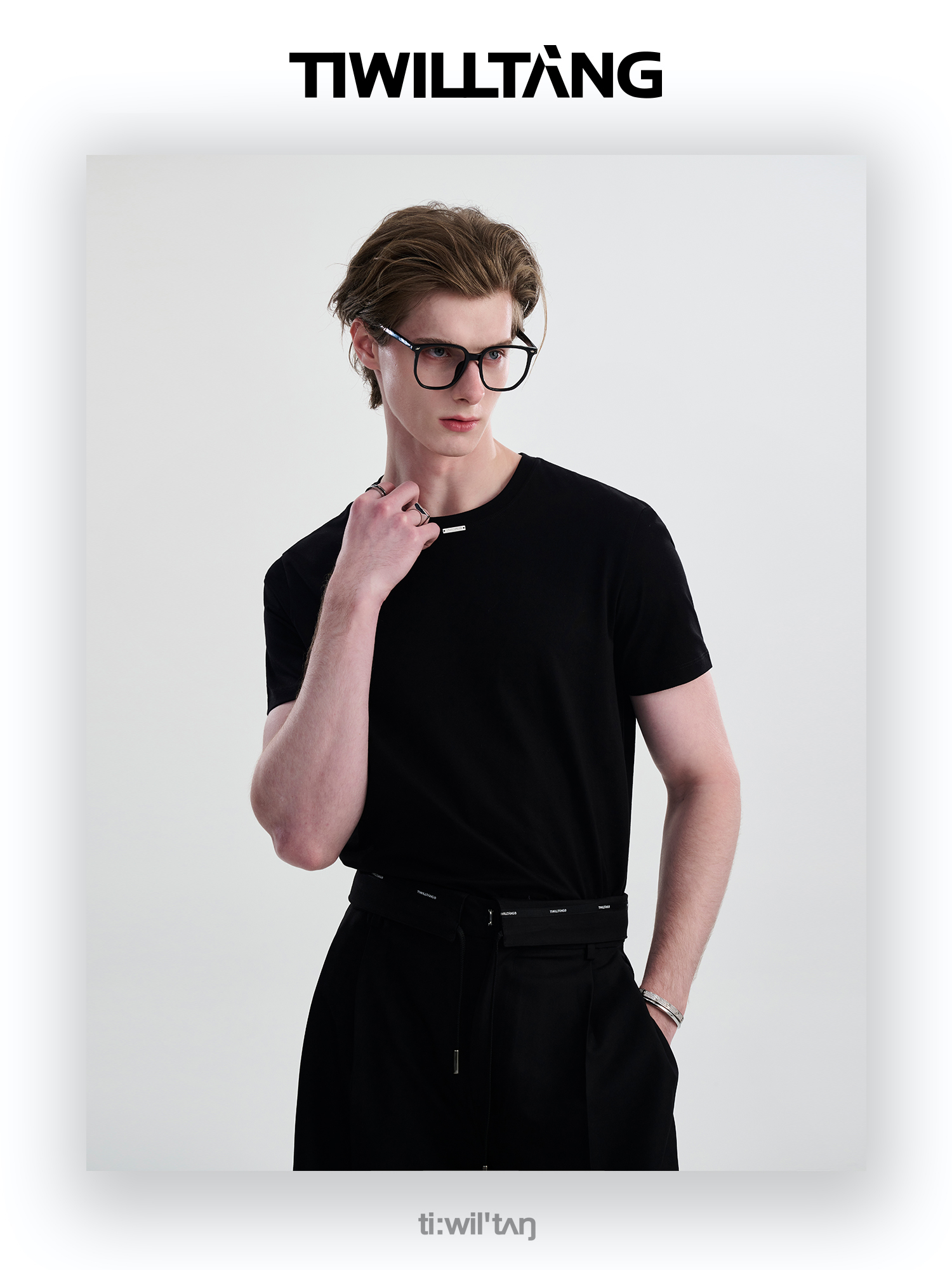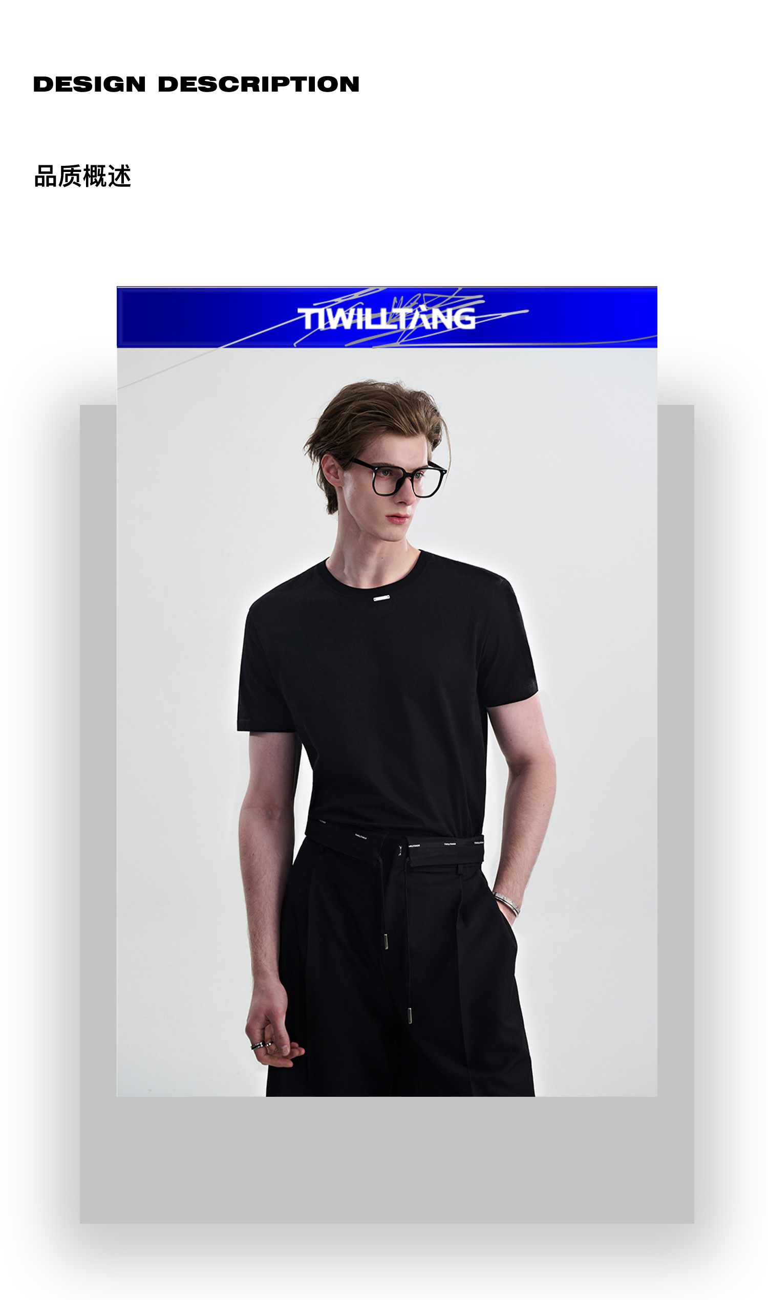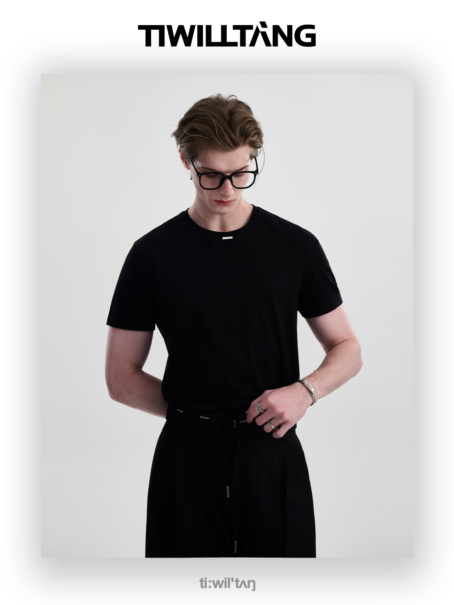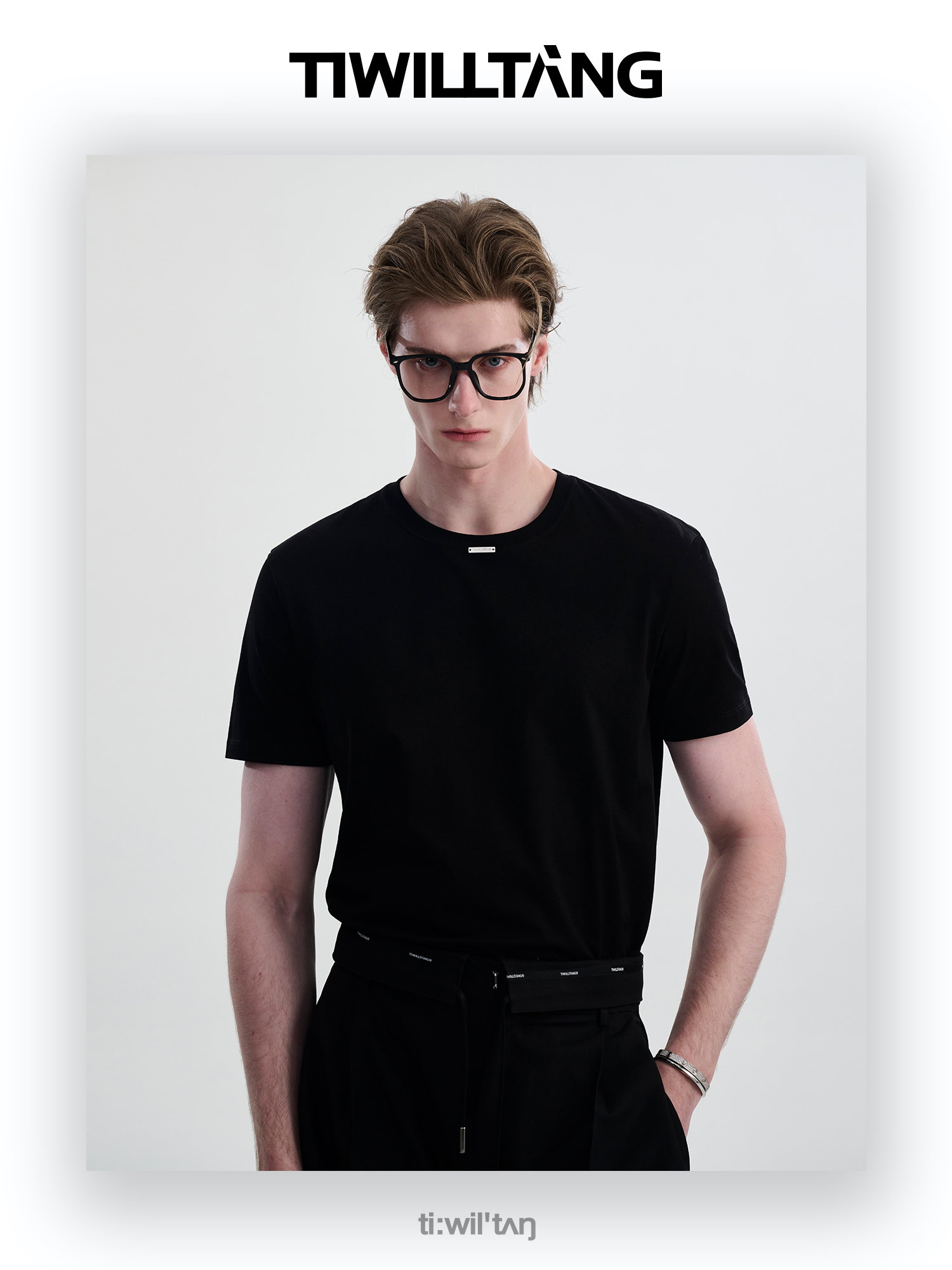 TIWILLTANG启世录“玄寂屿寰”蓝血新贵精奢细节控黑白纯棉T恤夏
