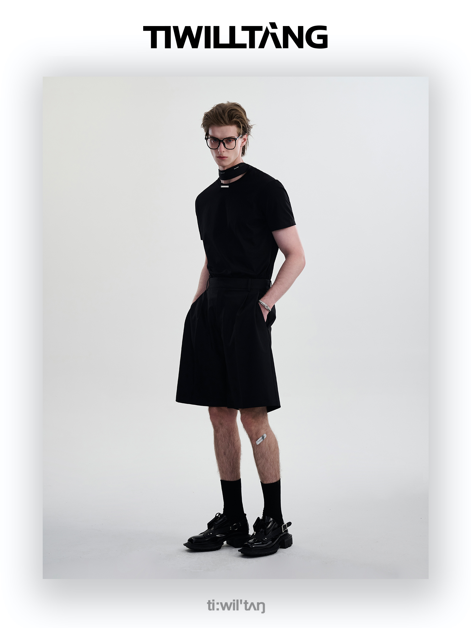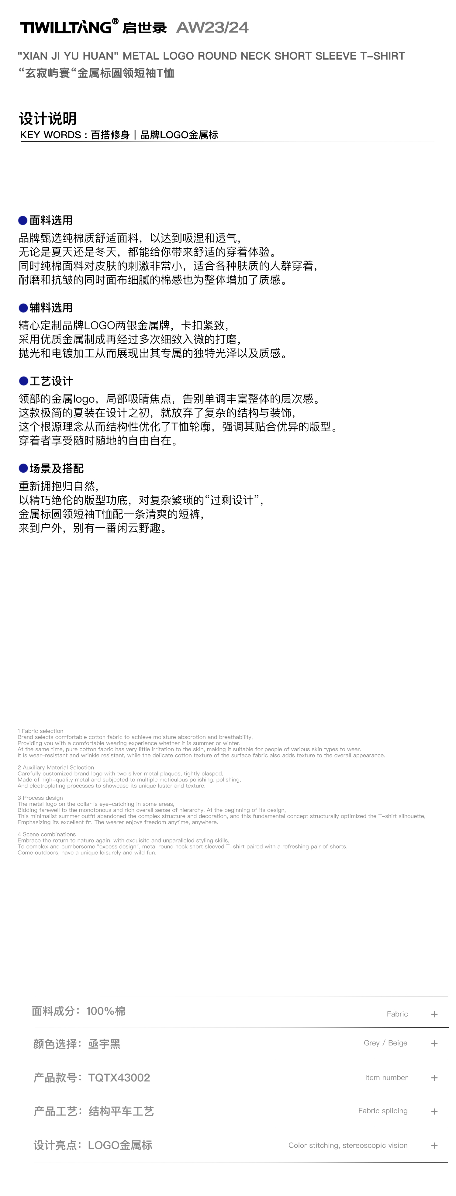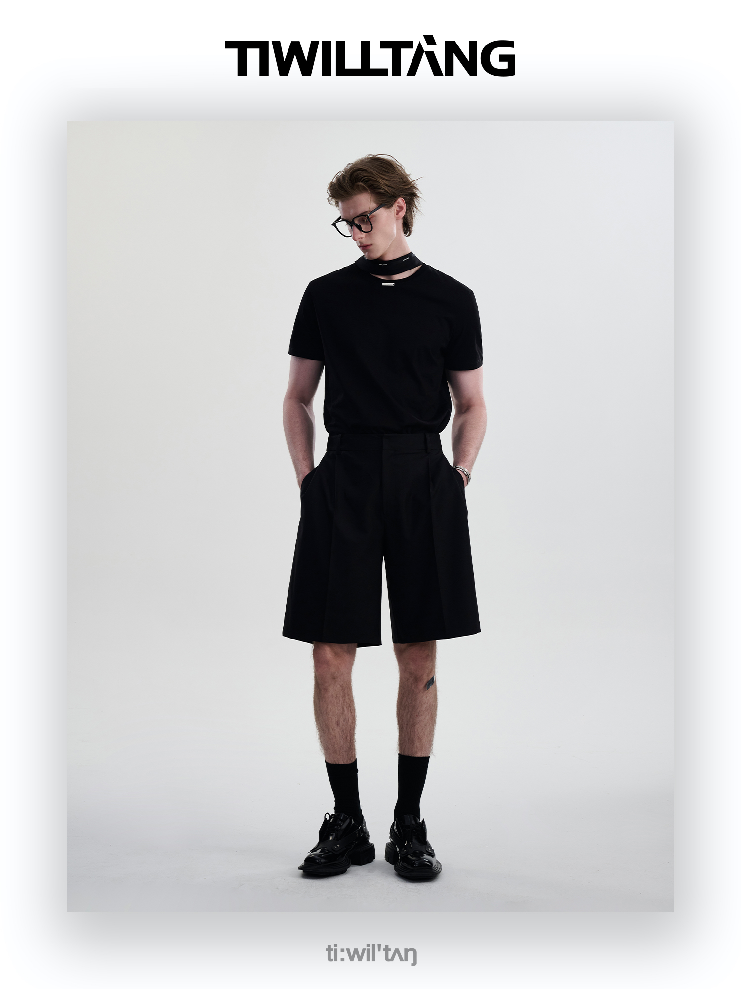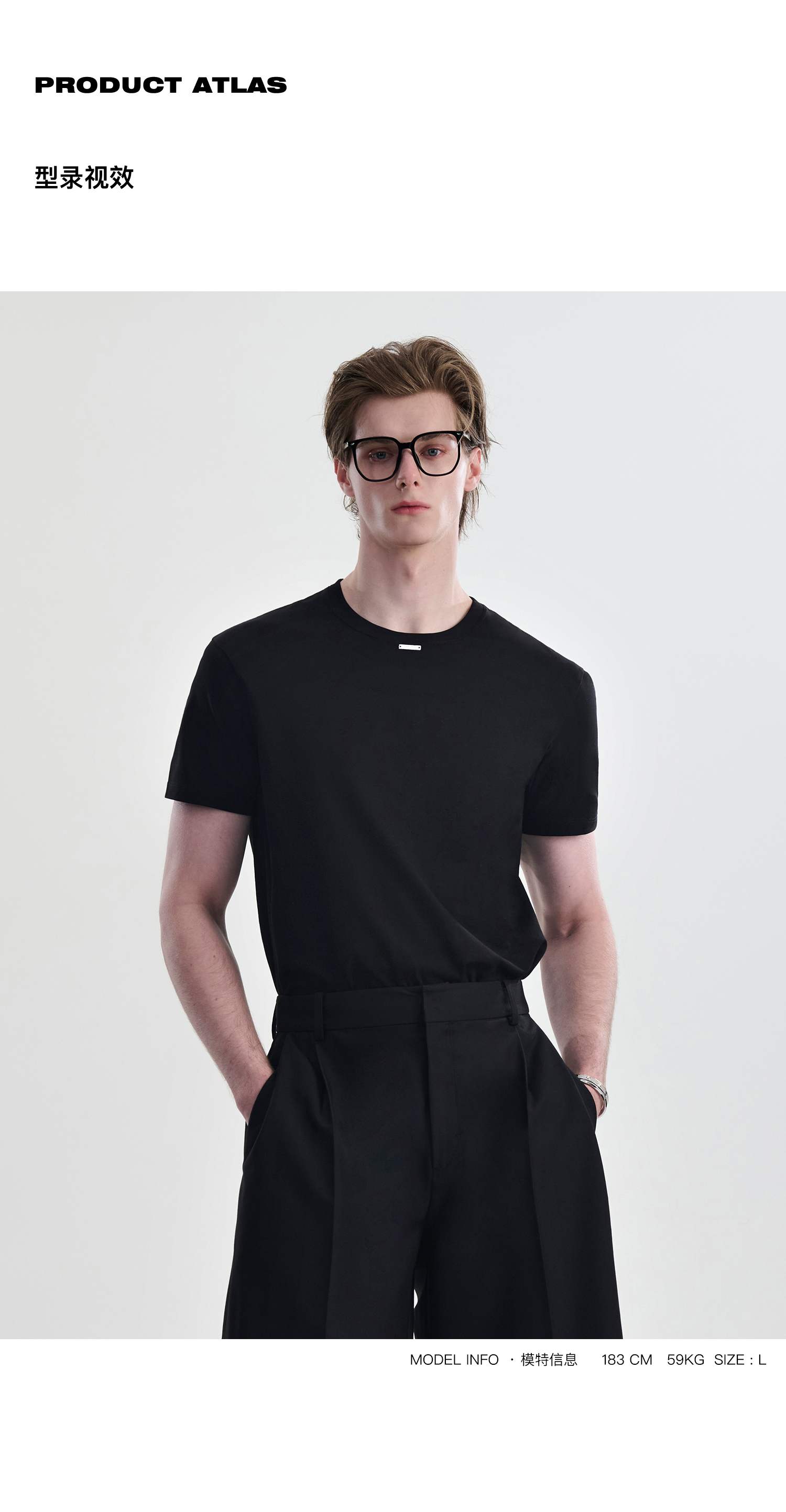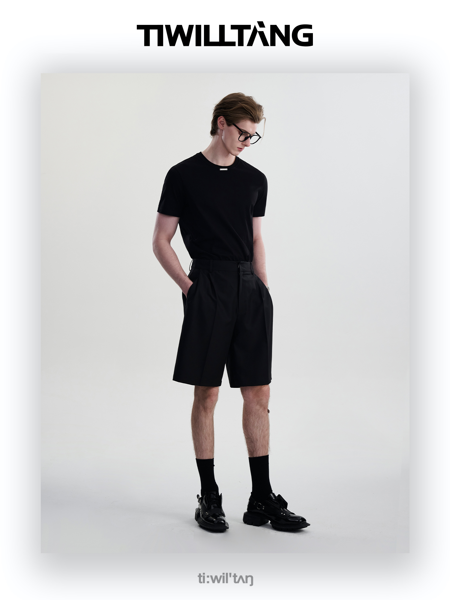 TIWILLTANG启世录“玄寂屿寰”蓝血新贵精奢细节控黑白纯棉T恤夏