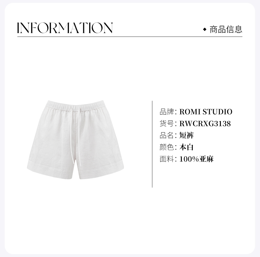 ROMI STUDIO“Clean fit”100%亚麻轻薄松紧腰休闲短裤 RWCRXG3138【发货时效25天】