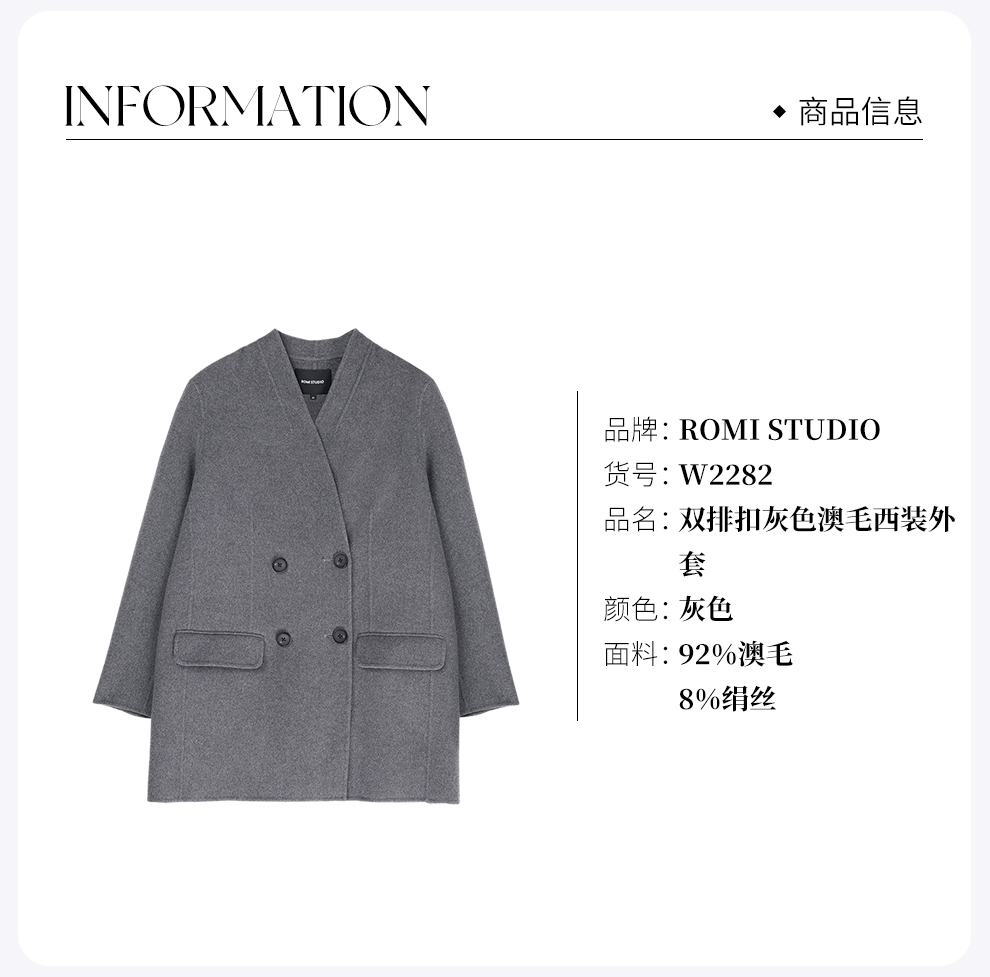 ROMI STUDIO“中古系列”超细澳毛桑蚕丝斜纹双排扣西装RWCWWT6586