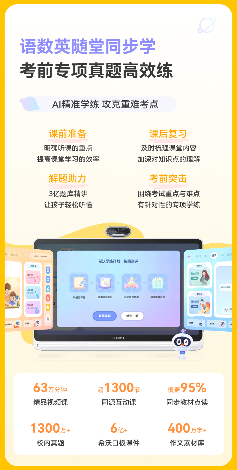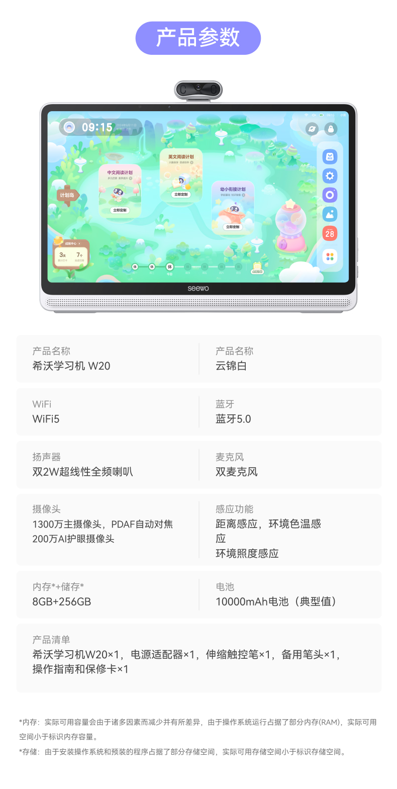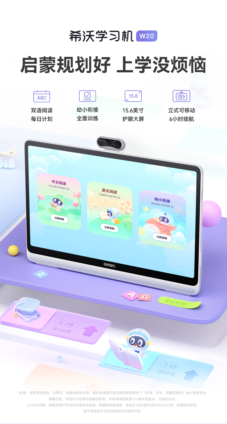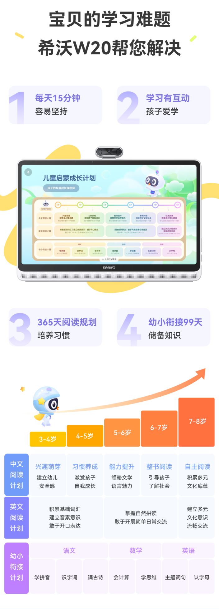 希沃学习机W20专为孩子打造的AI成长学伴 双语阅读,每日计划