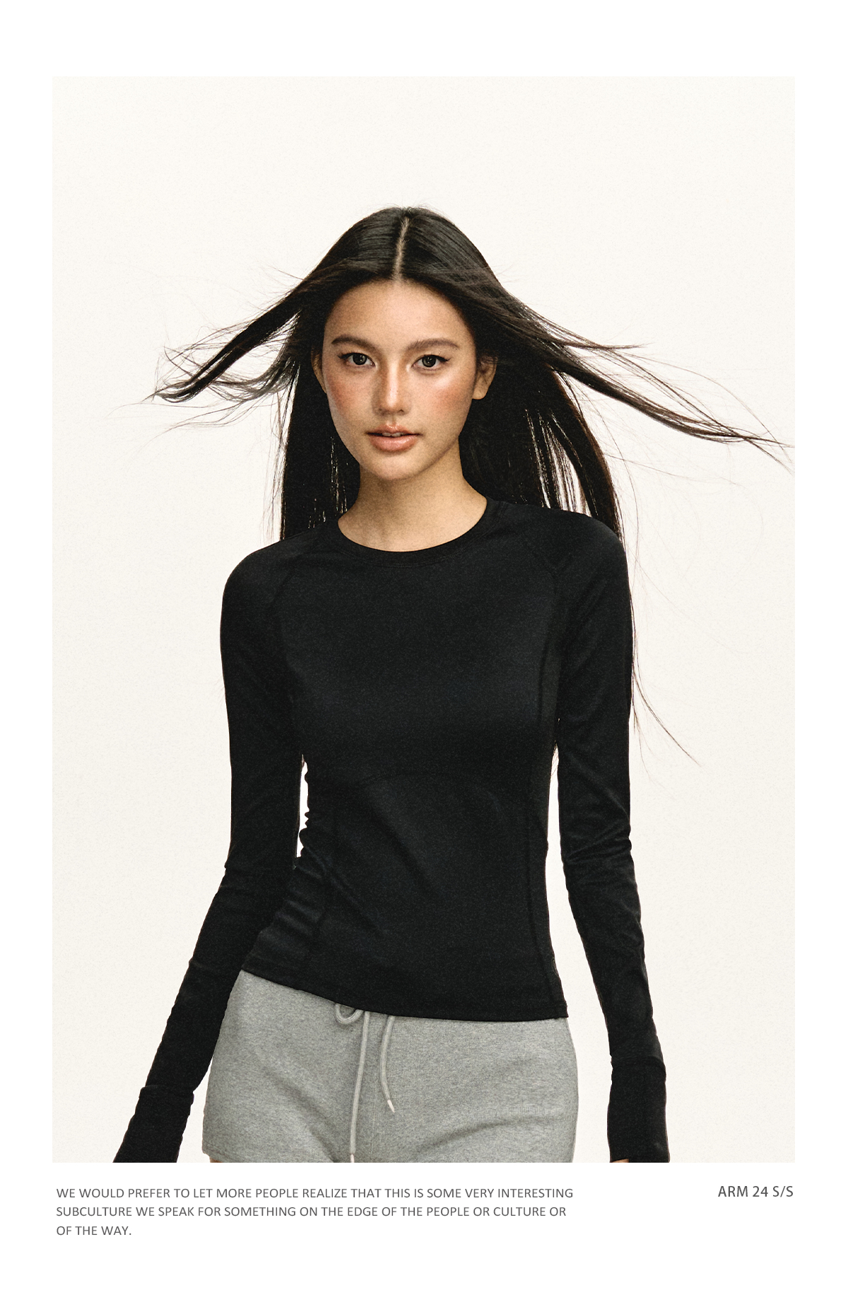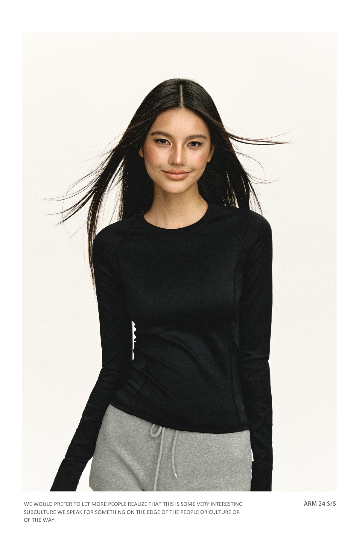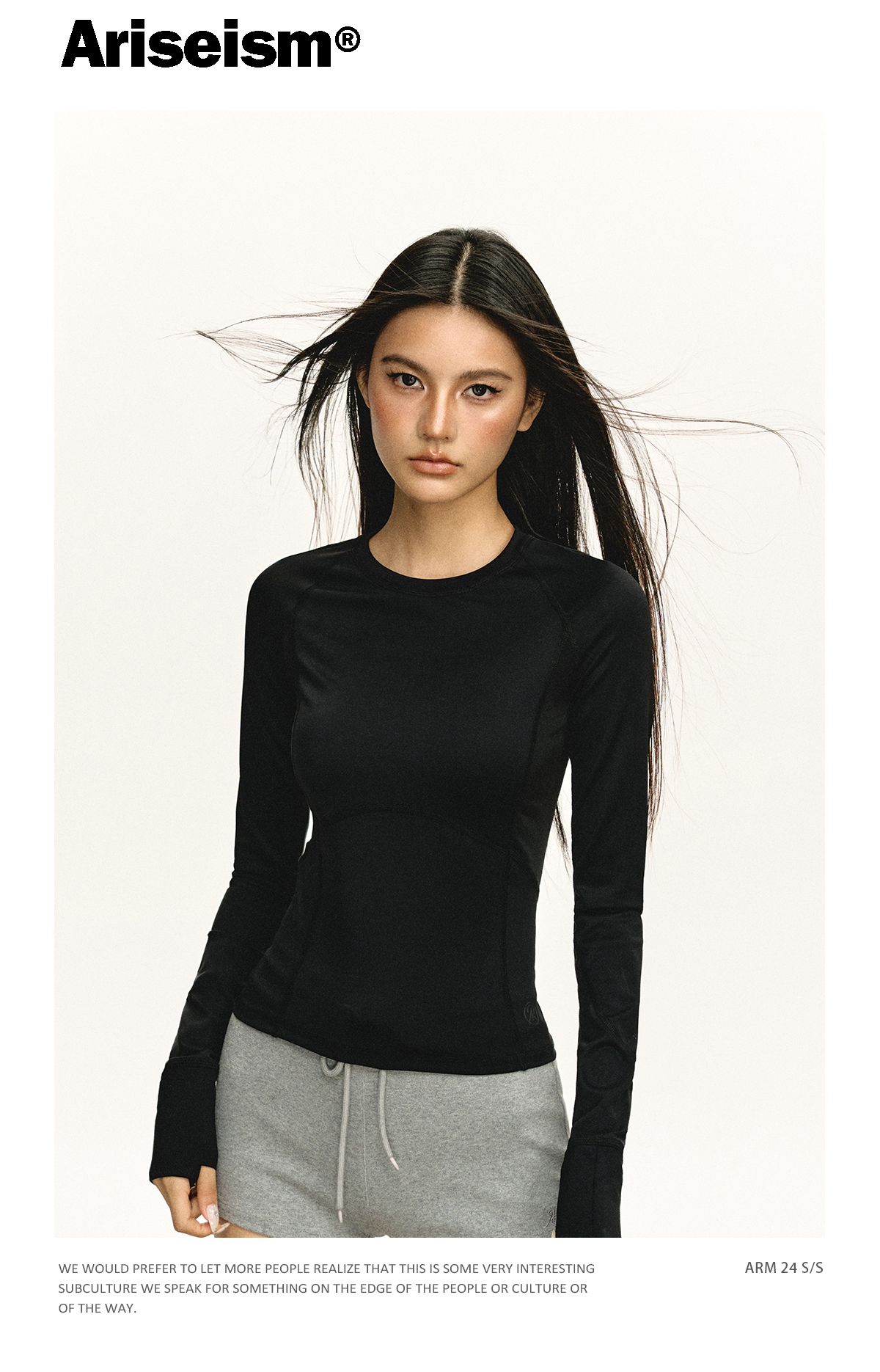 Ariseism 美式复古双色紧身长袖t恤打底上衣女春秋新款修身上衣