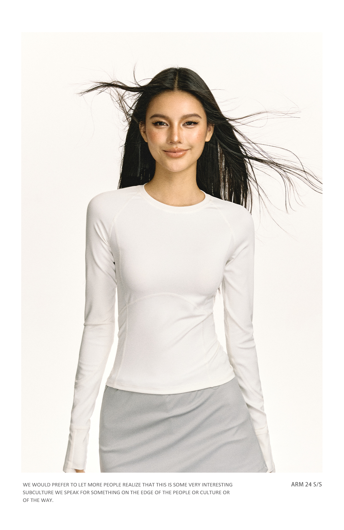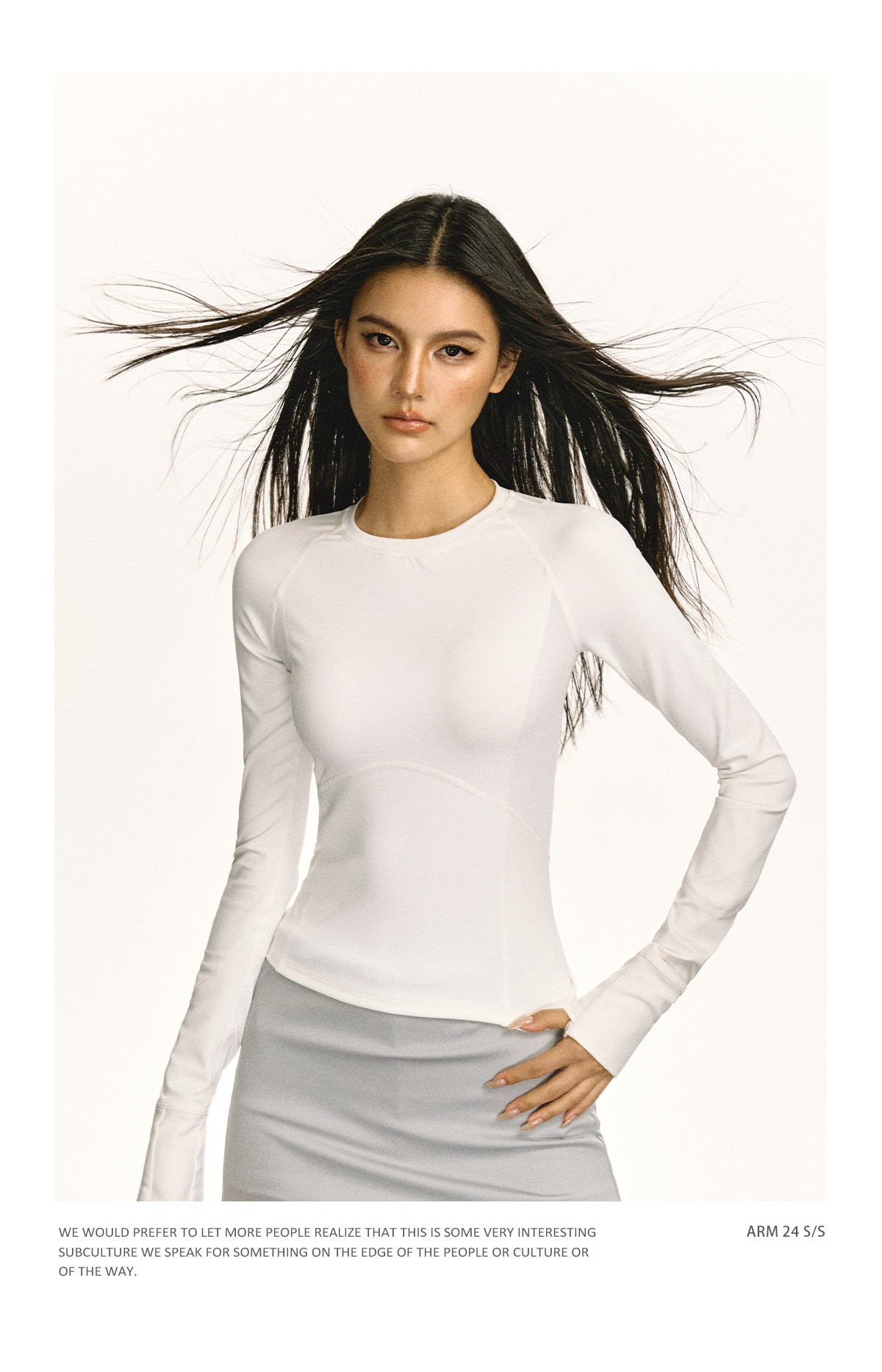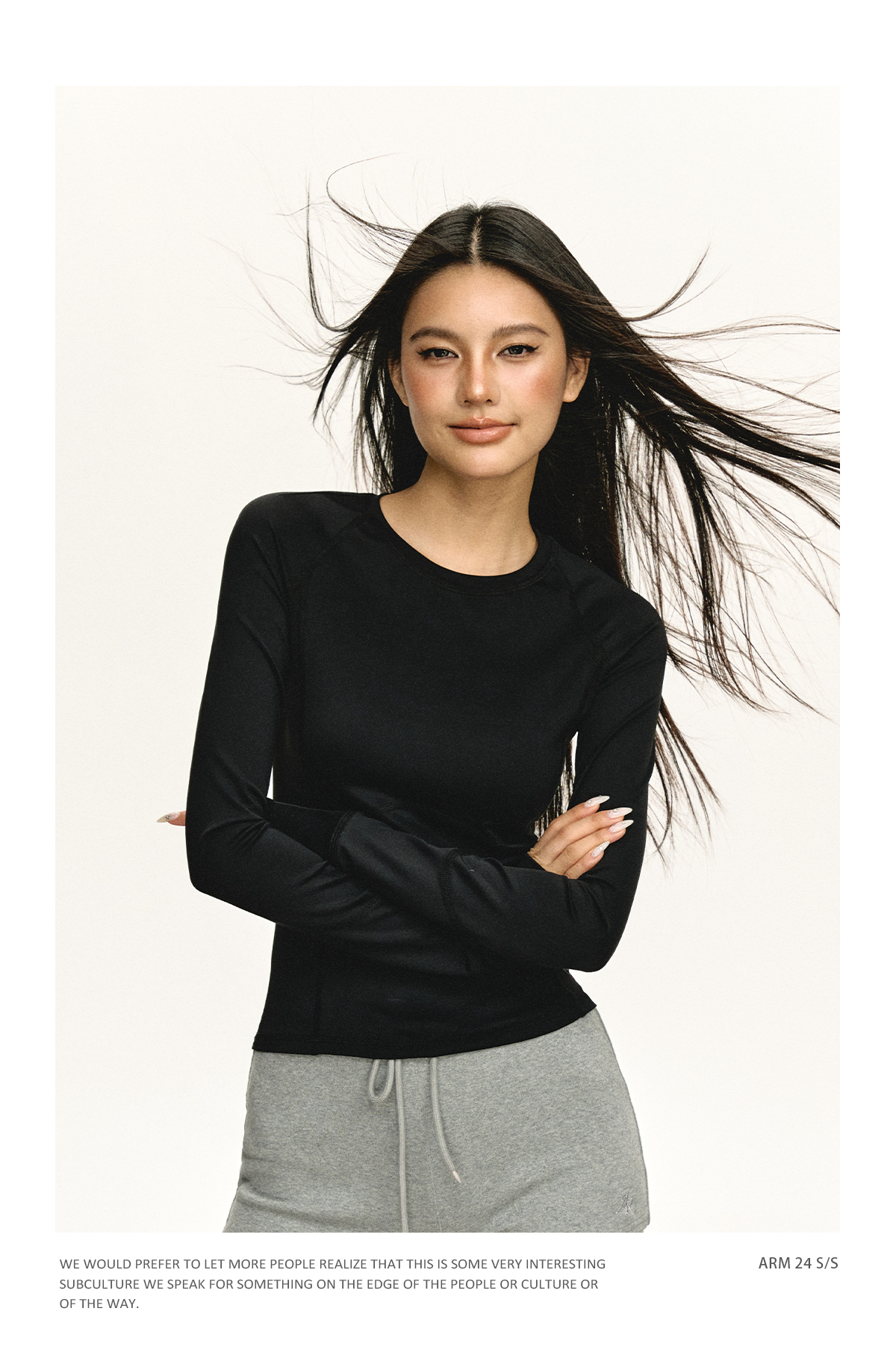 Ariseism 美式复古双色紧身长袖t恤打底上衣女春秋新款修身上衣