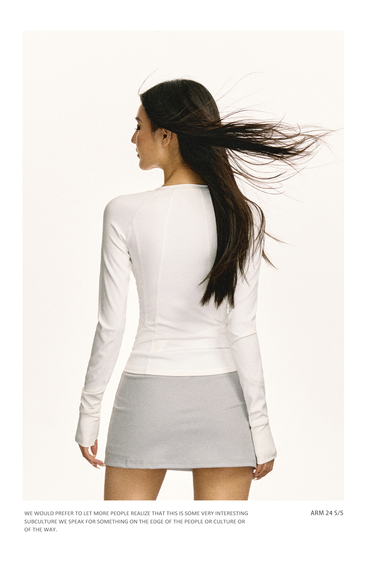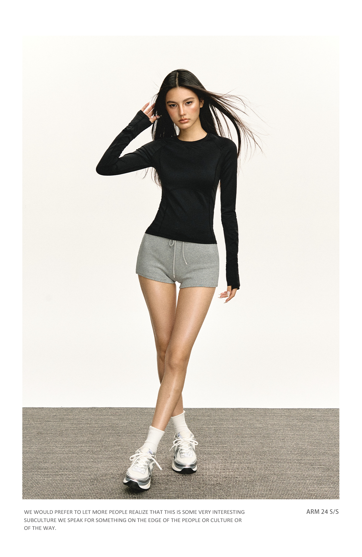 Ariseism 美式复古斜肩长袖上衣+短裤两件套早秋新款套装女
