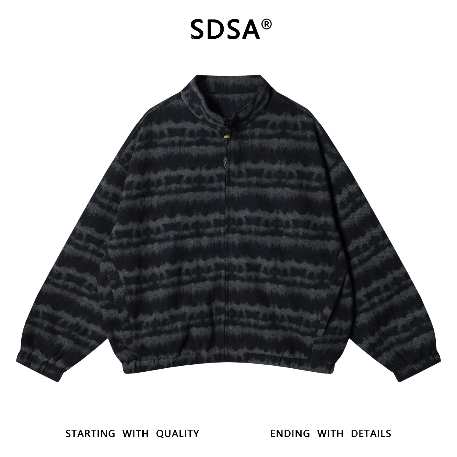 T6C37715SDSA男士秋冬新款痞帅男装宽松撞色肌理条纹拉链立领夹克百搭外套