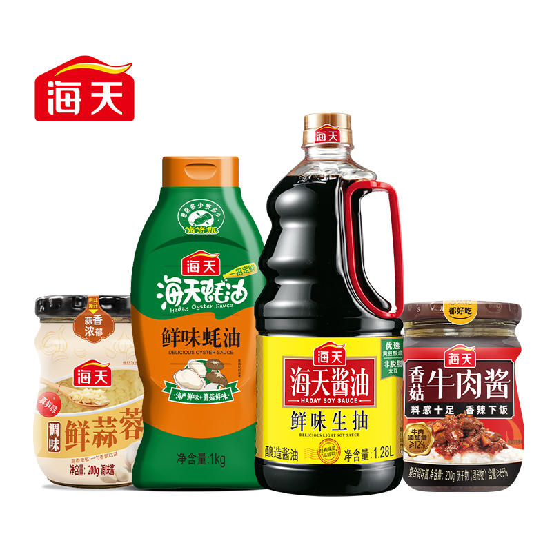 海天 鲜味生抽鲜味蚝油 三瓶组合 香菇牛肉酱调味鲜蒜蓉调味