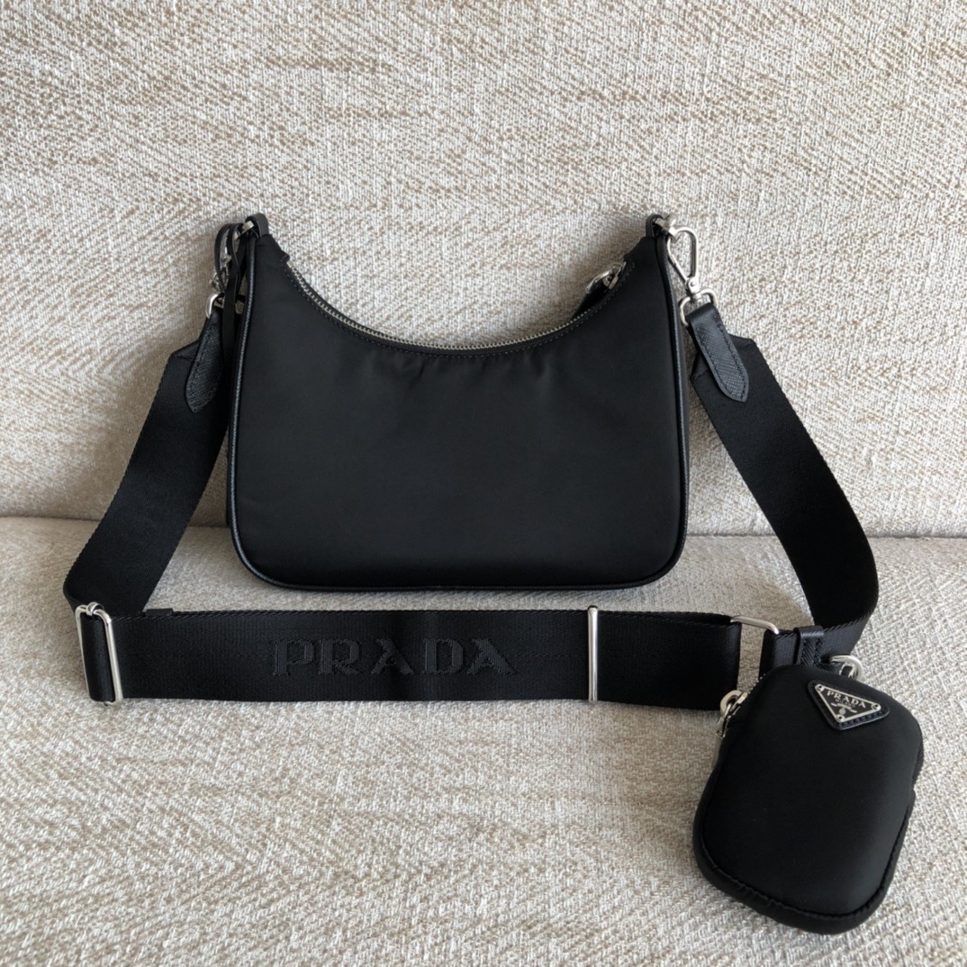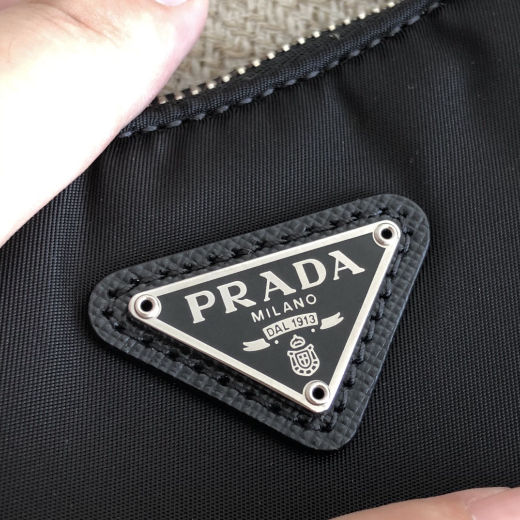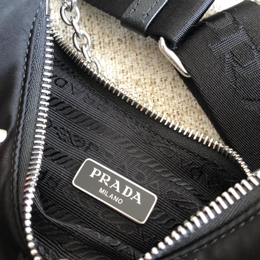 普家 Re-Edition 2005 搪瓷三角徽标可拆卸链条复刻 *尼龙拼皮 月牙腋下包手提单肩包 女款 黑色 *三合一