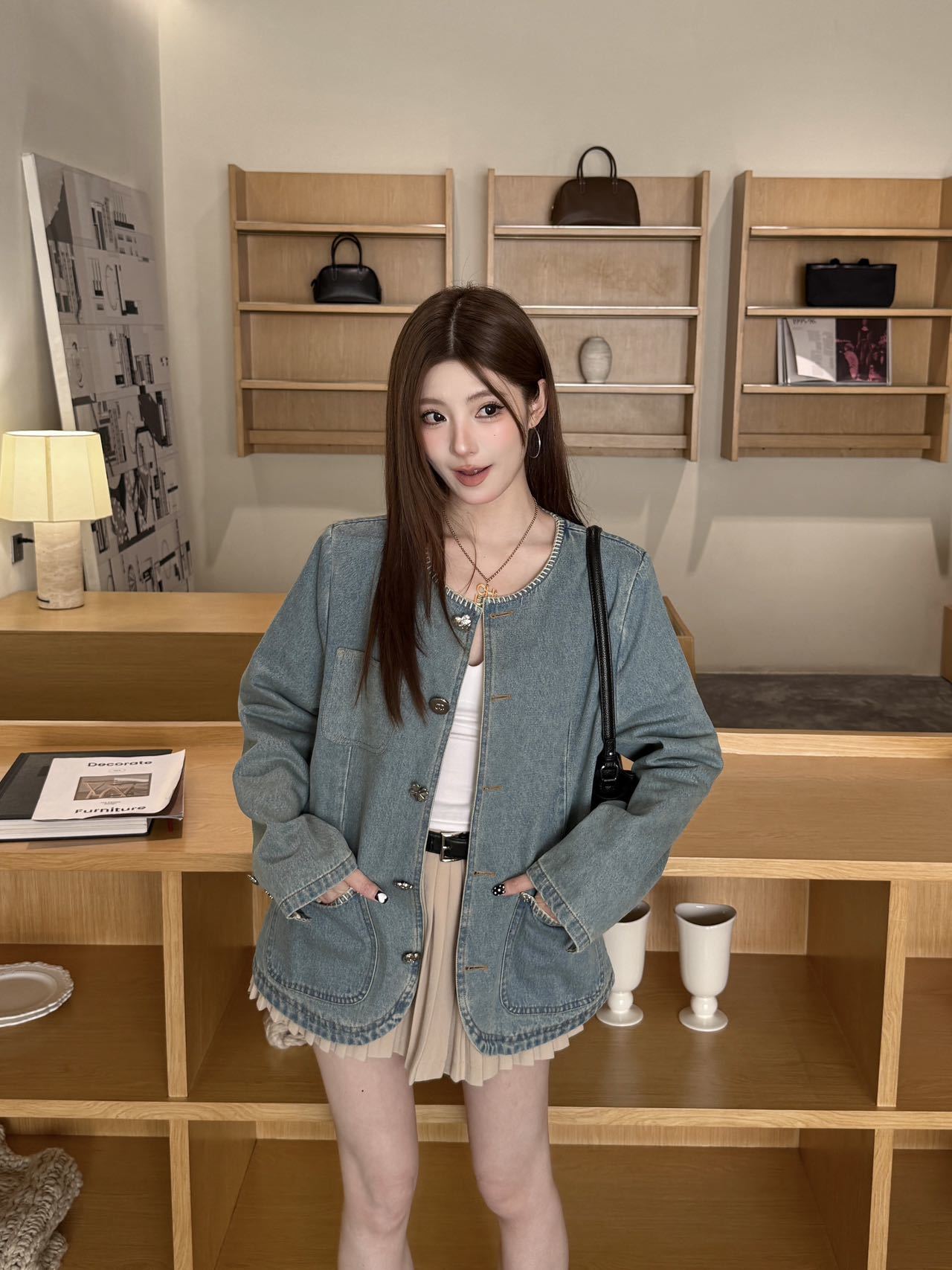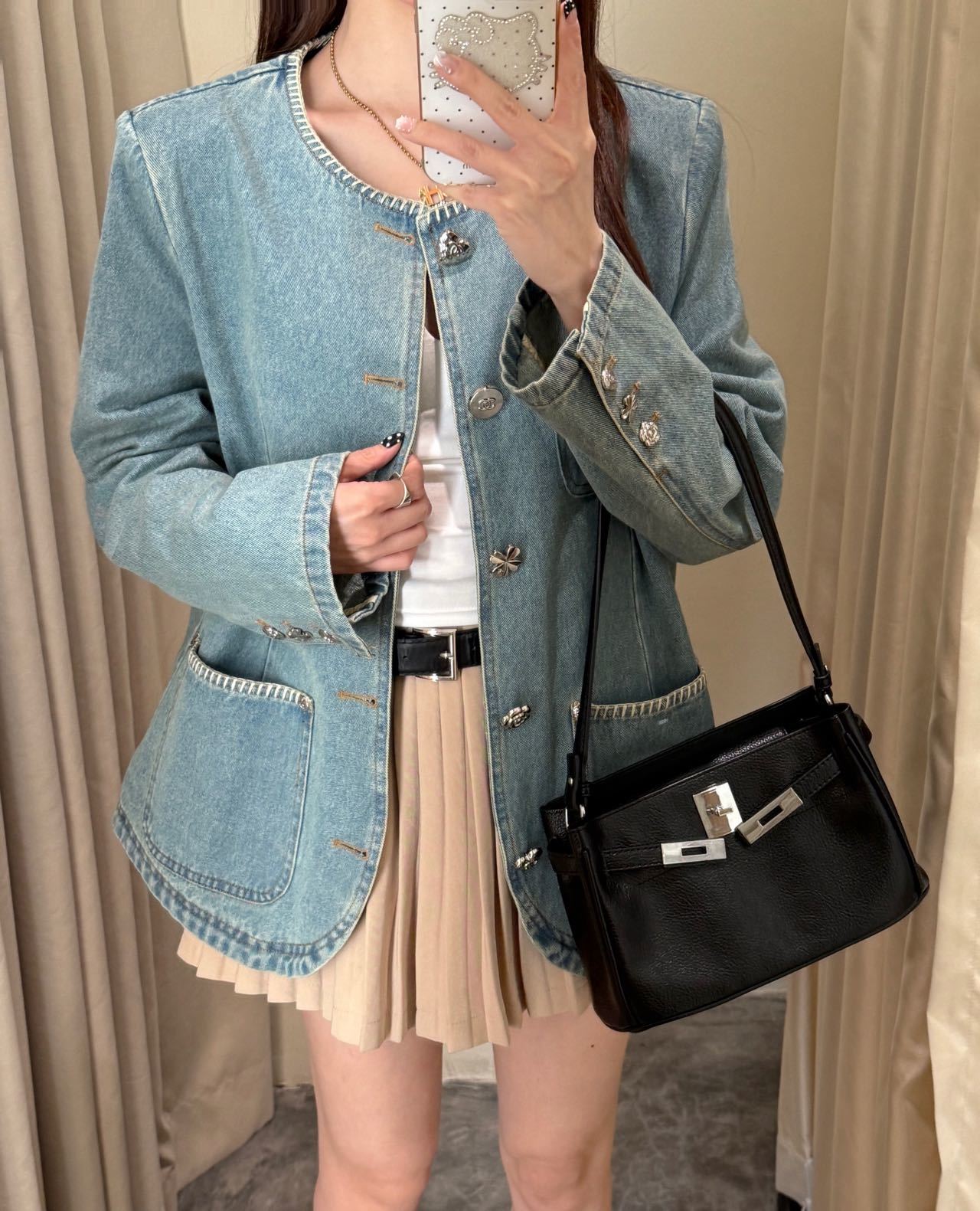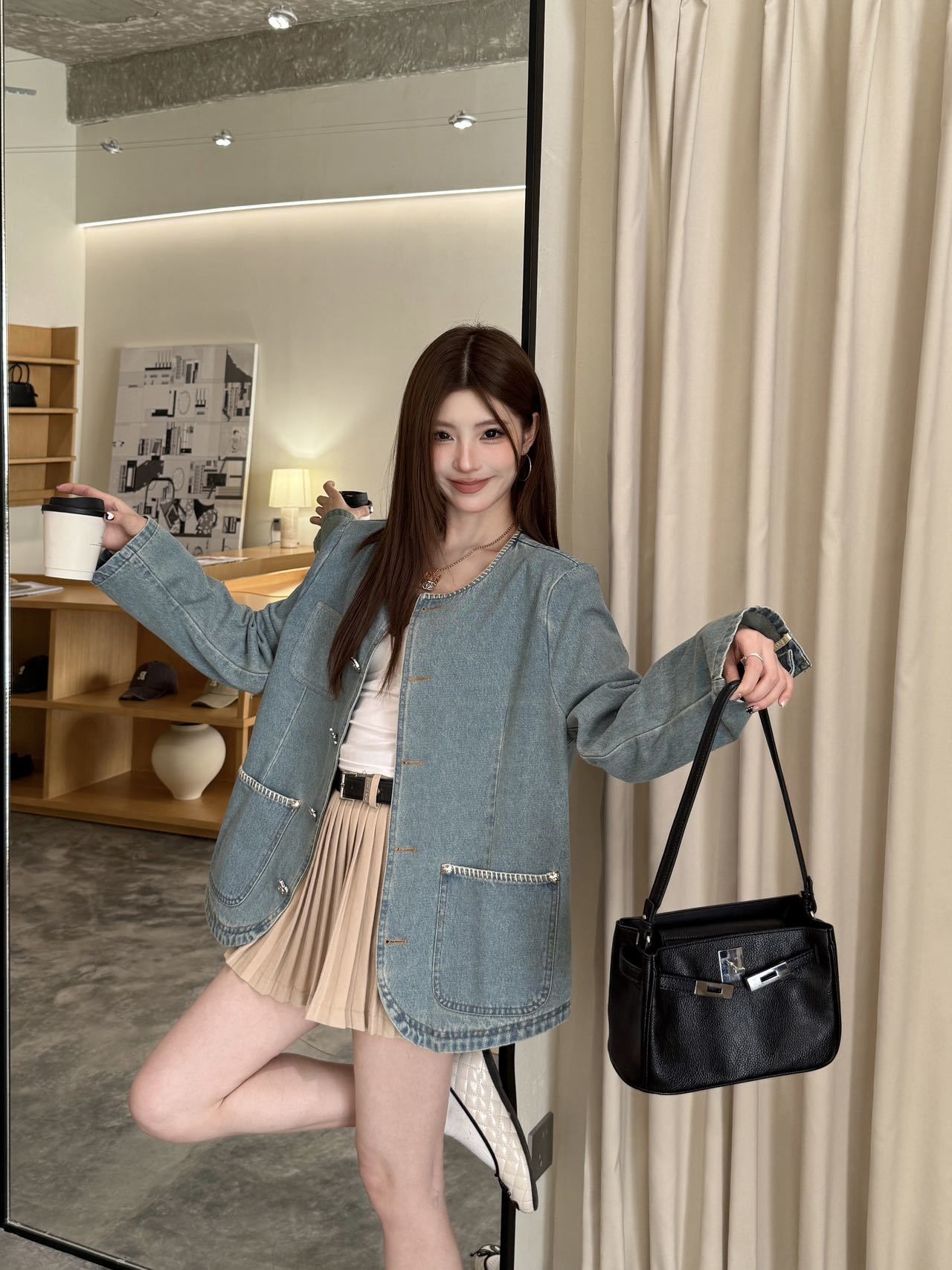 2026SS新款 高版出品~超时髦新款丹宁牛仔 酵洗个性色调上身又酷又飒爽 采用定制高品质斜纹棉质水洗牛仔面料,纹理细腻,棉感自然,既有筋骨感又不失柔软,酵洗色不挑人的经典色,超级漂亮!细节做工超级好,新品现货开箱开抢 SML【S肩宽42 胸围112 后中长68 袖长62】