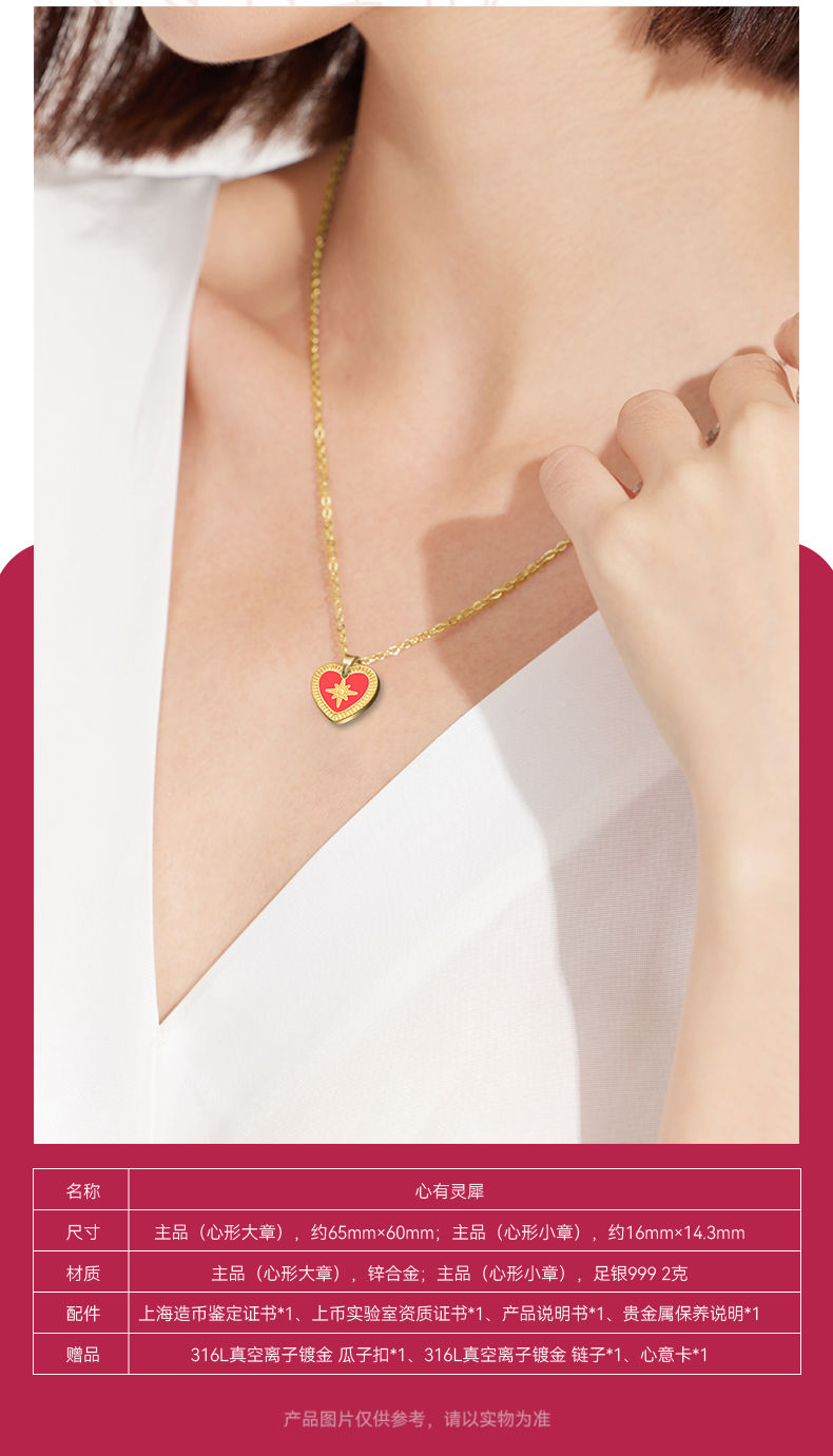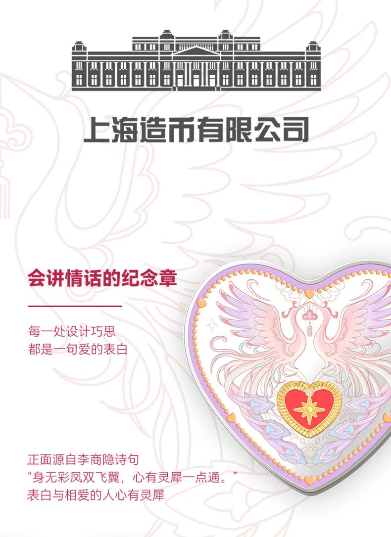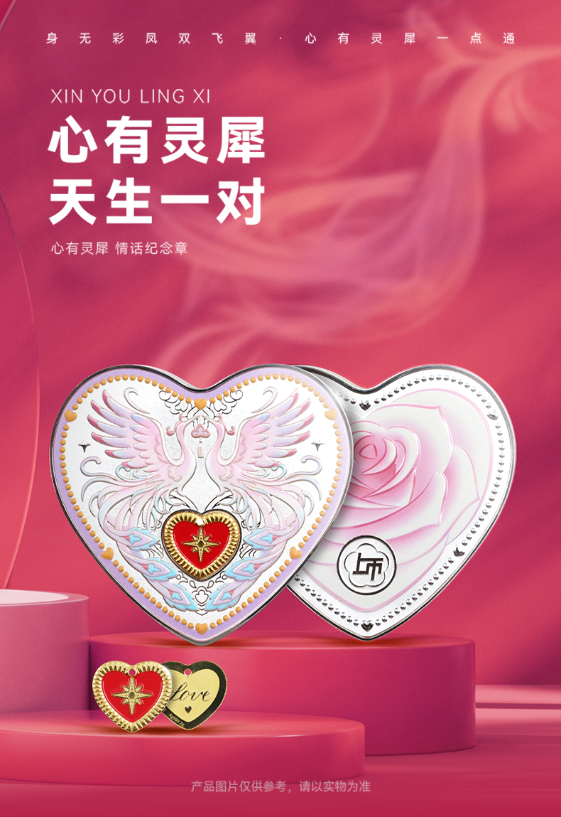 【情人节现货】心有灵犀·上海造币心形双金属纪念章 含纯银2克