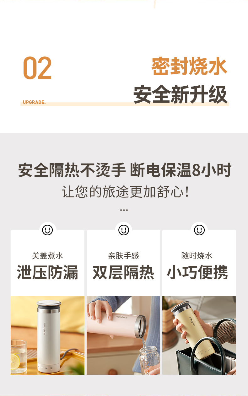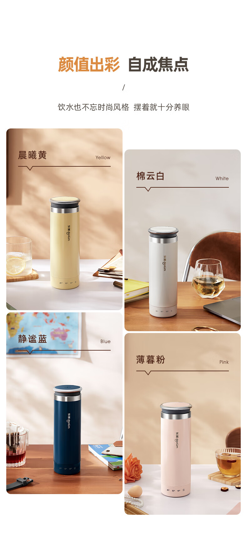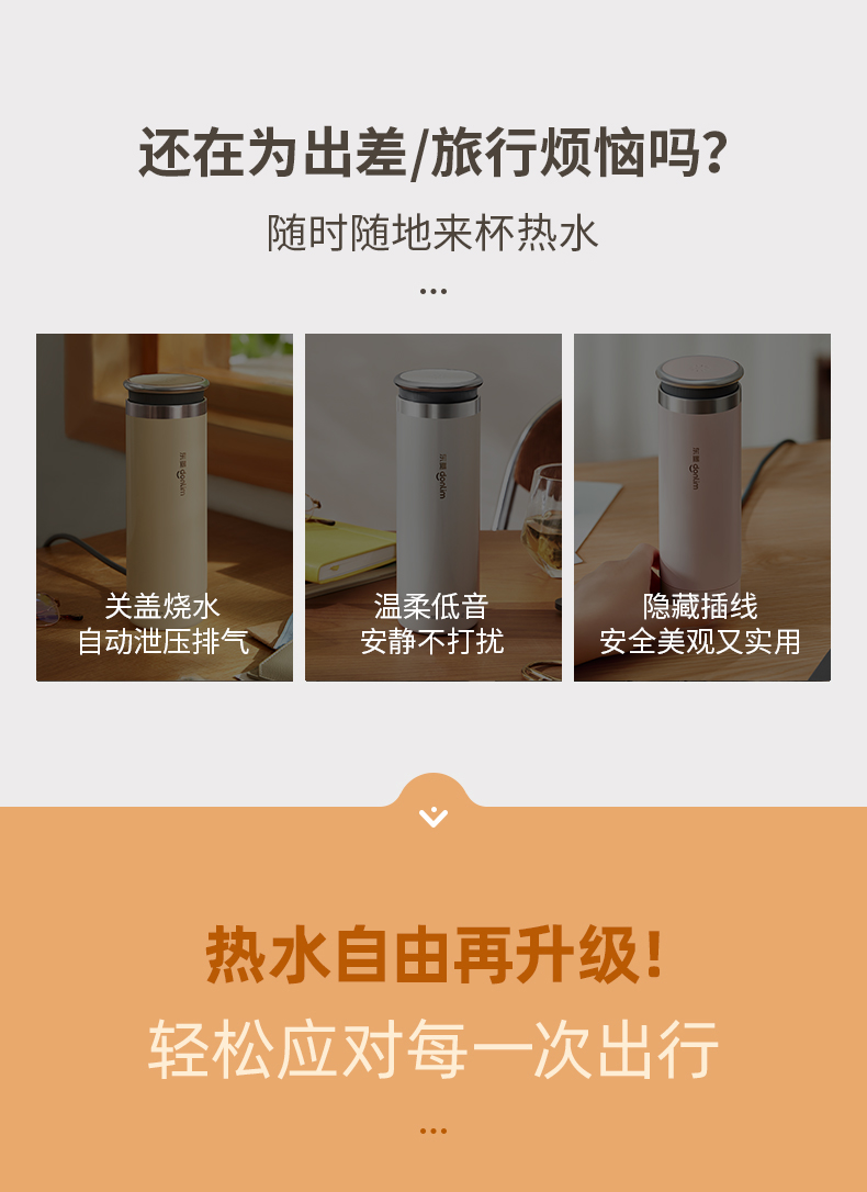 东菱(Donlim) 电热水杯 便携烧水壶 家用旅行保温杯高原适用烧水杯DL-4153 【晨曦黄】升级版丨芯片识别海拔