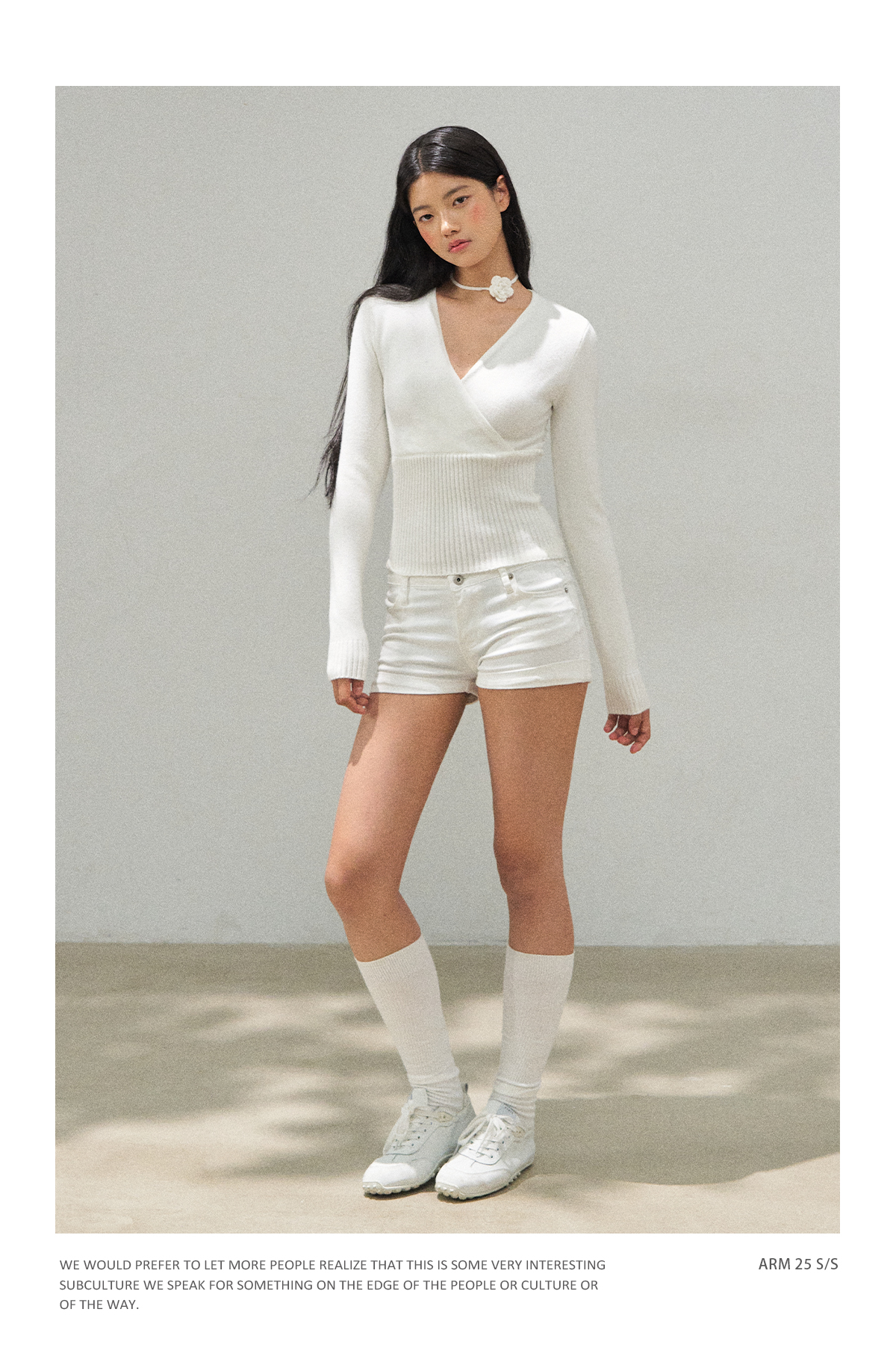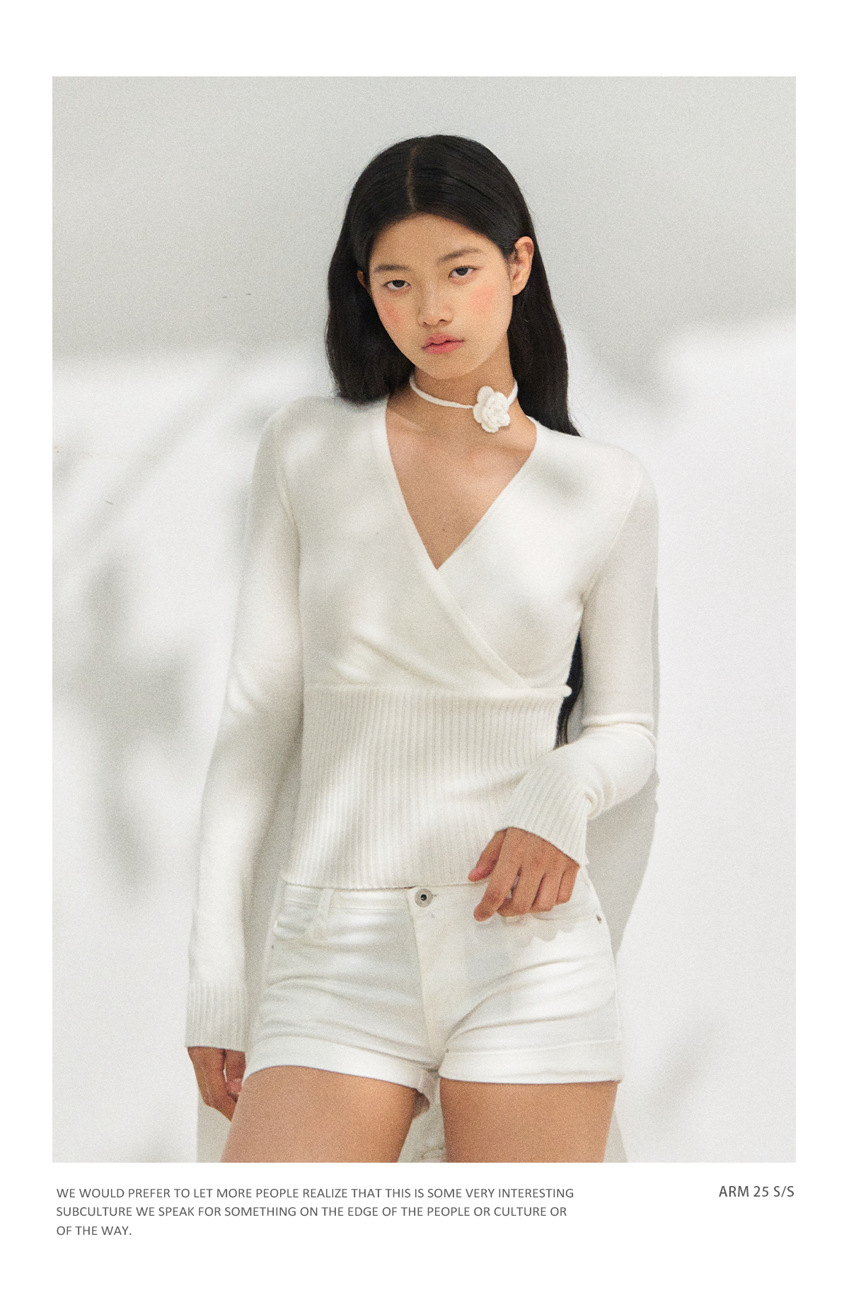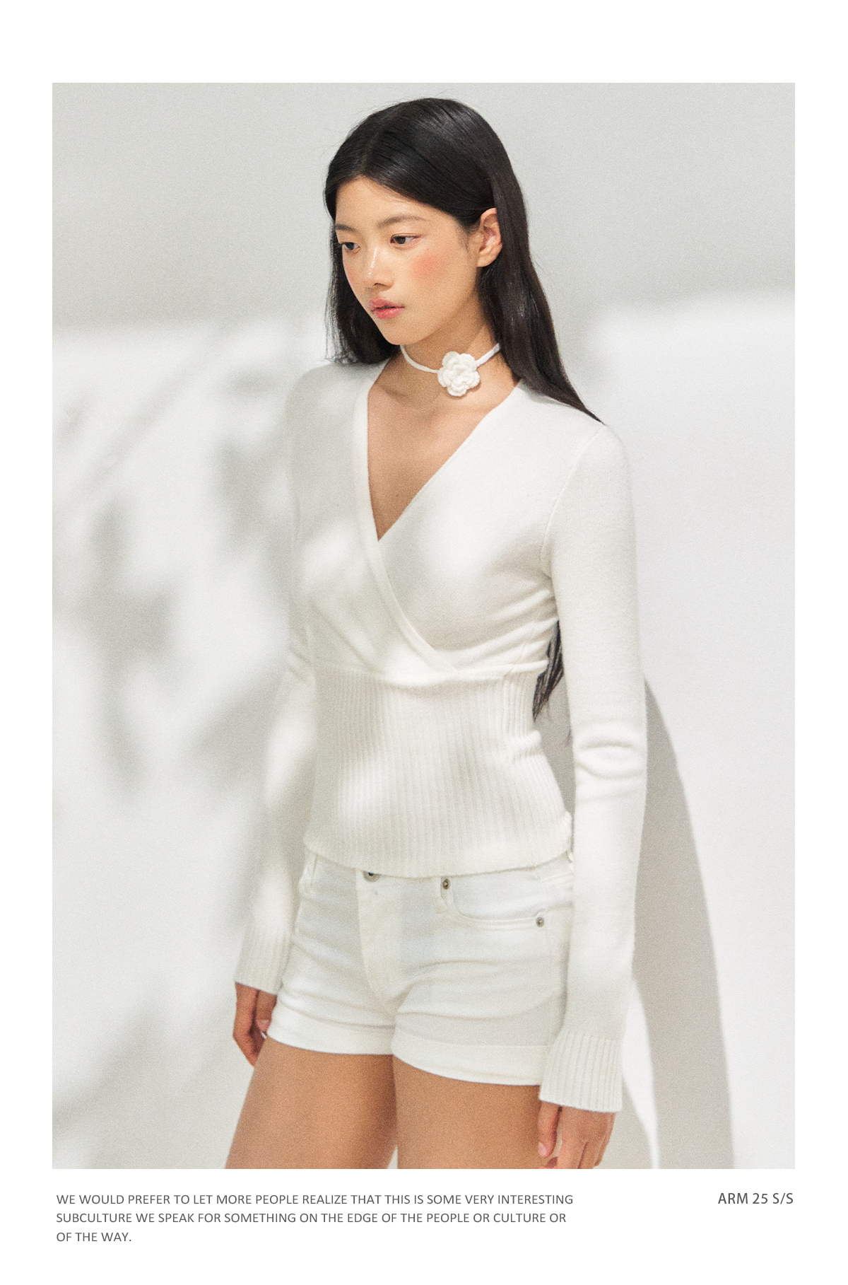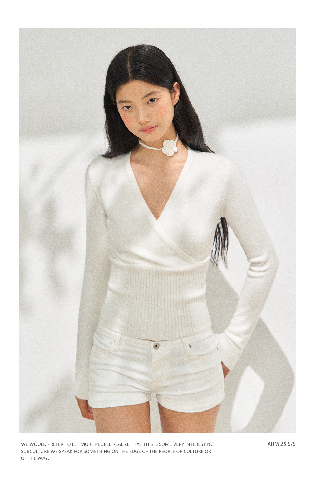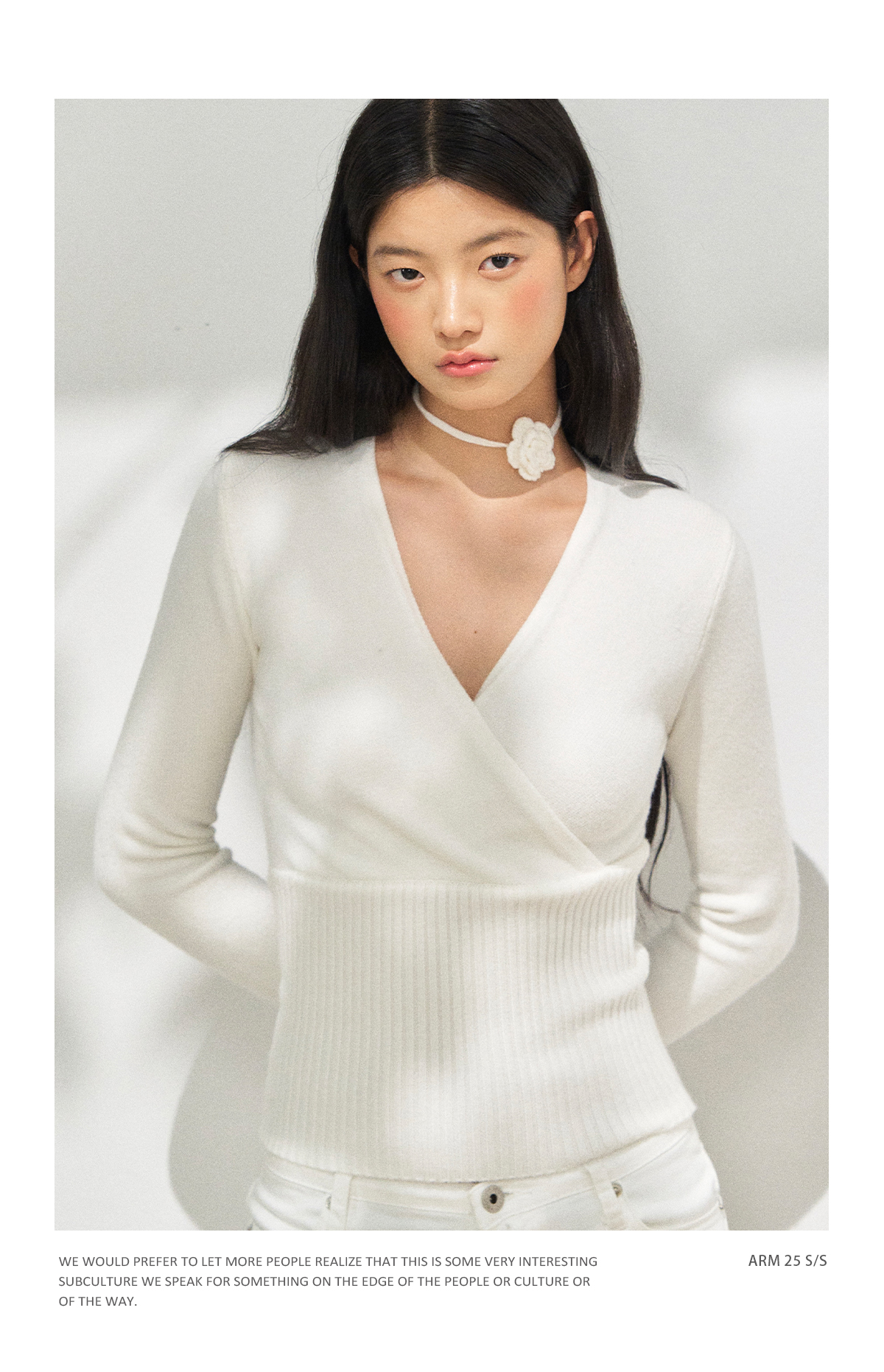 Ariseism 美式复古设计感白色长袖毛衣女秋季新款修身上衣