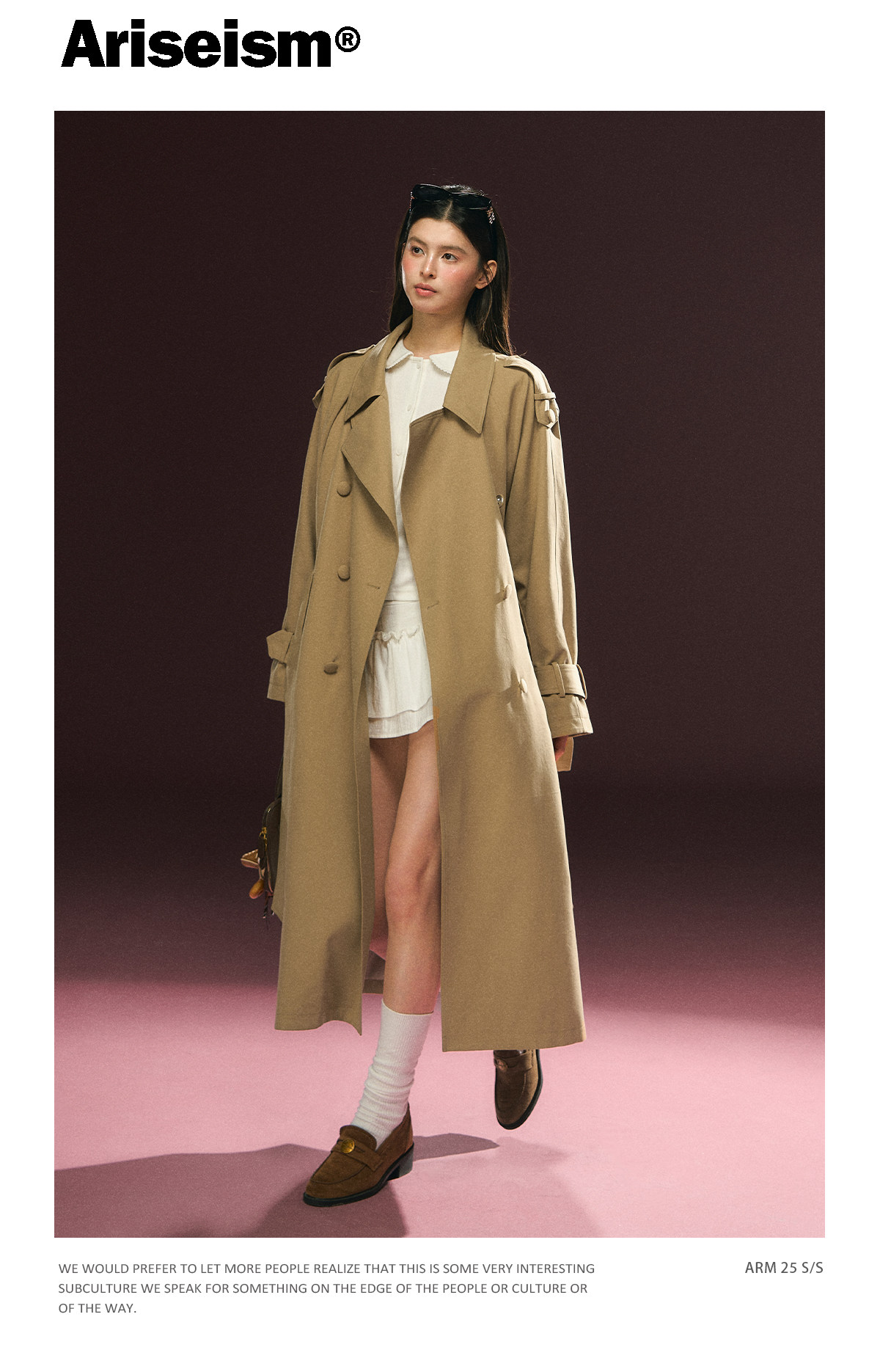Ariseism 美式复古高级感修身中长款风衣外套女冬季新款上衣