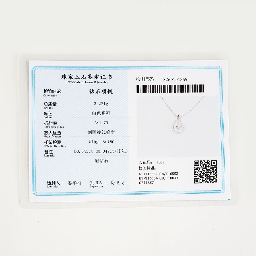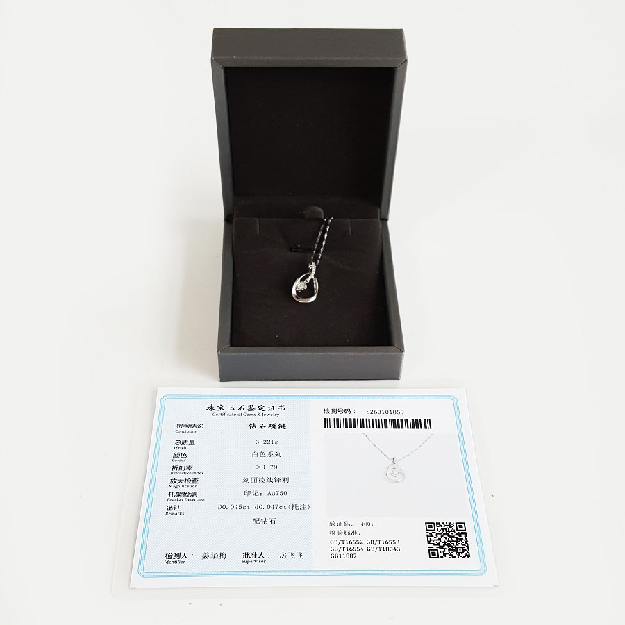 中国黄金AU750白金简约时尚0.045克拉钻石吊坠项链20.4*11.1*5.4MM(皆取最大值)链长:43CM(长度可调节)270126NJ20