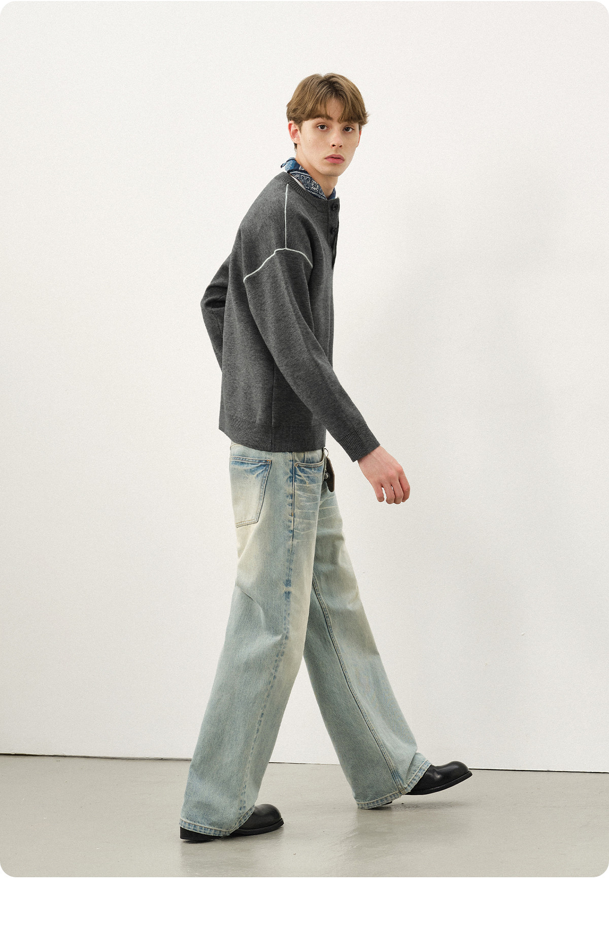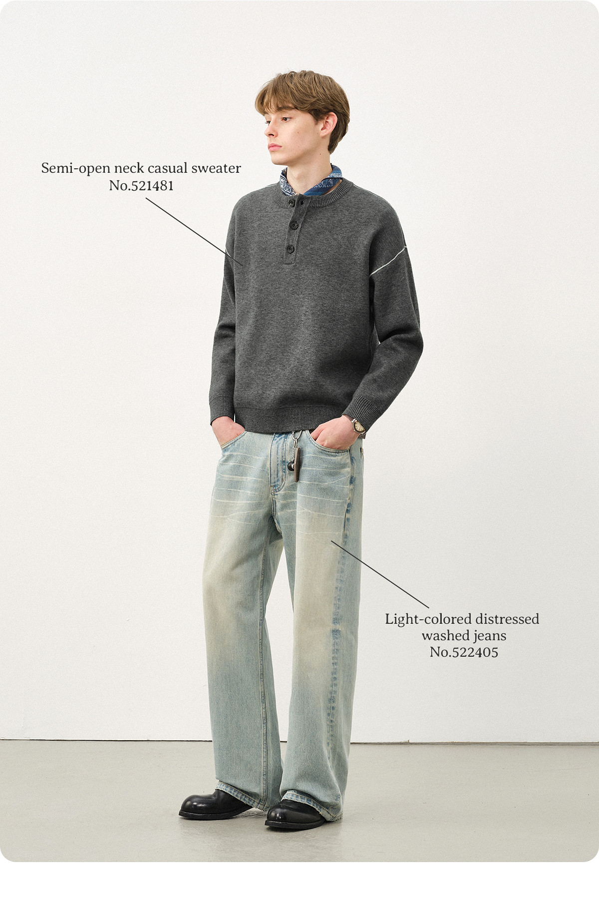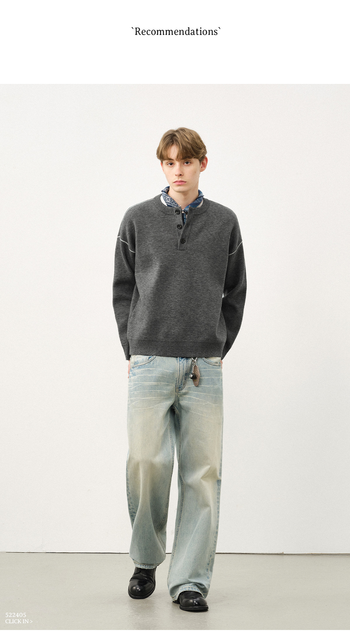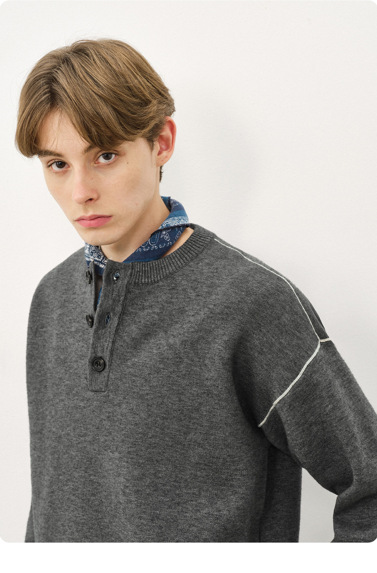 714street高密抗起球亨利领毛衣男2025秋冬季落肩宽松针织衫上衣