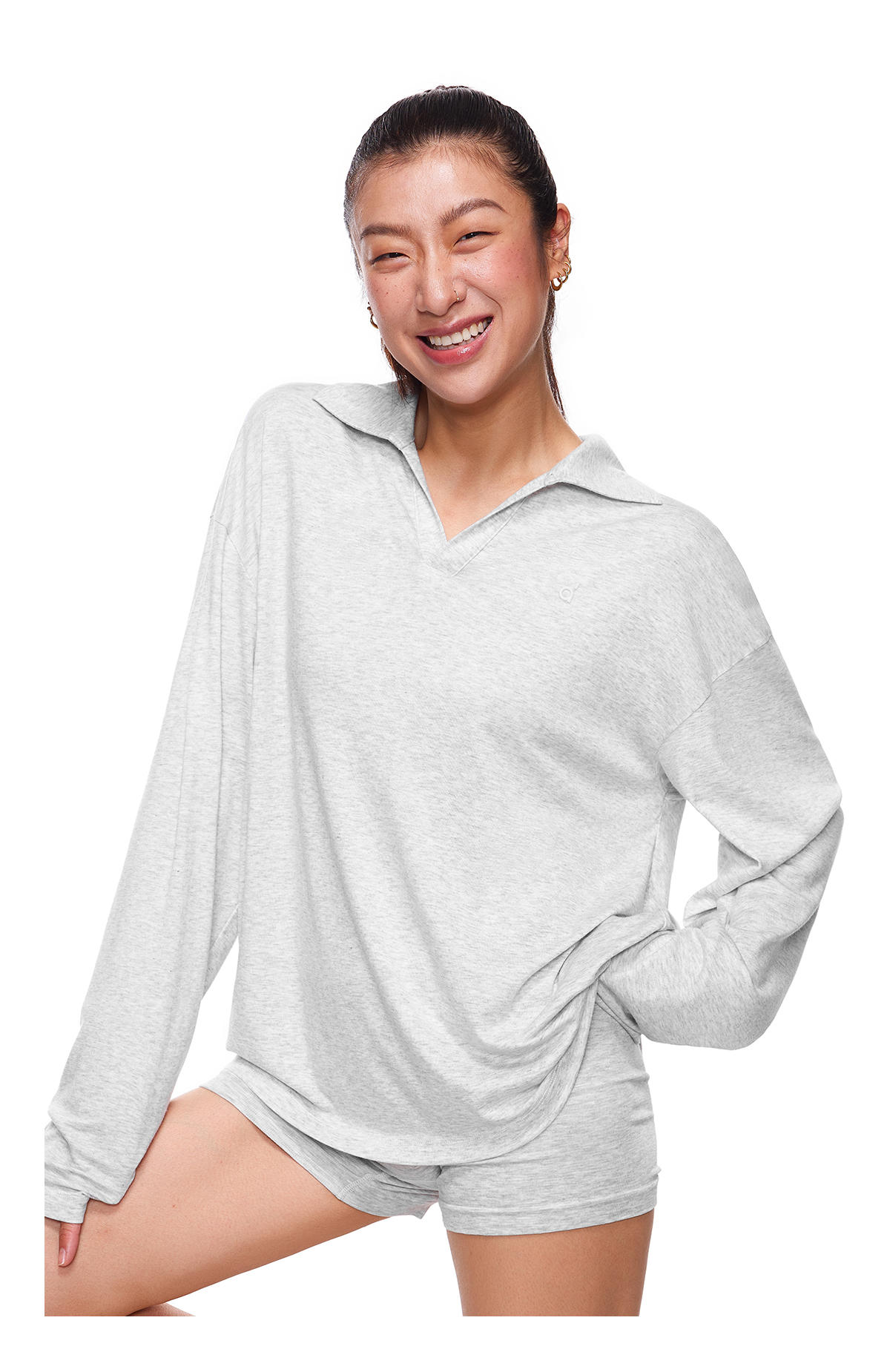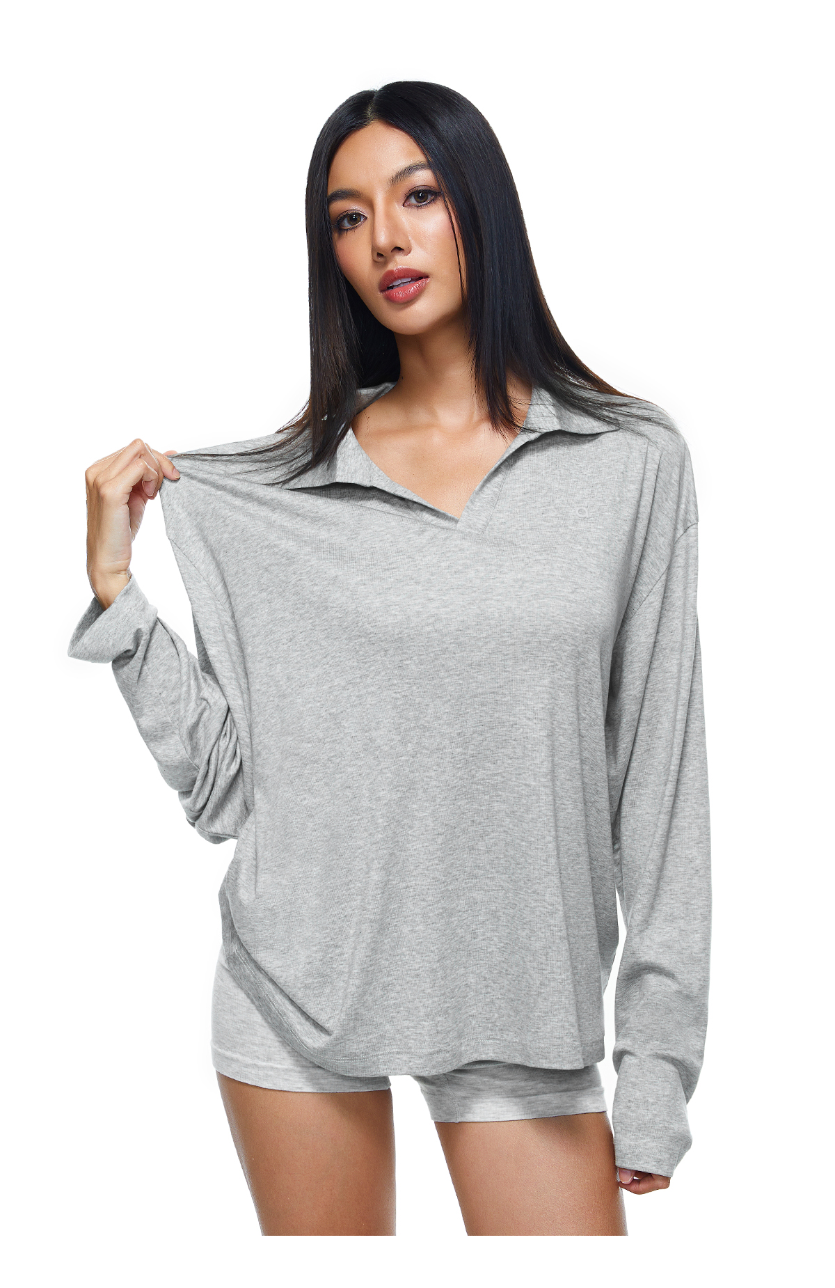 FDR旗舰店 莱赛尔V翻领polo长袖t恤男女秋季慵懒宽松显瘦运动上衣