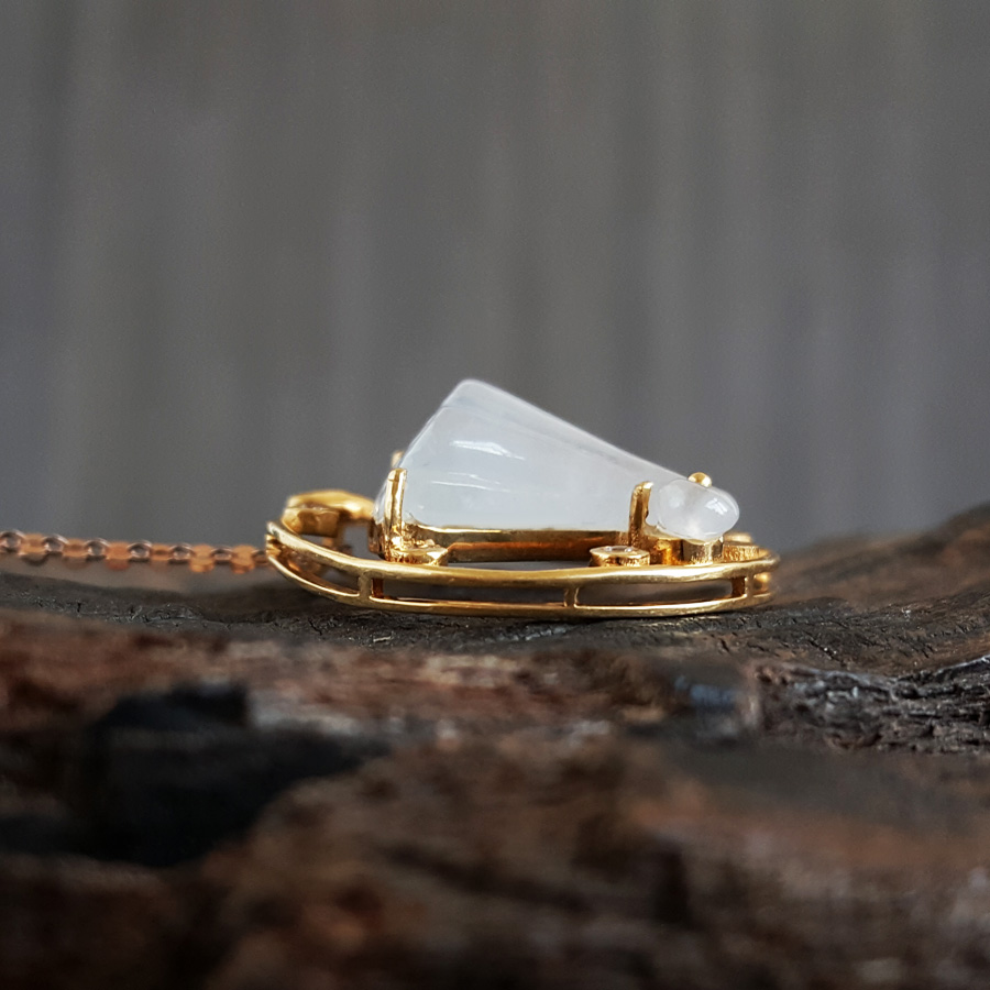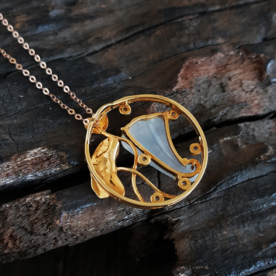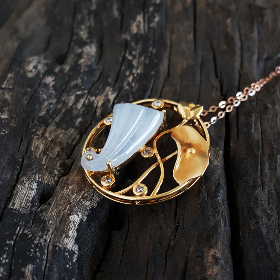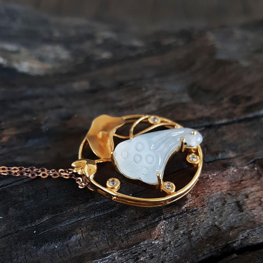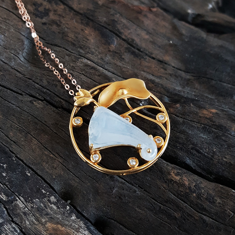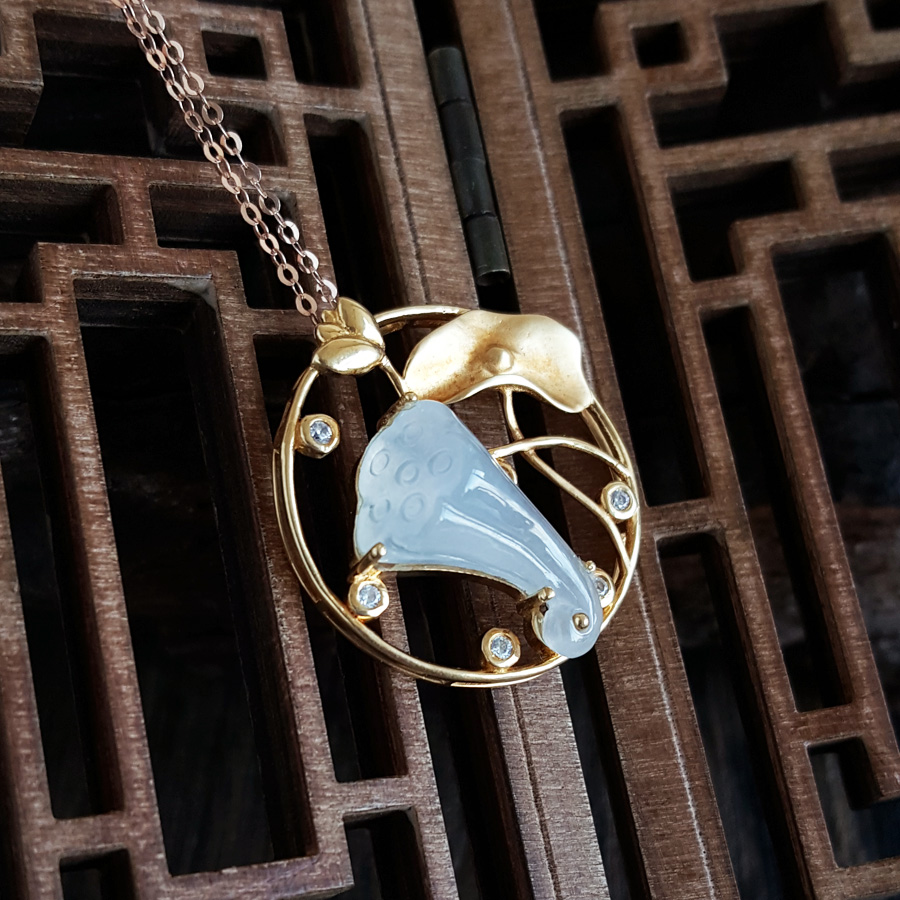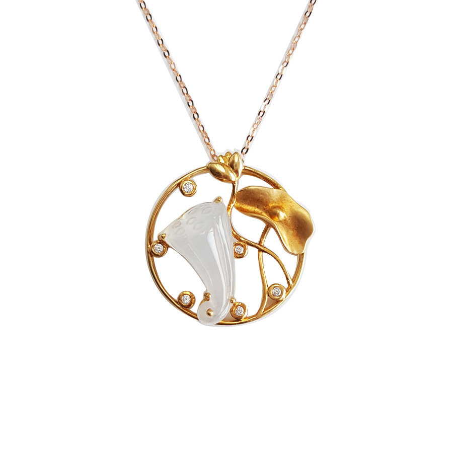 名称 | AU750黄金镶天然细腻冰种莲藕造型(八方来财)翡翠吊坠项链 |
