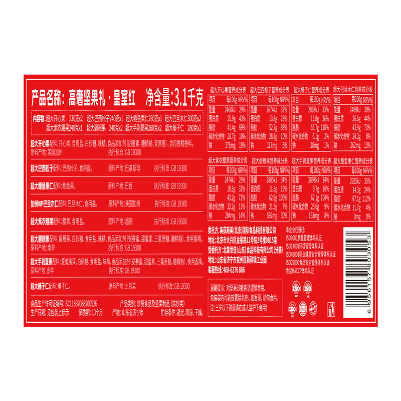 美荻斯环球大师皇室红坚果礼盒3100g