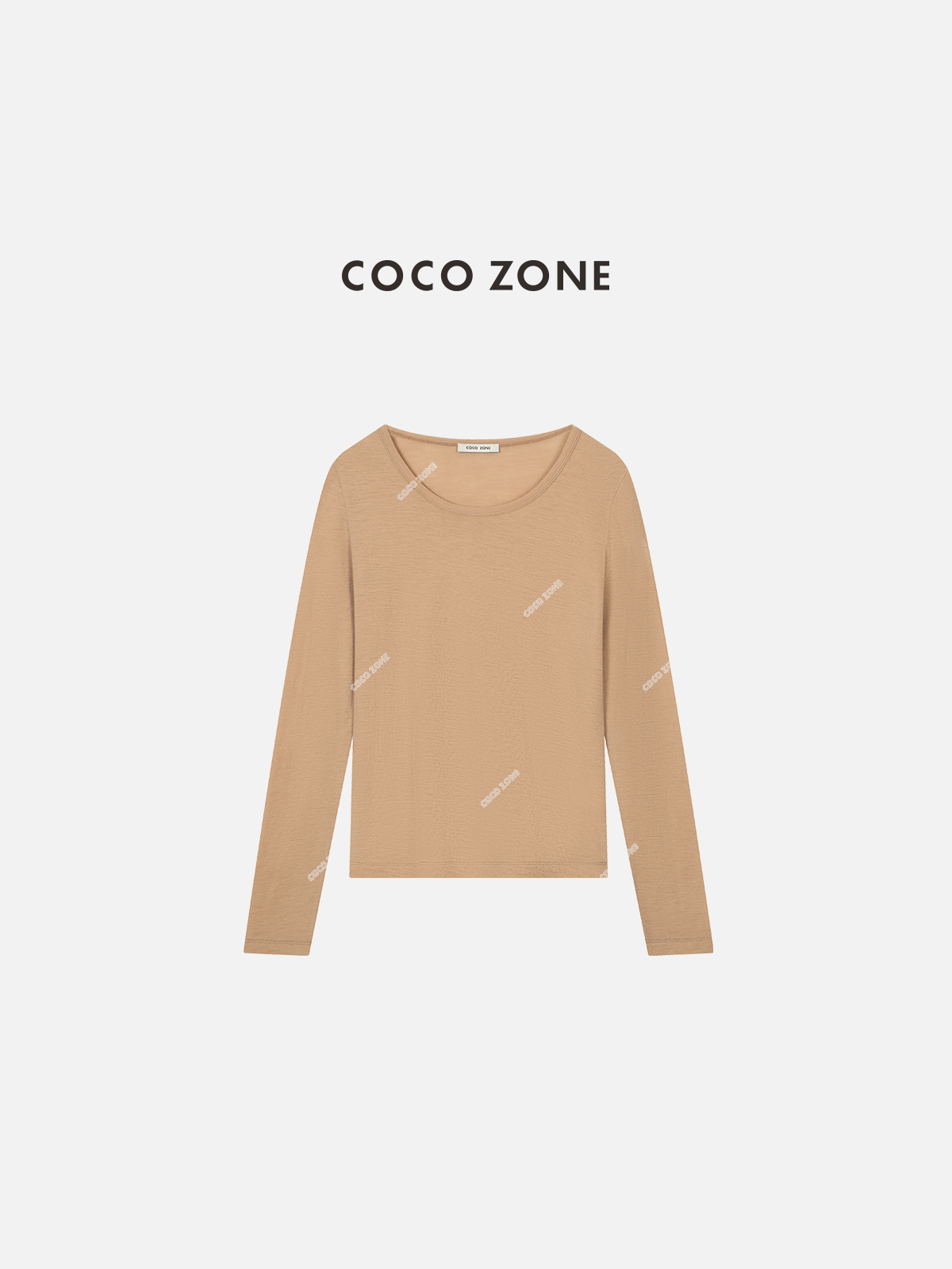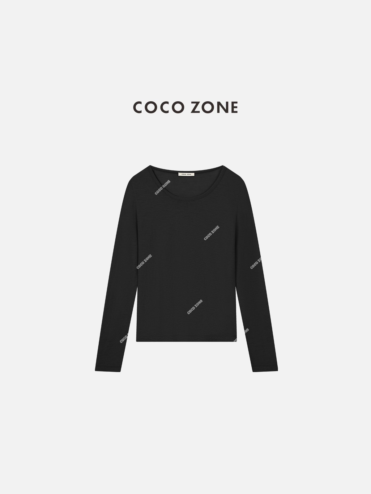 COCO ZONE100%绵羊毛时尚纯色通勤长袖打底衫 23C19325