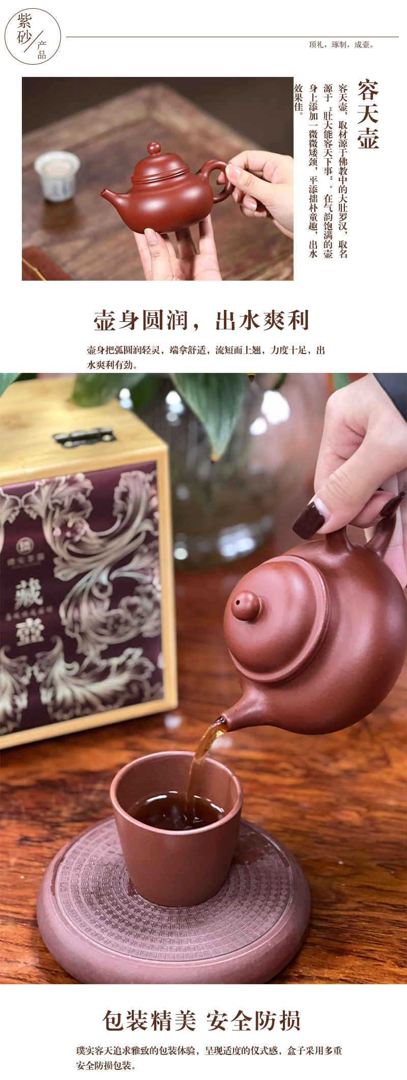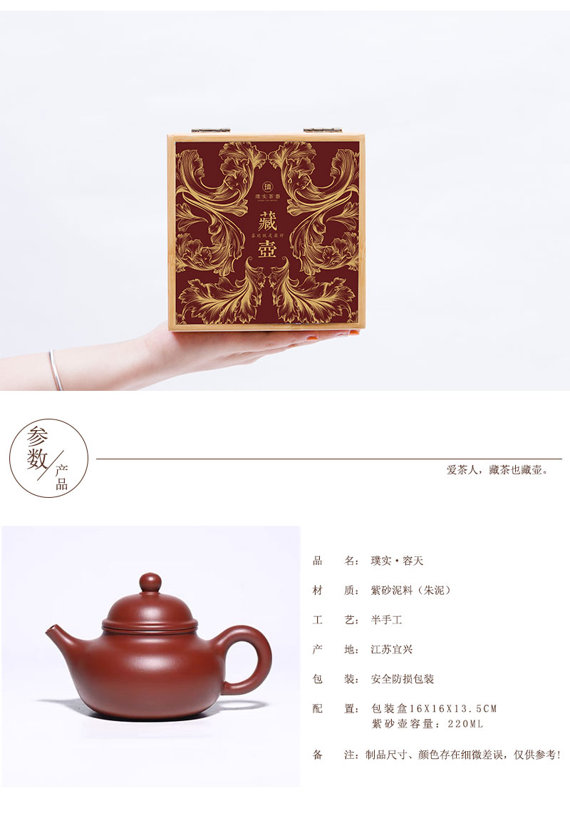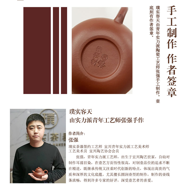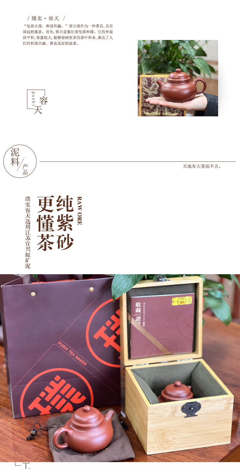 璞实茶器璞实容天宜兴原矿紫砂220ml张强手工紫砂壶办公功夫茶礼盒定制