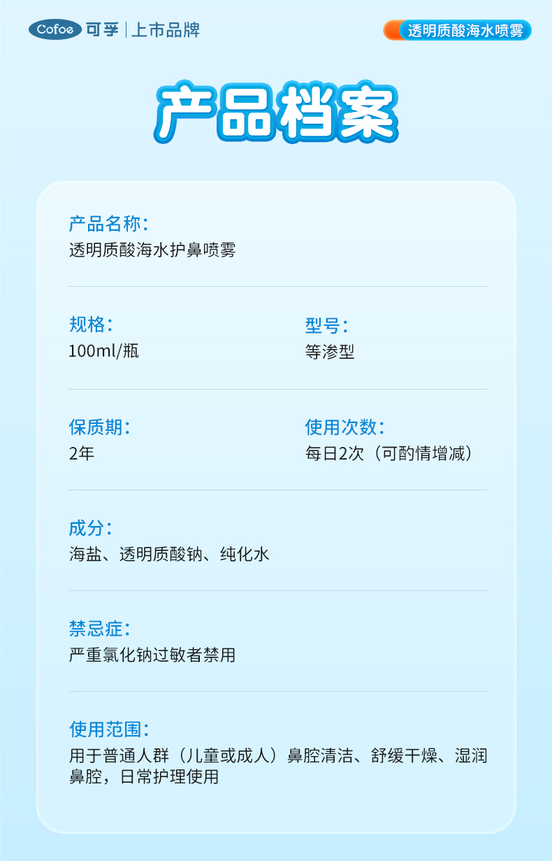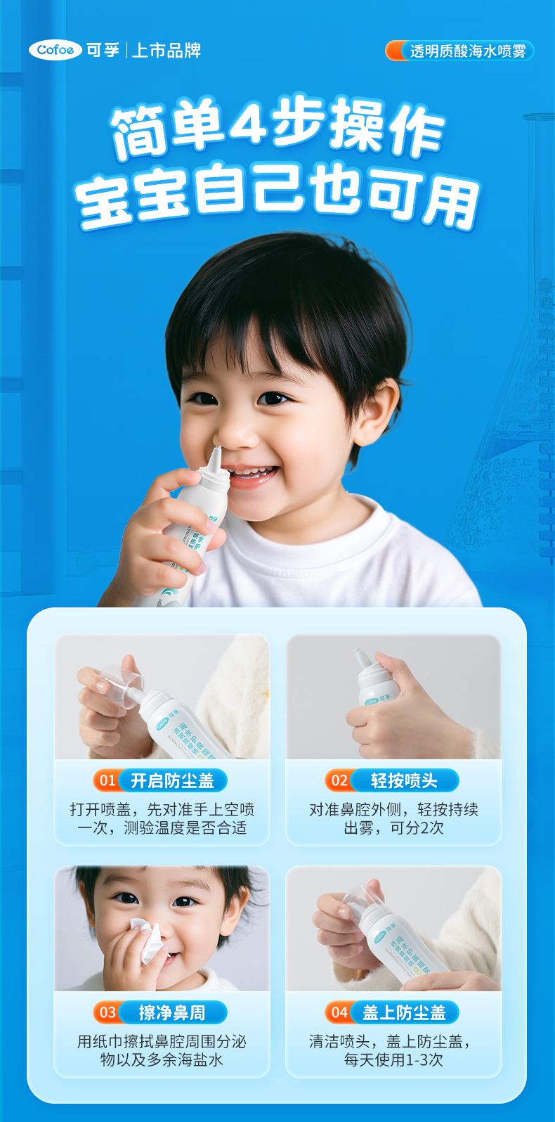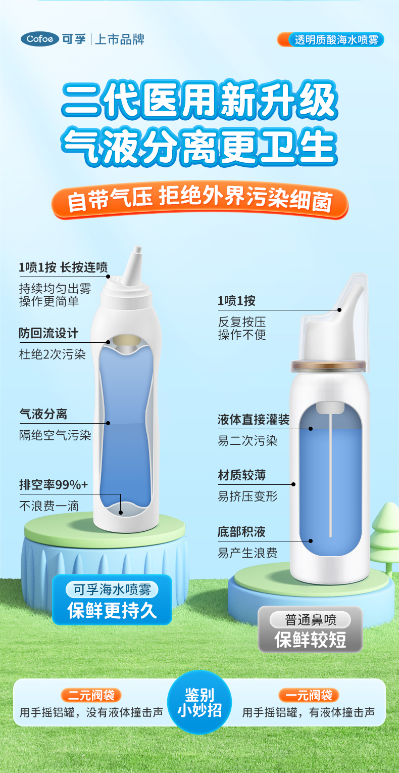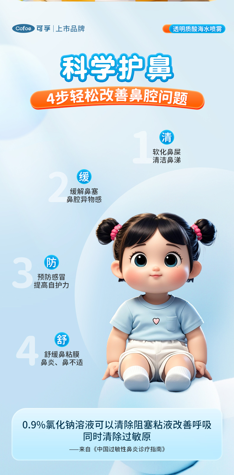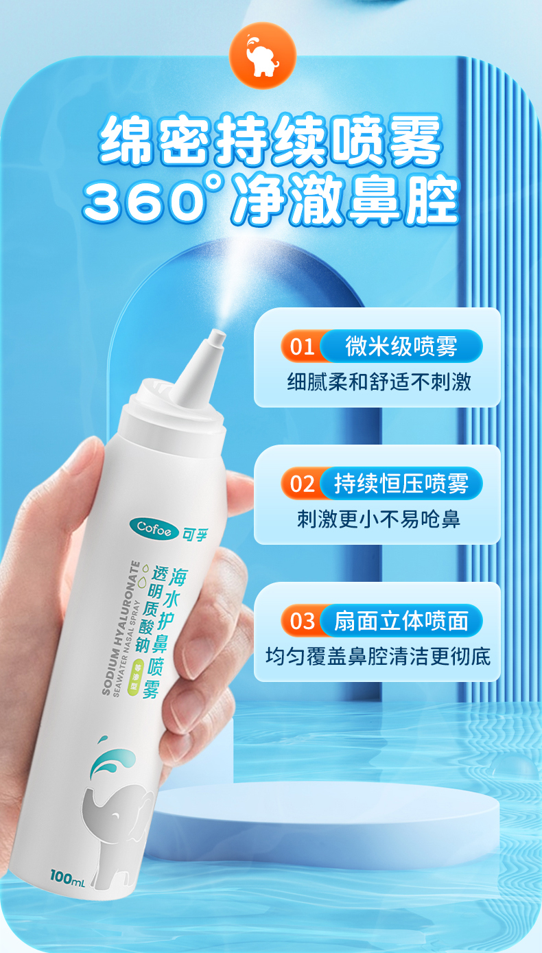 可孚海盐水鼻喷剂婴儿鼻腔喷雾儿童生理性盐水洗鼻子家用鼻炎神器