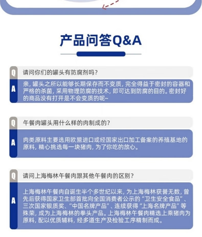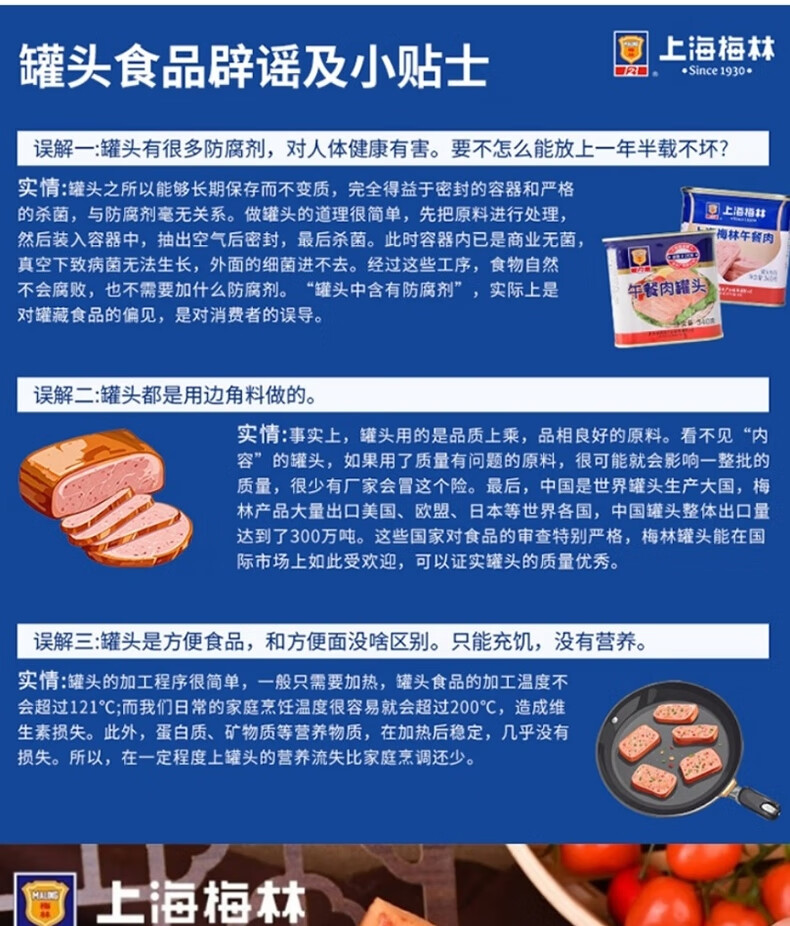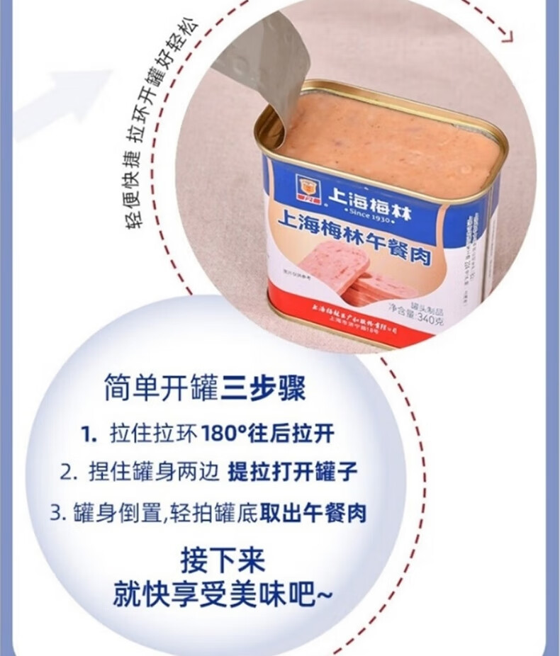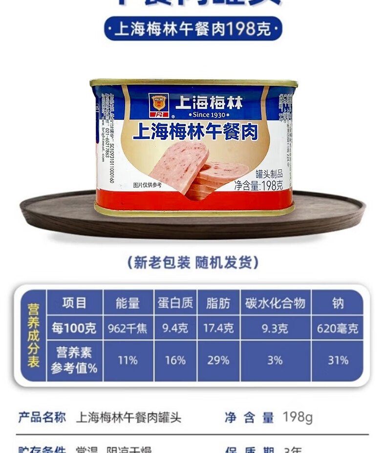 上海梅林午餐肉罐头198g*8个(新老包装随机发货)