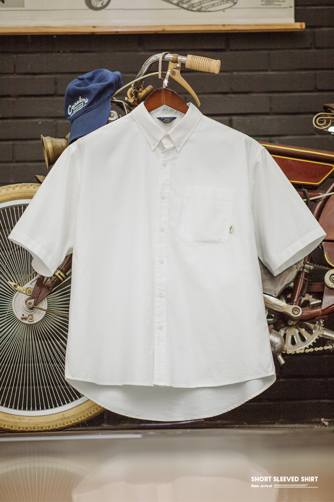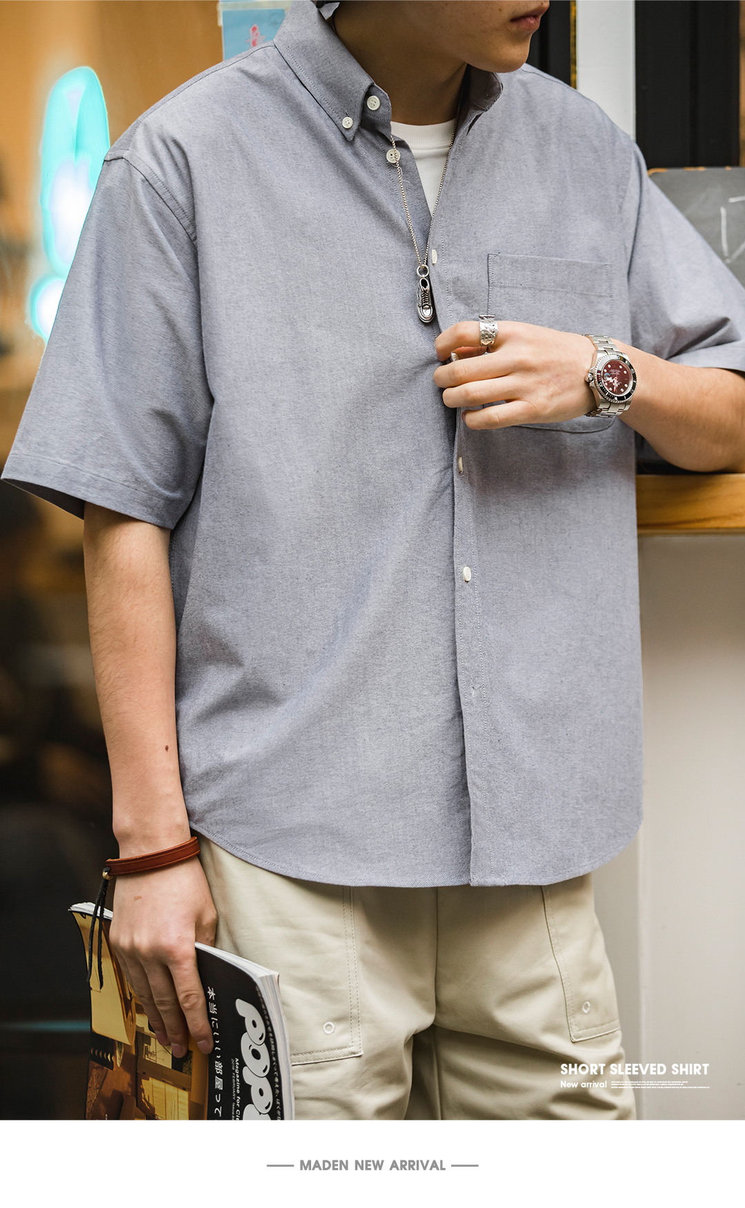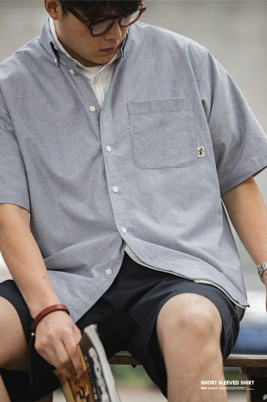 工装优选 美式复古oversize白色叠穿短袖衬衫宽松cityboy衬衣男潮