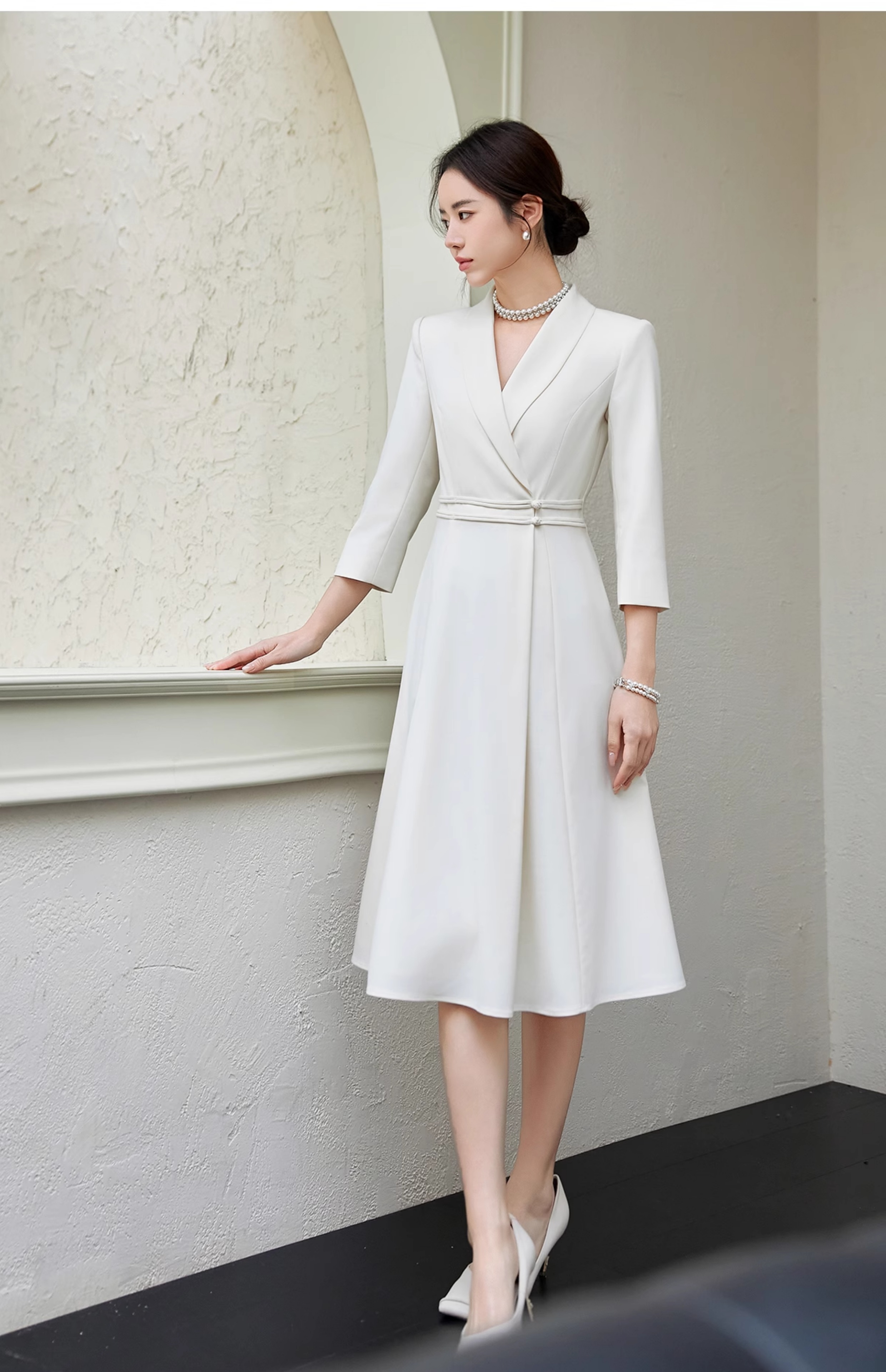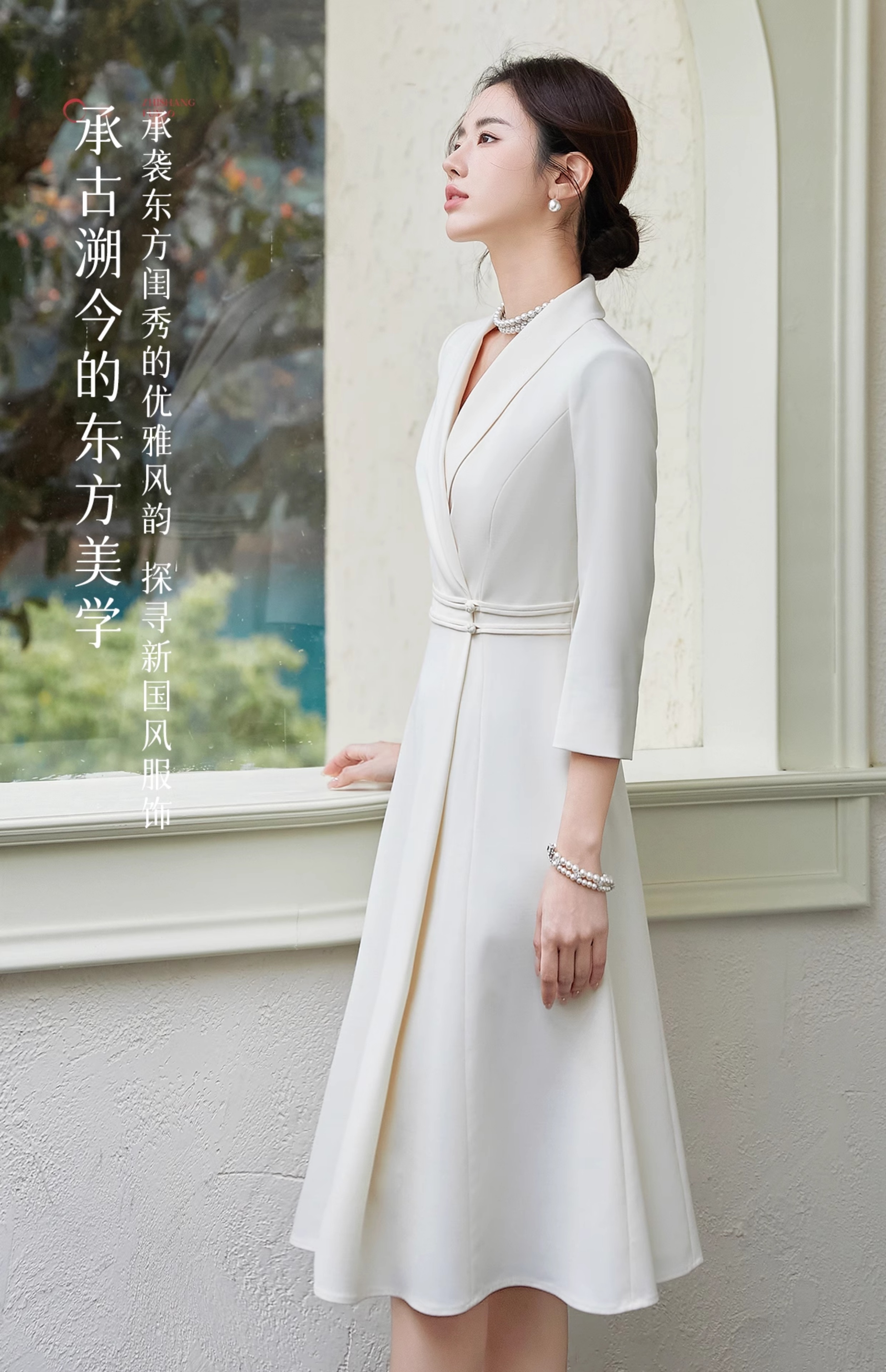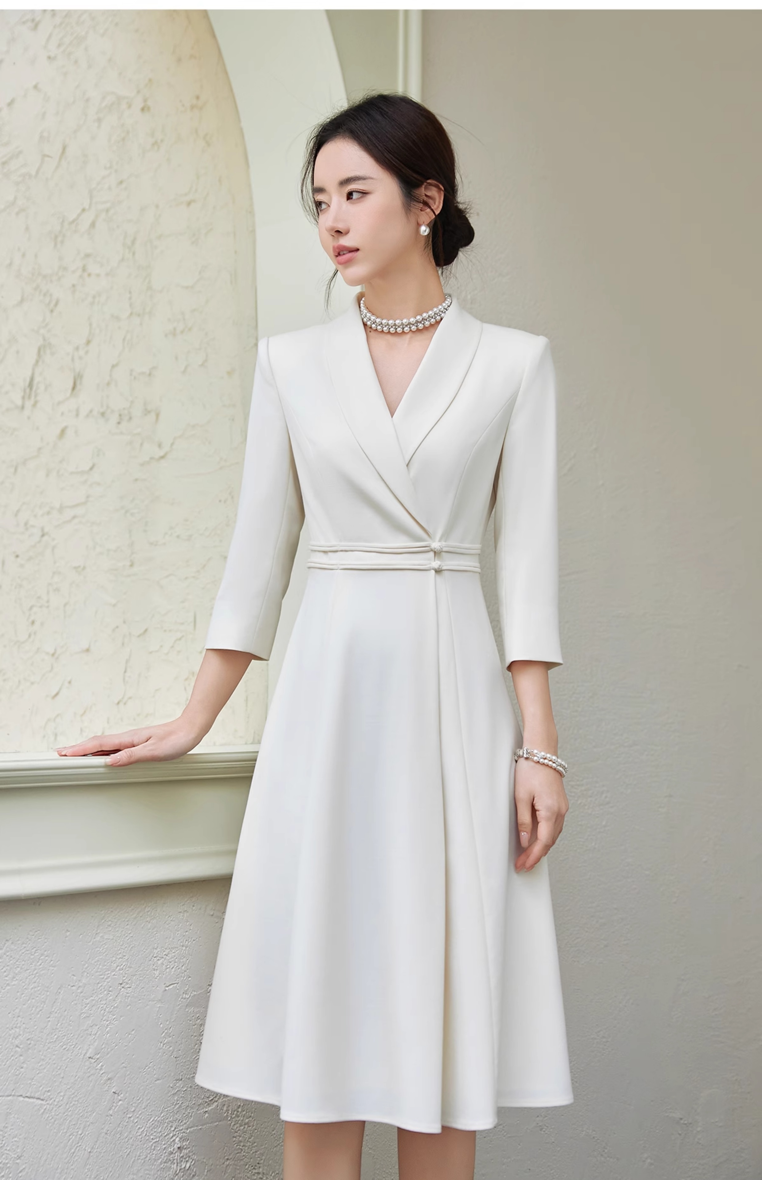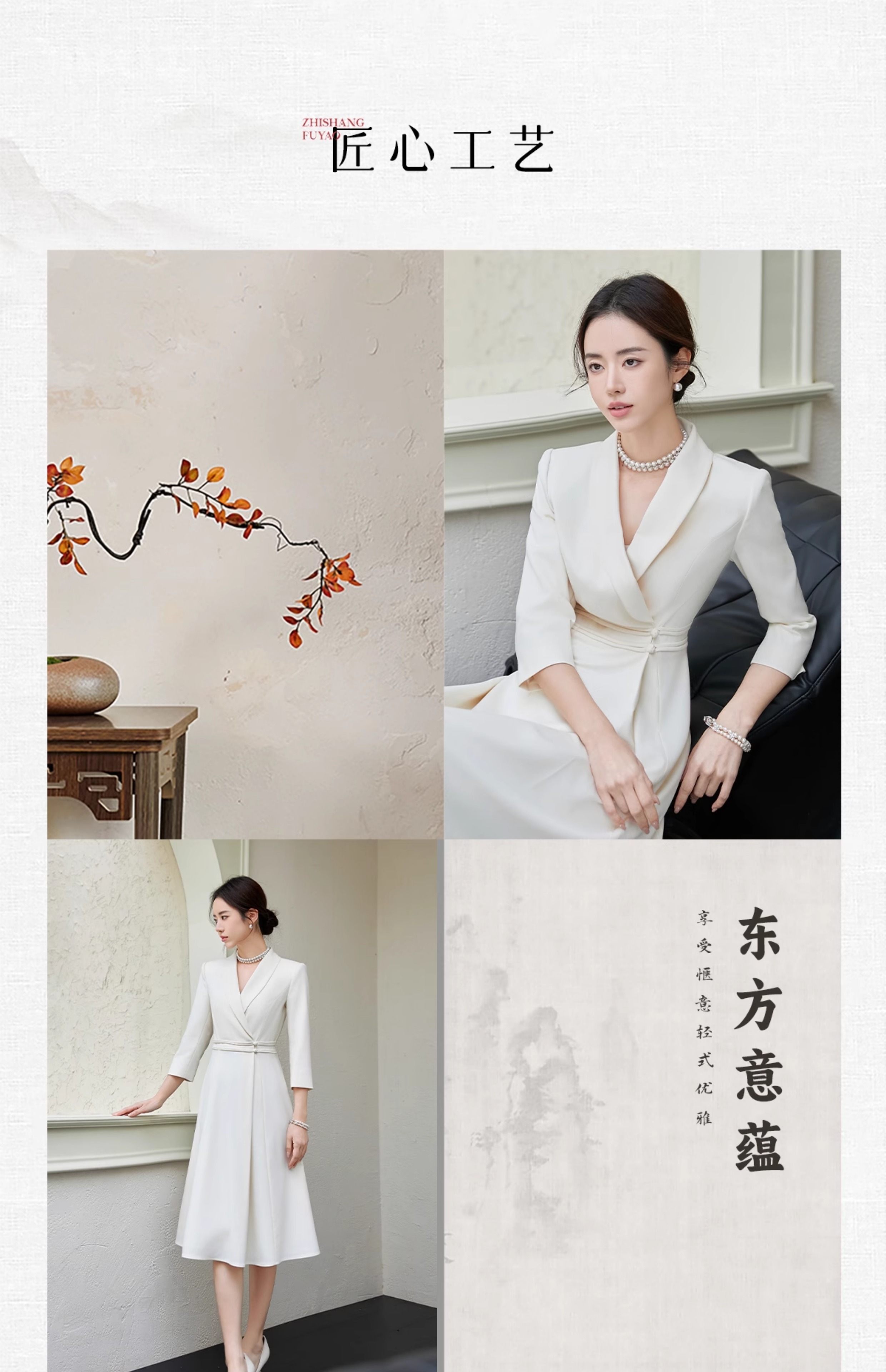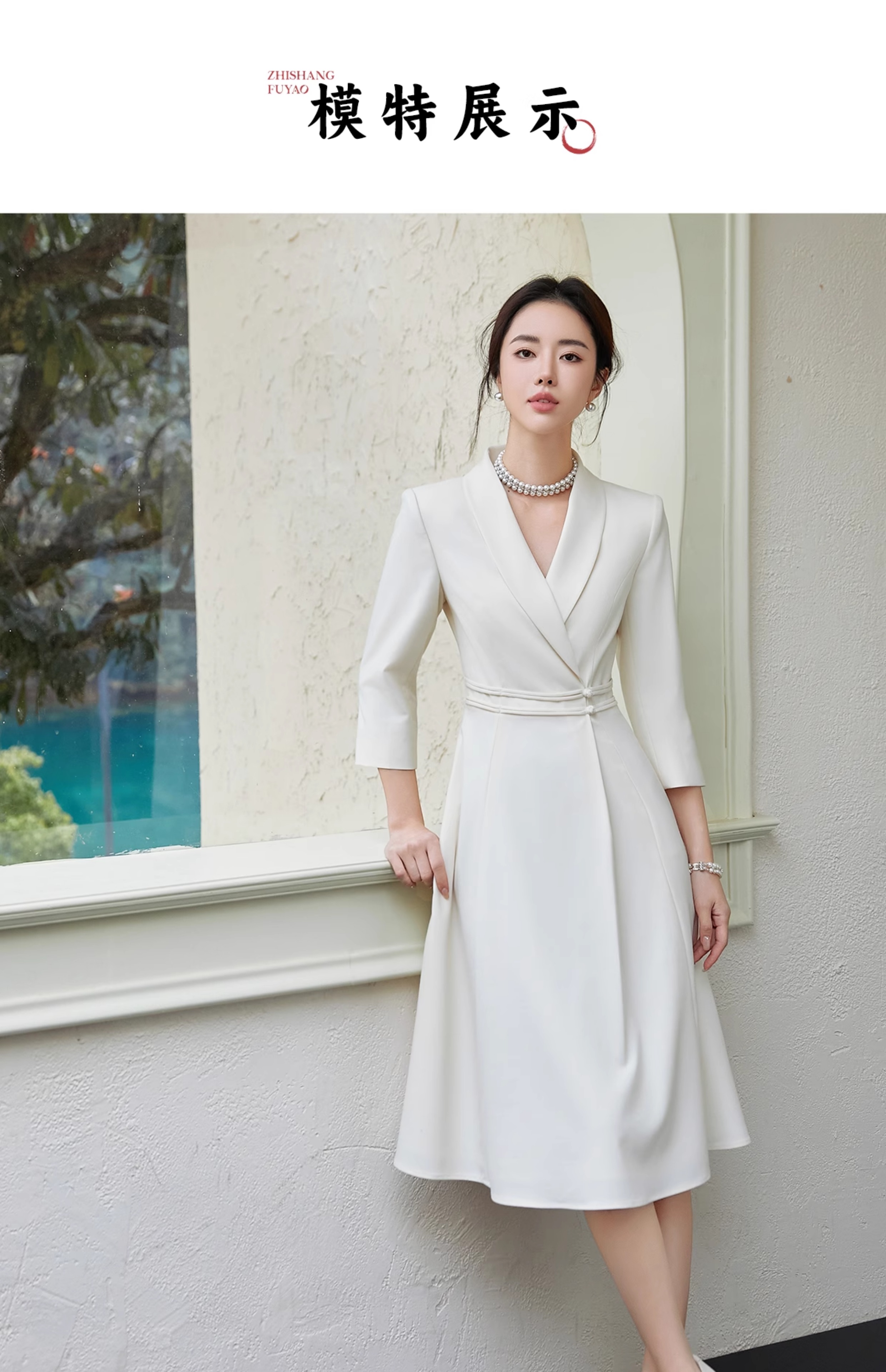 FUYAO扶摇 中华风连衣裙女修身显瘦西装裙优雅七分袖高级大摆裙夏