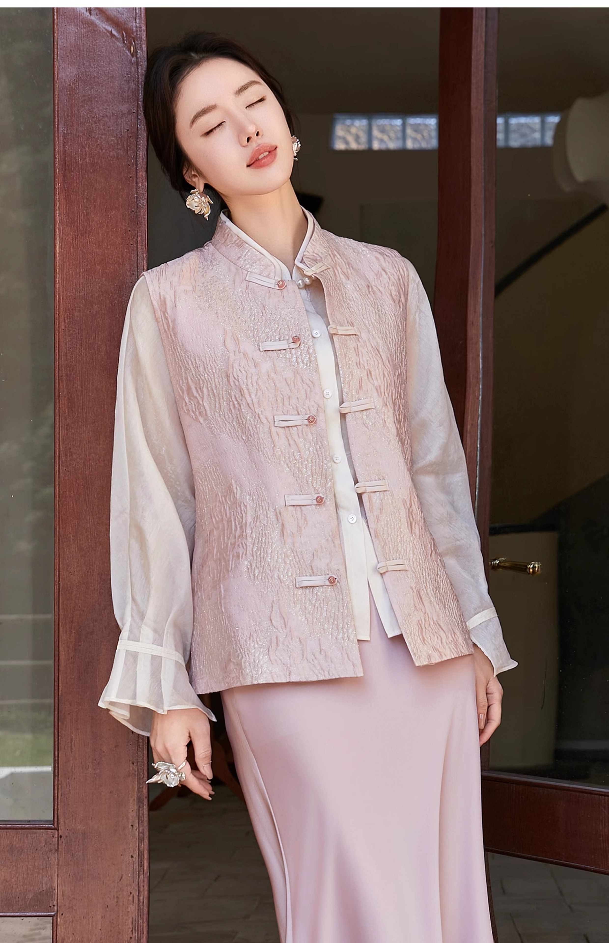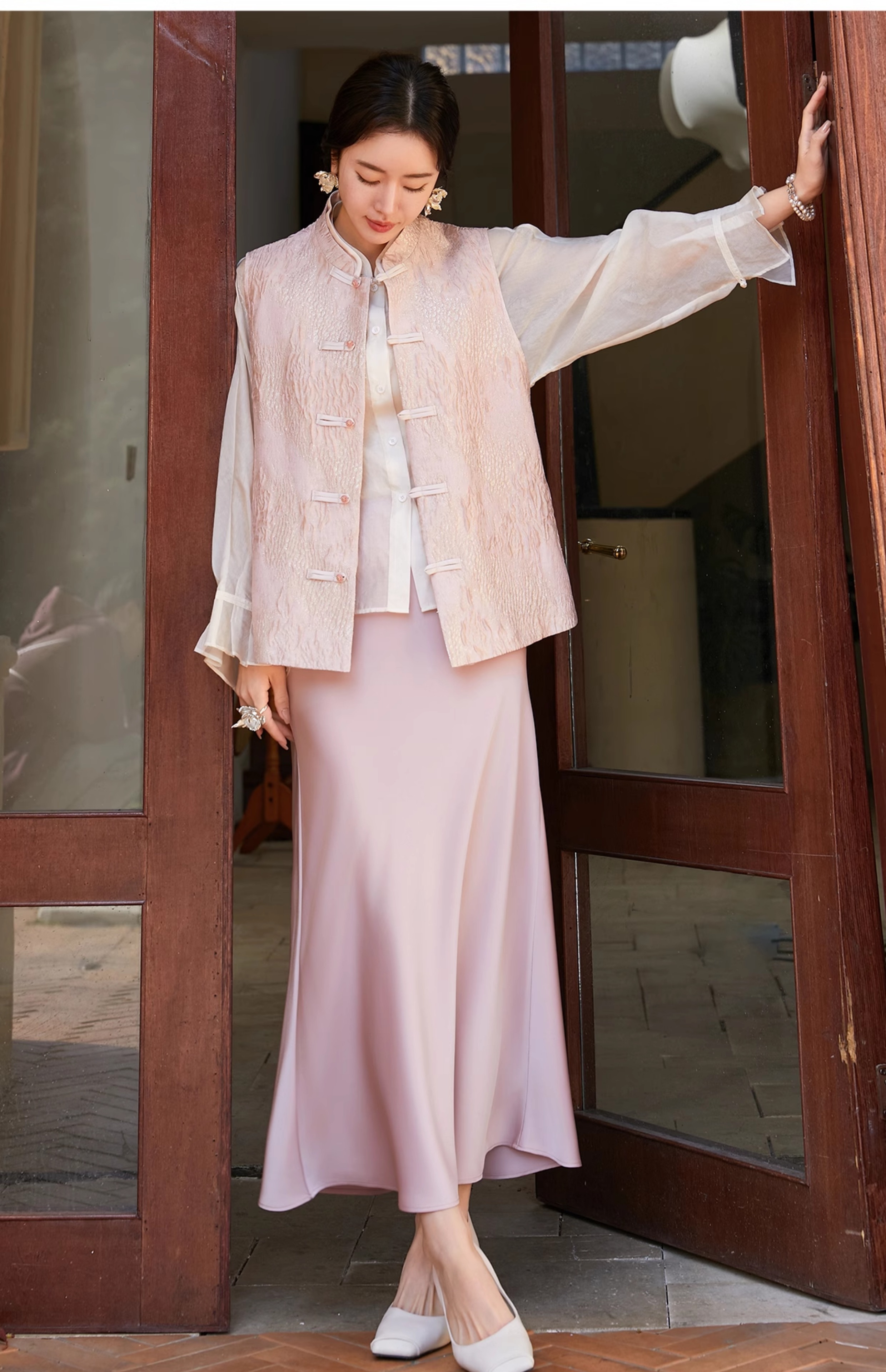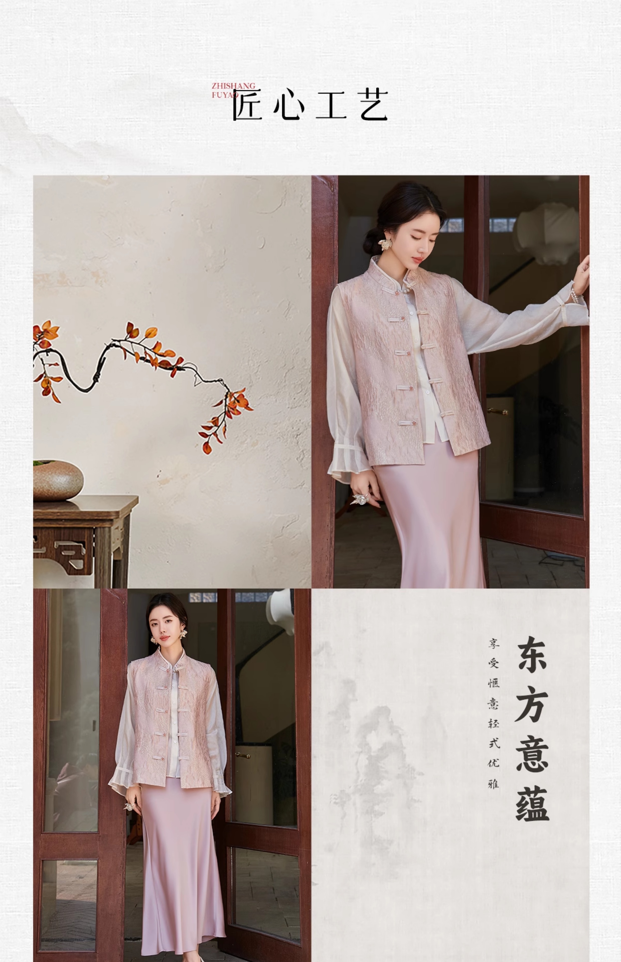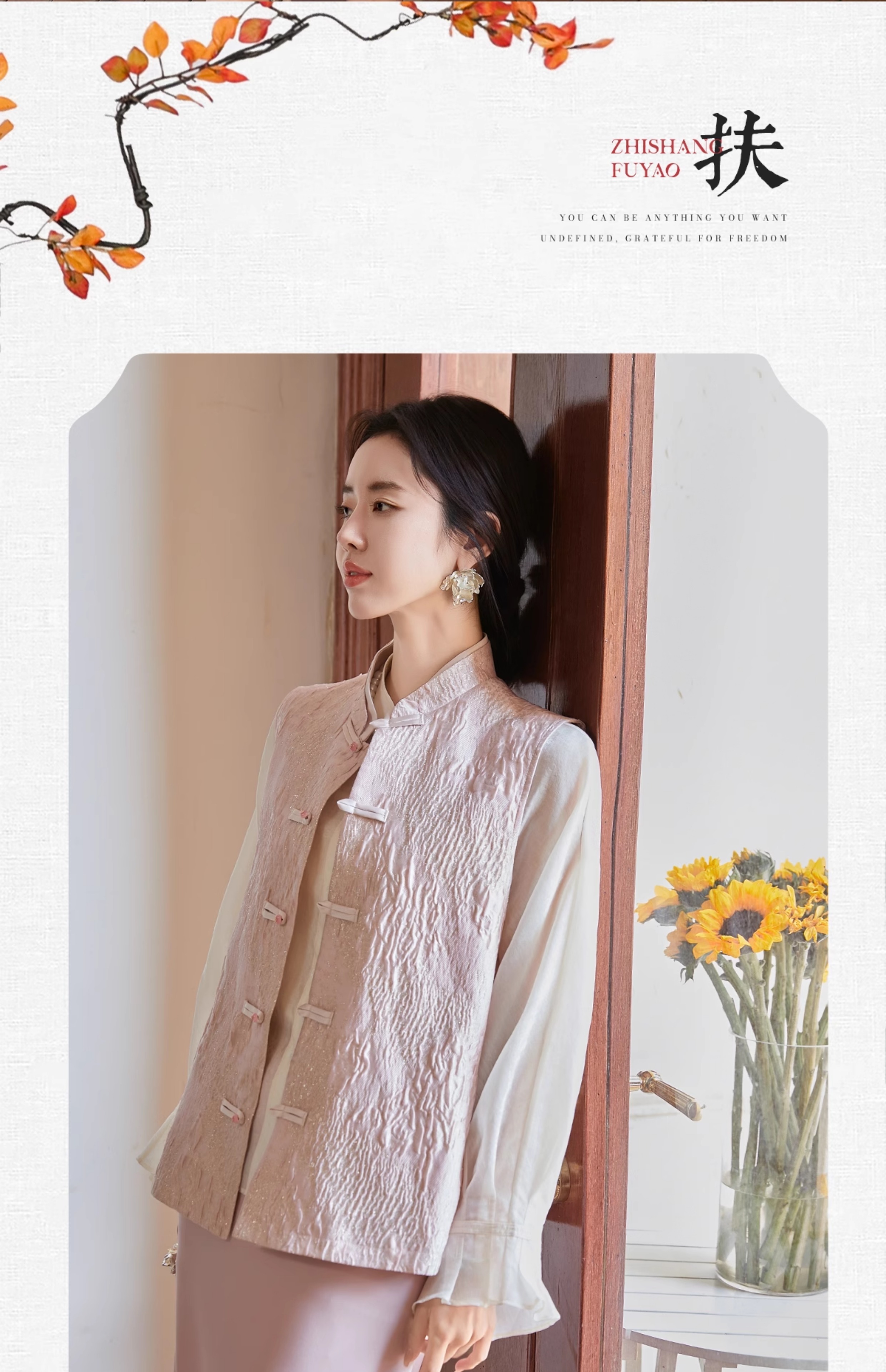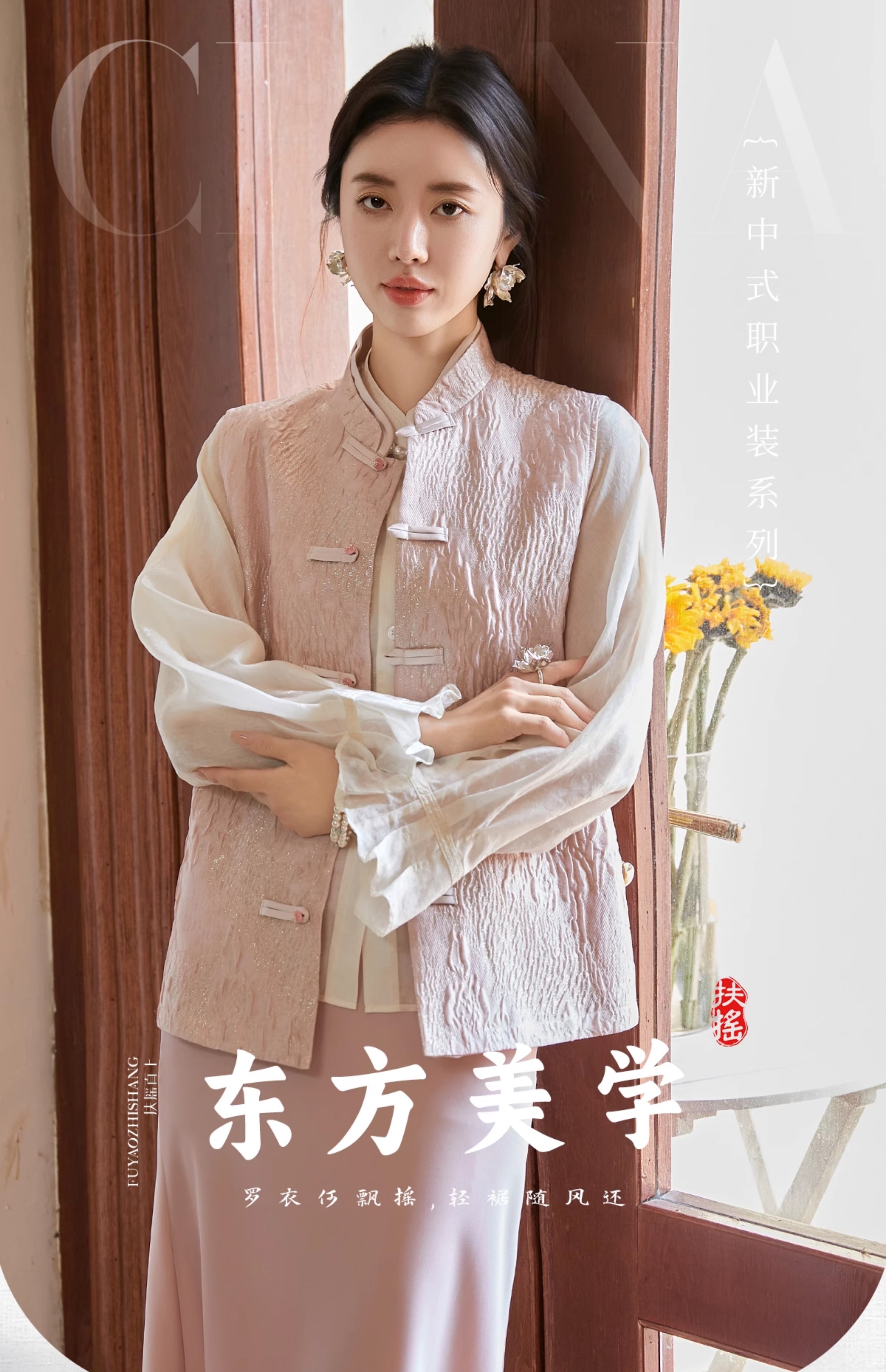 FUYAO扶摇 新中式国风套装女2025国潮复古对襟马甲高级感三件套夏