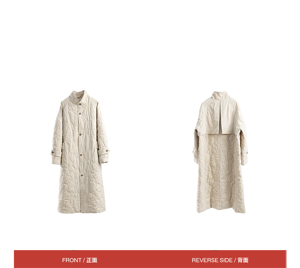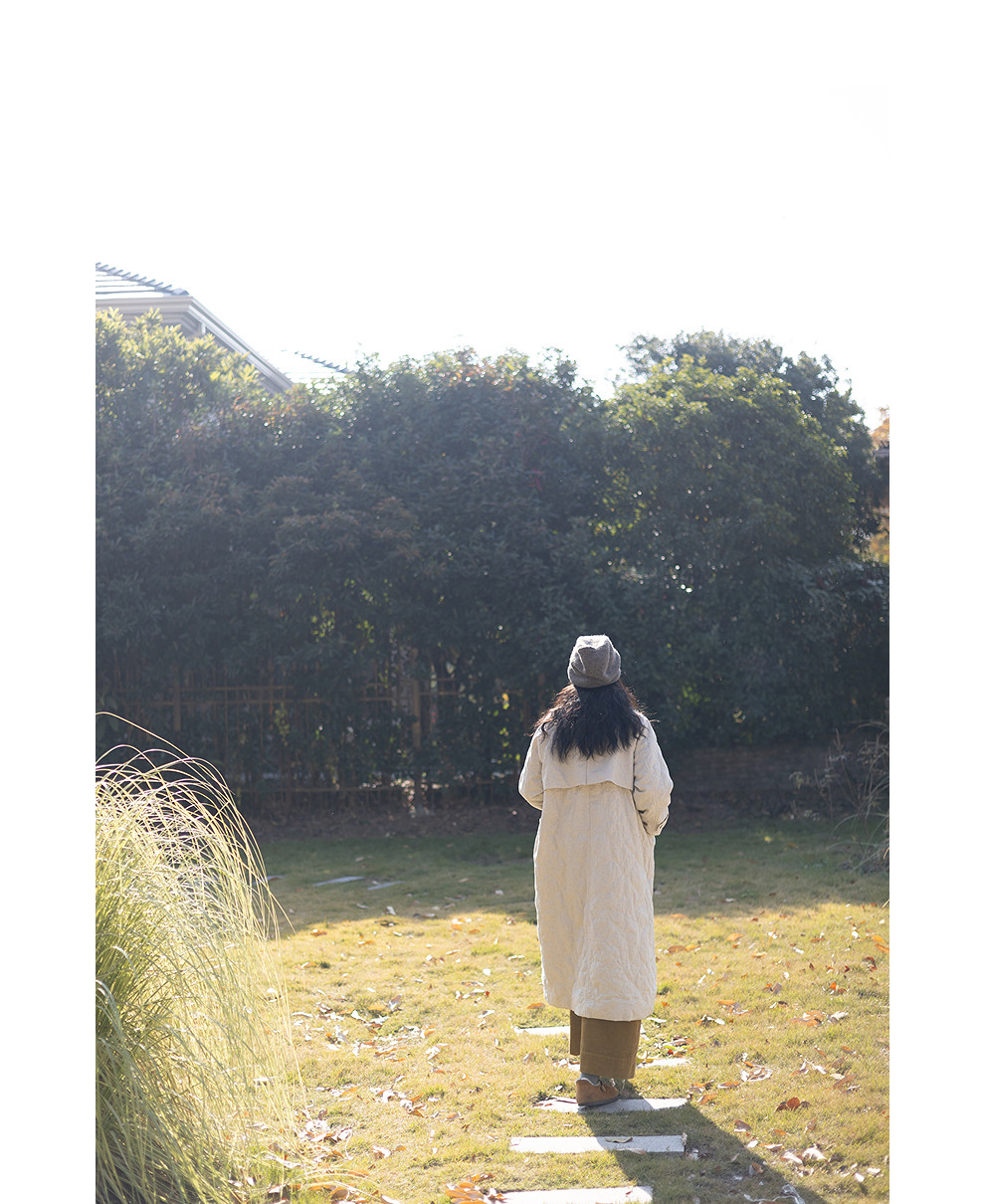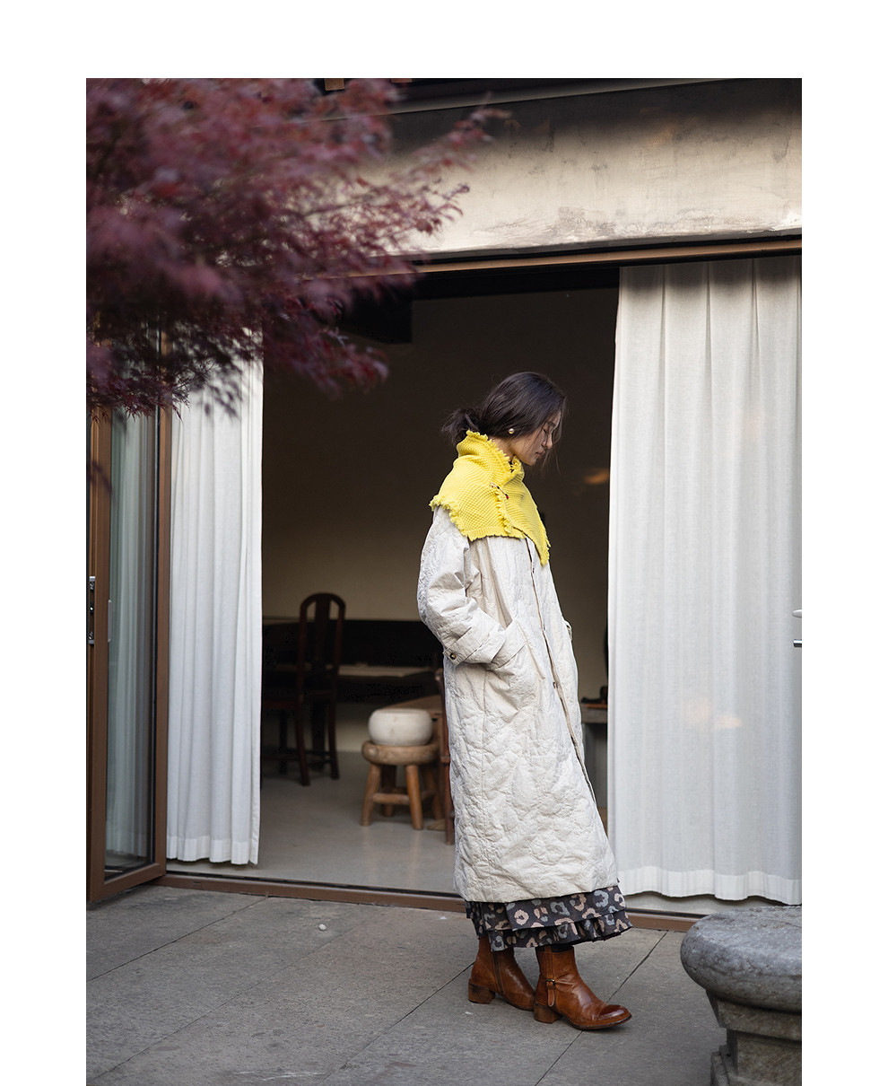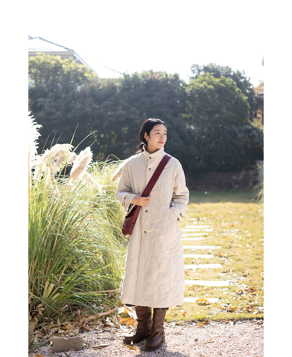 绽放066朵/棉麻提花宽松气质长款风衣外套女中长款棉服插肩袖大衣