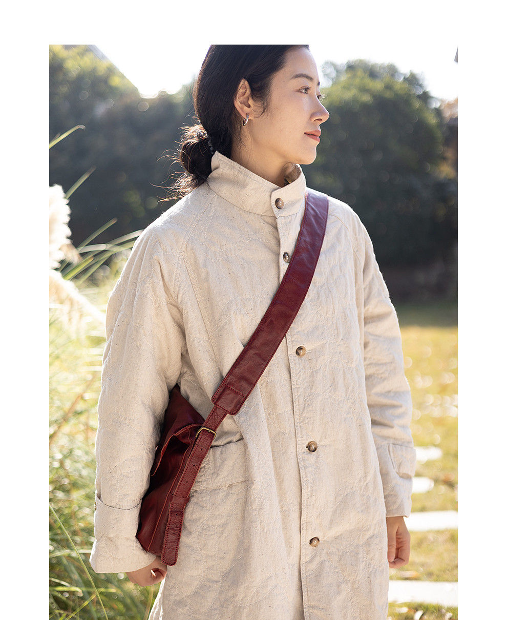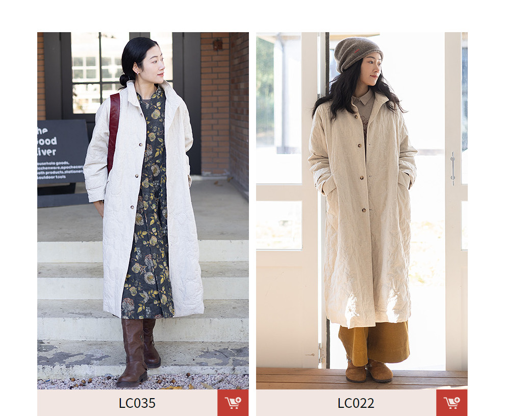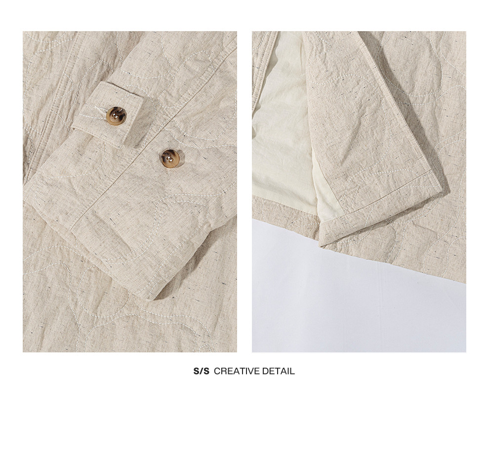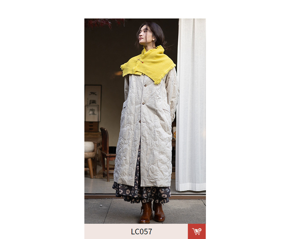 绽放066朵/棉麻提花宽松气质长款风衣外套女中长款棉服插肩袖大衣