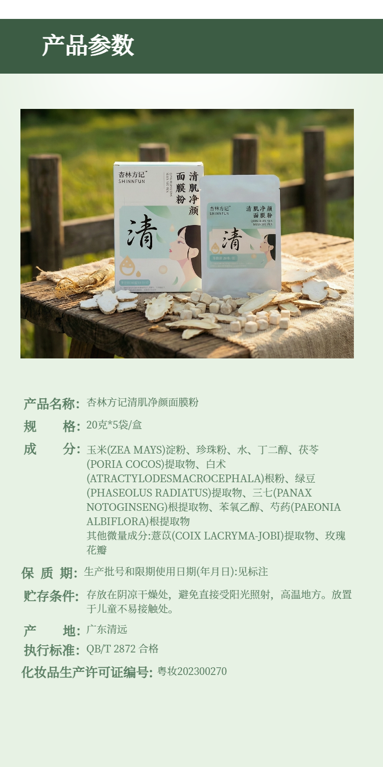 【清-杏林方记】清肌净颜面膜粉