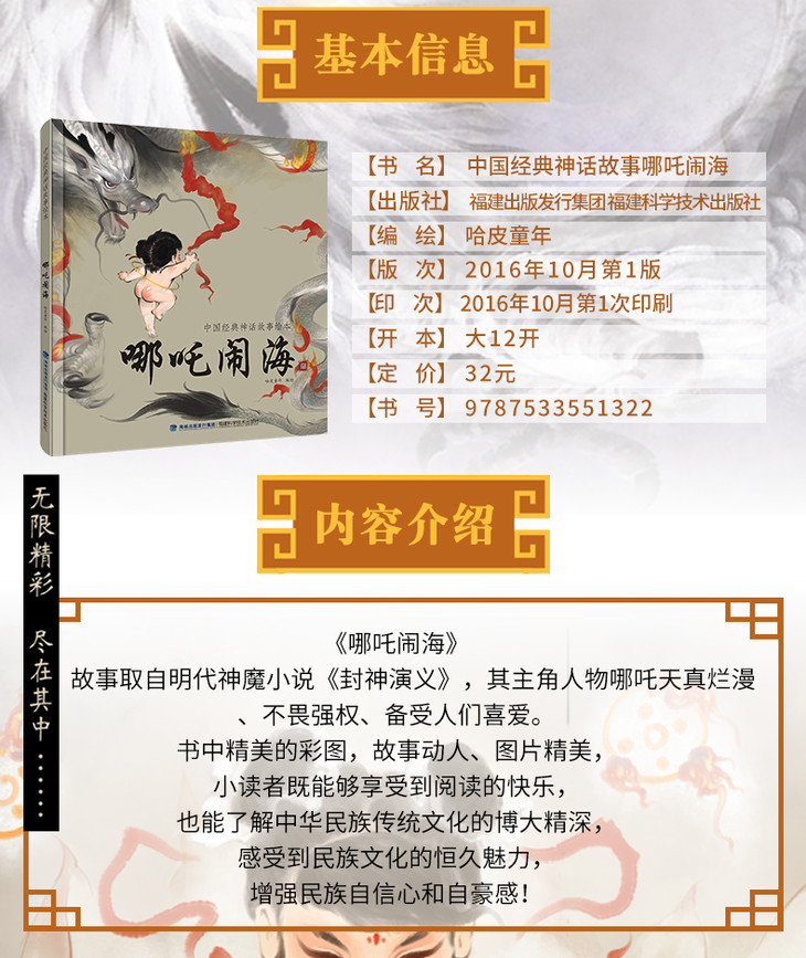 【青葫芦】中国经典神话故事绘本:哪吒闹海 精装硬壳绘本 3-6岁