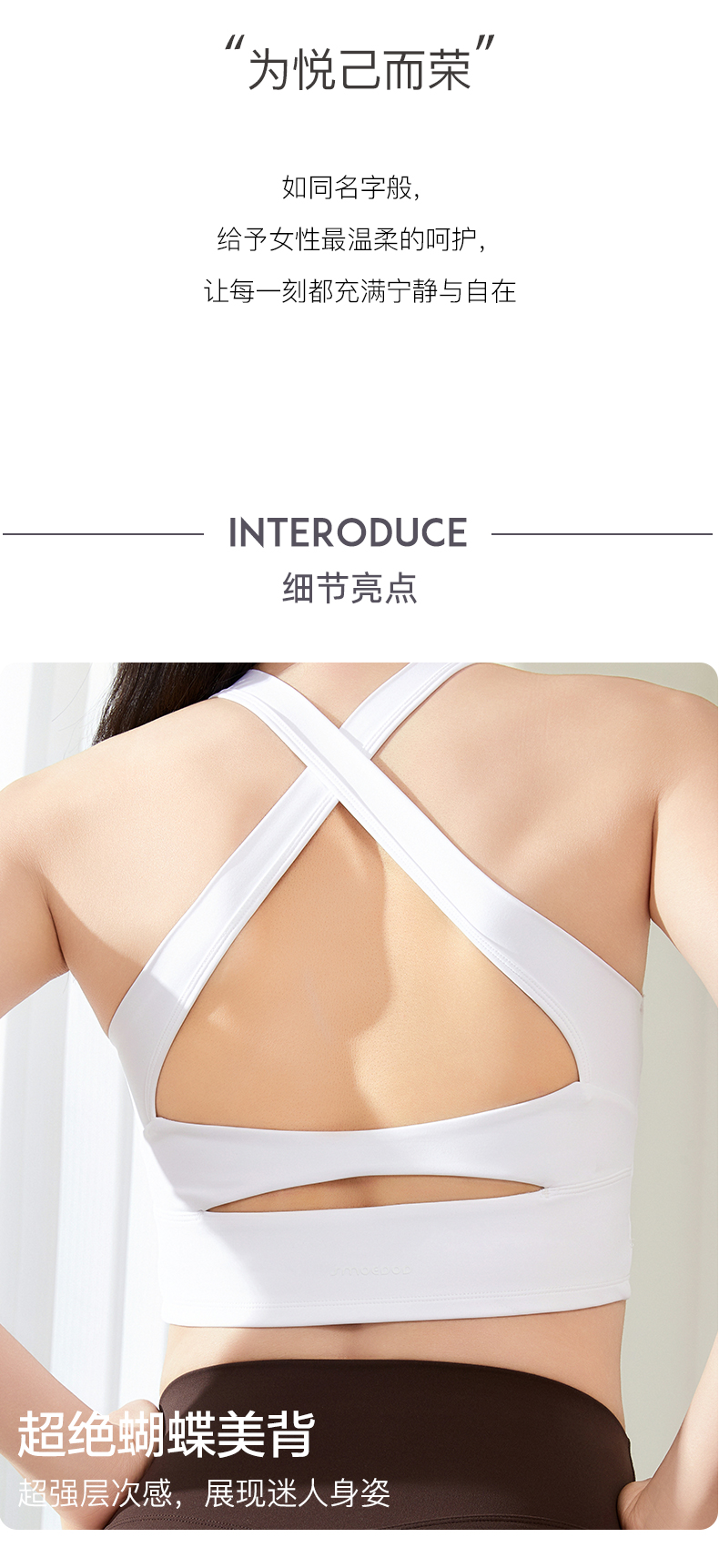 SMOEDOD/水沐伊朵蝴蝶美背可插胸垫瑜伽健身稳定收副乳挂脖交叉设计50188