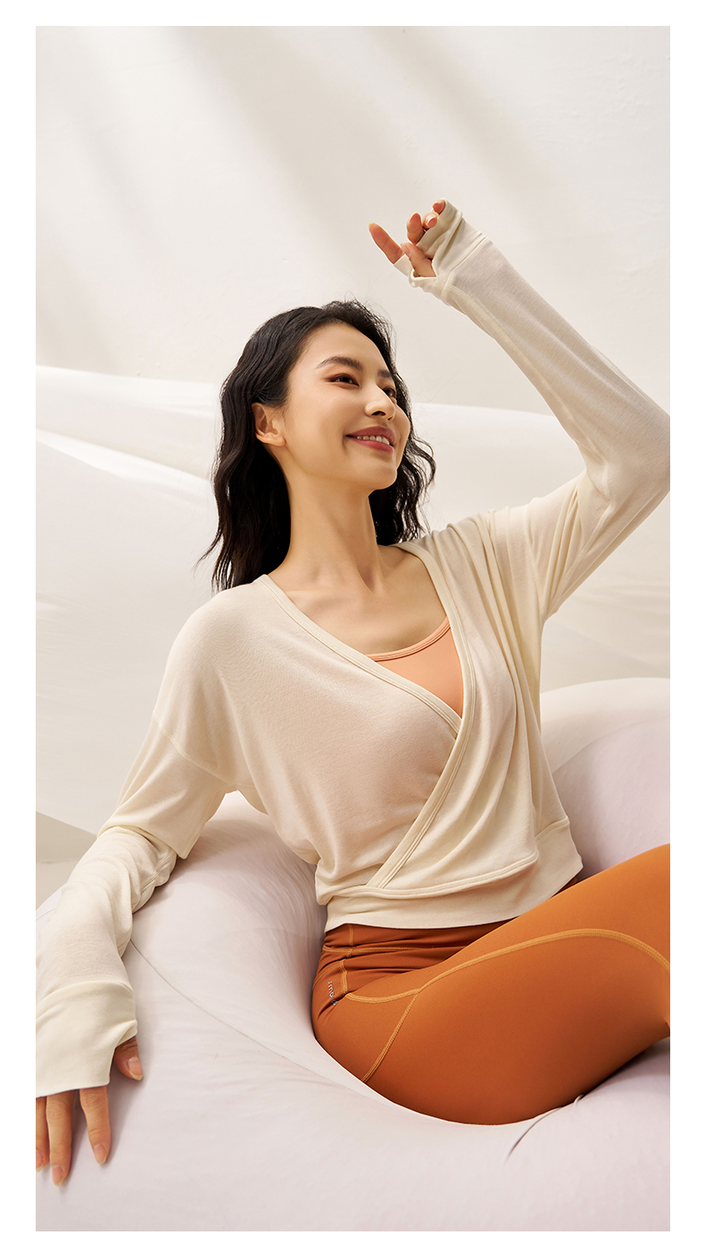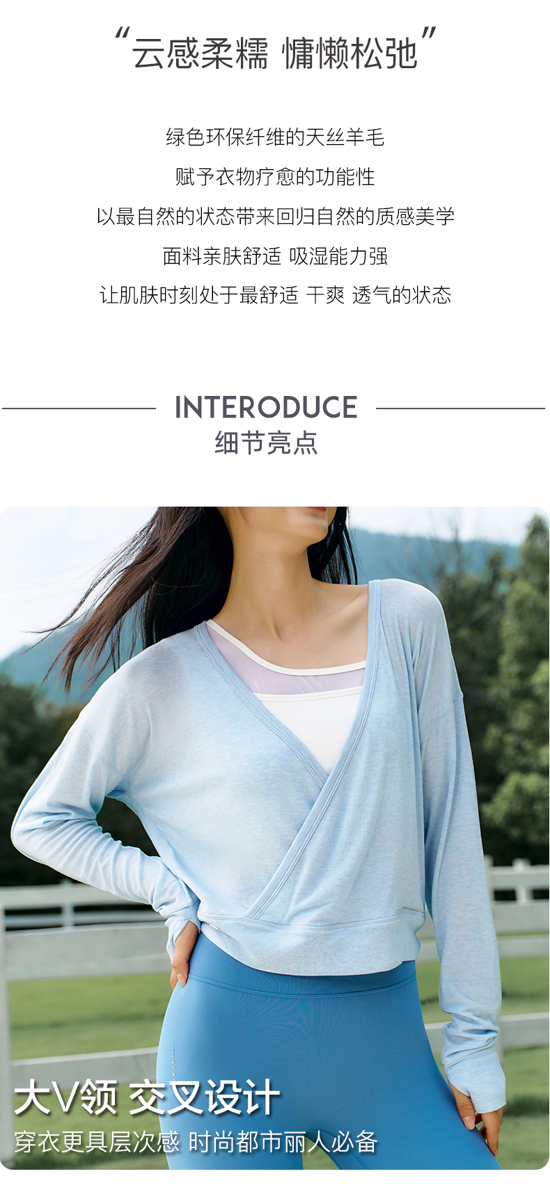 SMOEDOD/水沐伊朵瑜伽罩衫女云感柔糯大V领交叉设计慵懒松弛50109