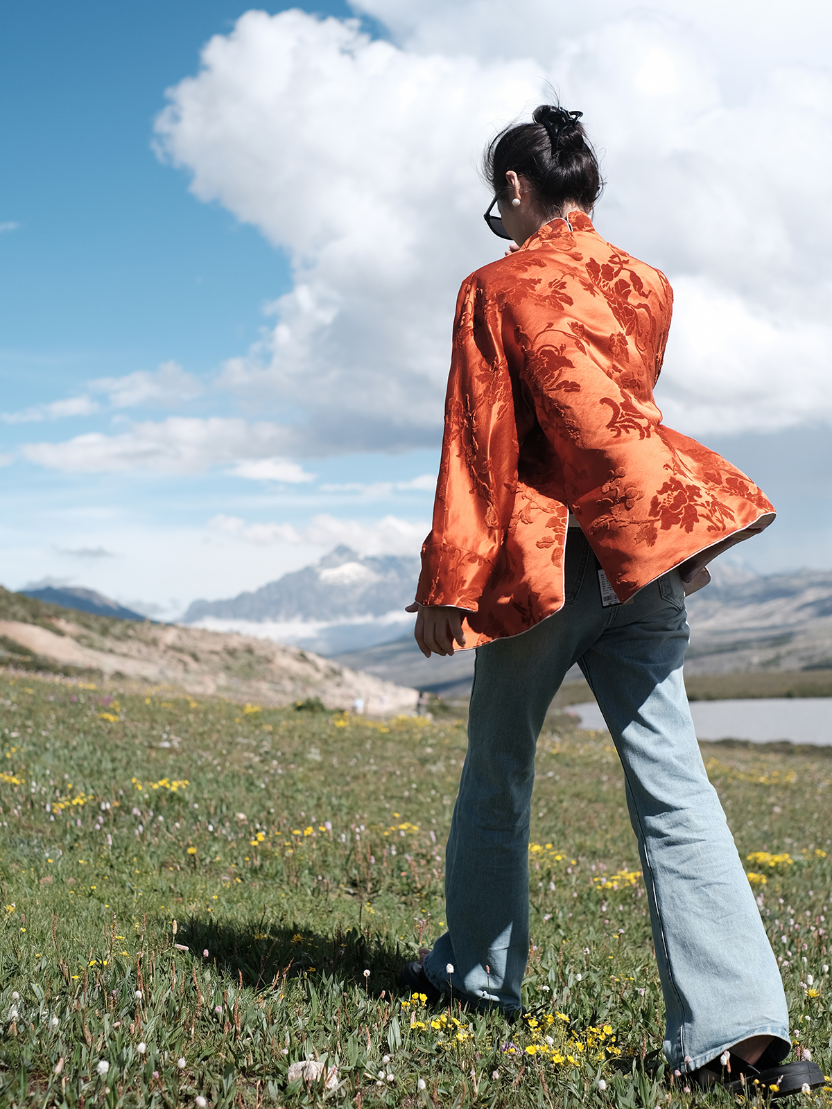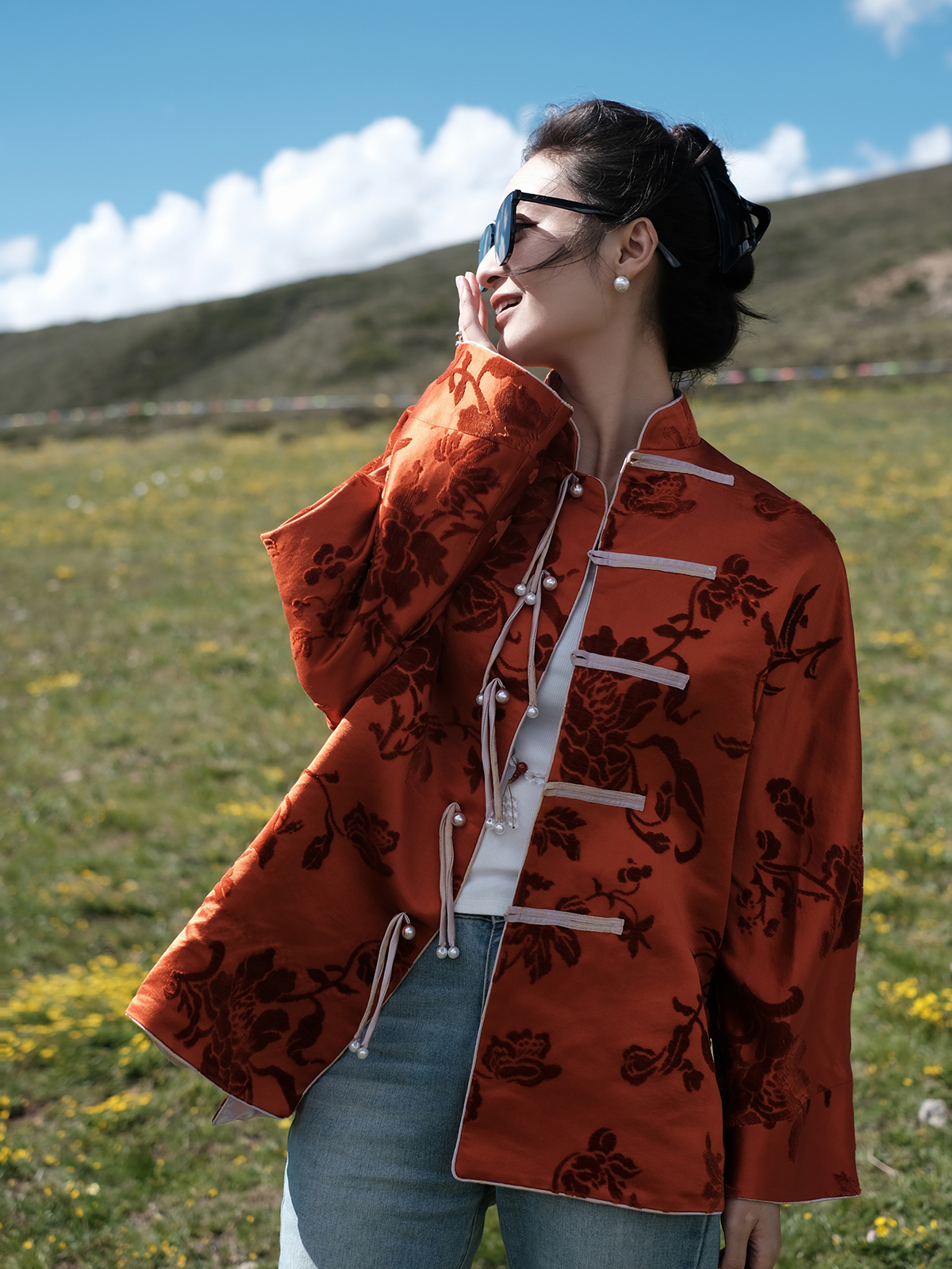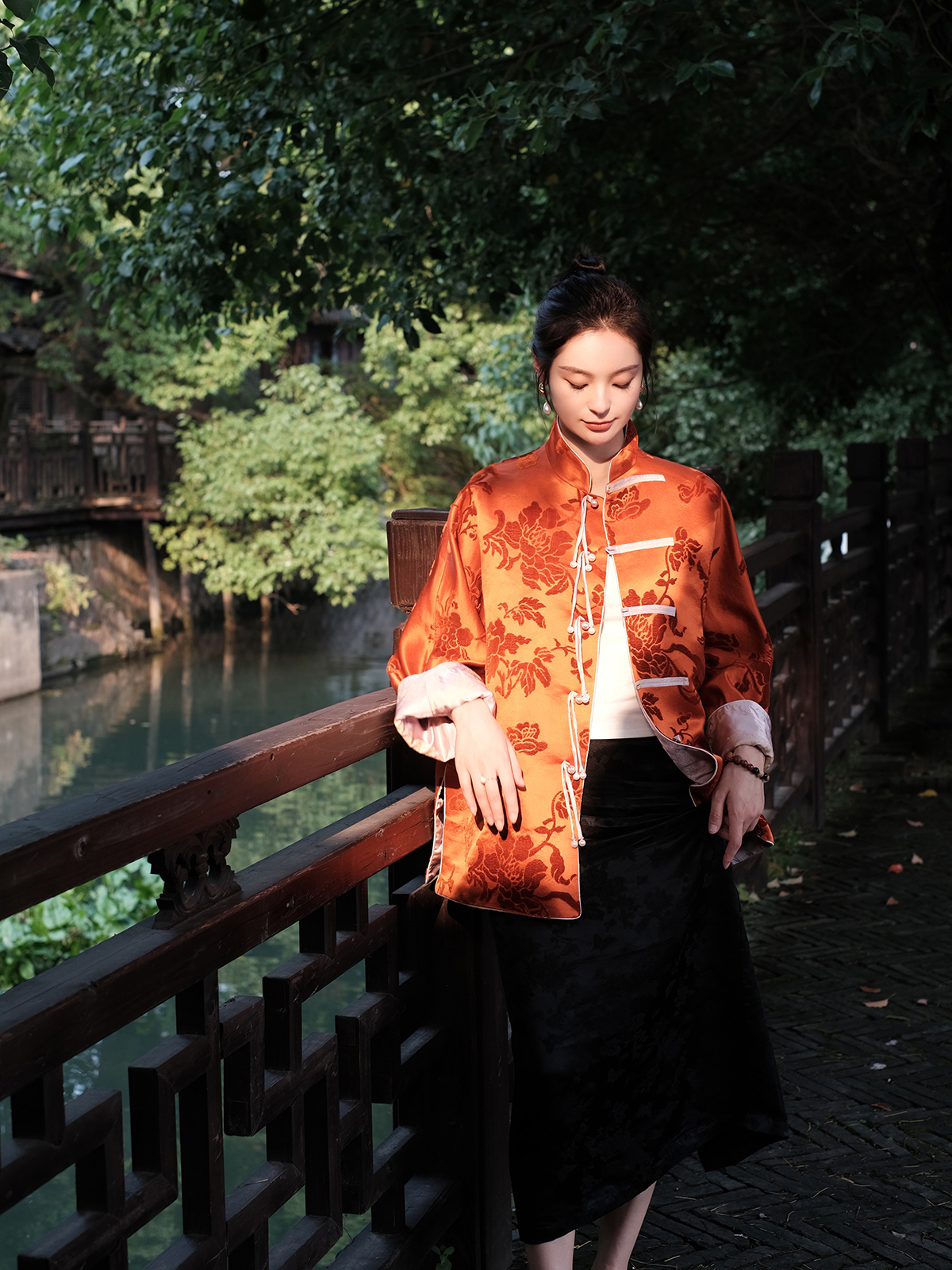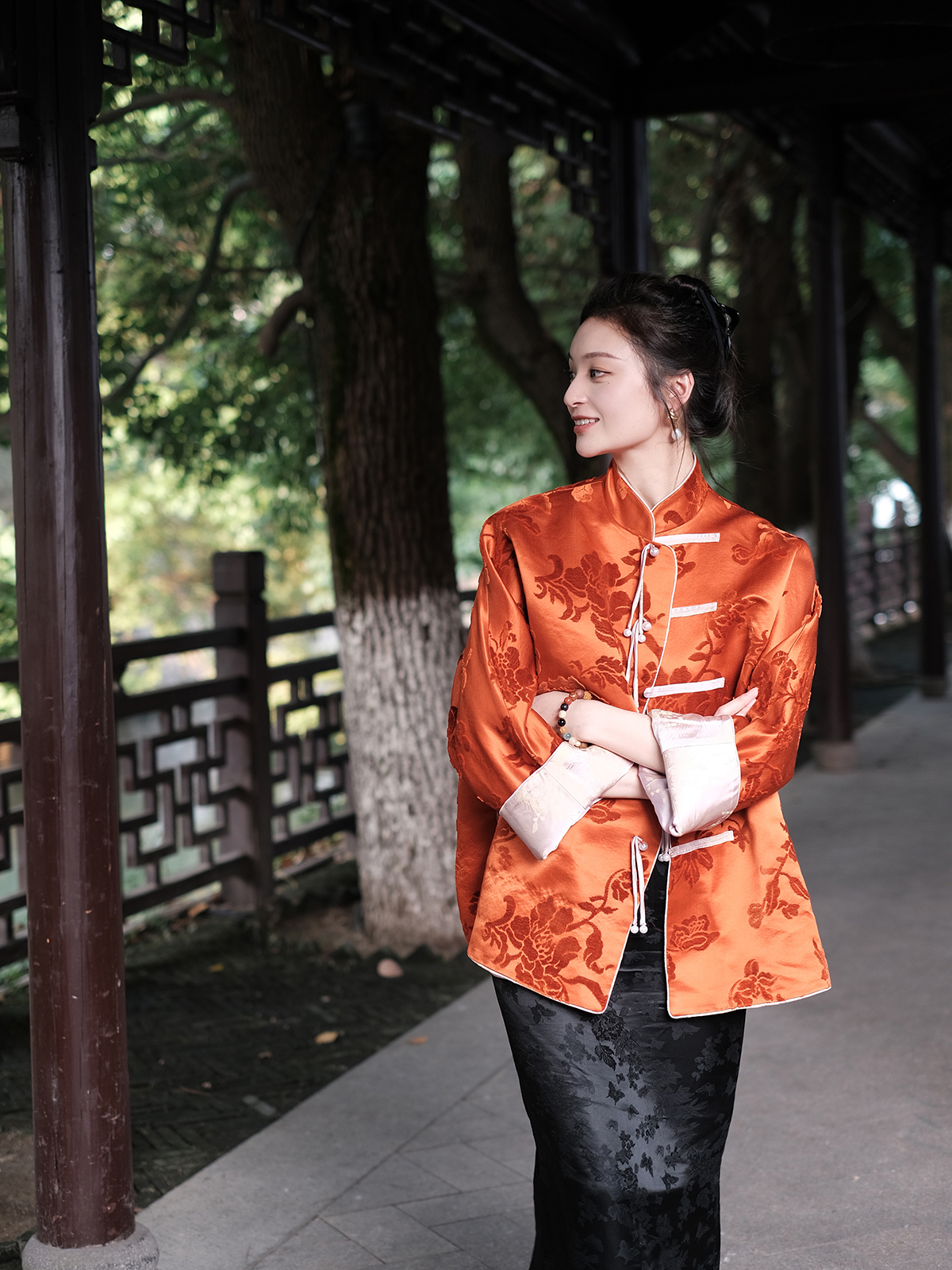 盛唐牡丹 |限量款| 真丝漳绒对襟外套柿子红
