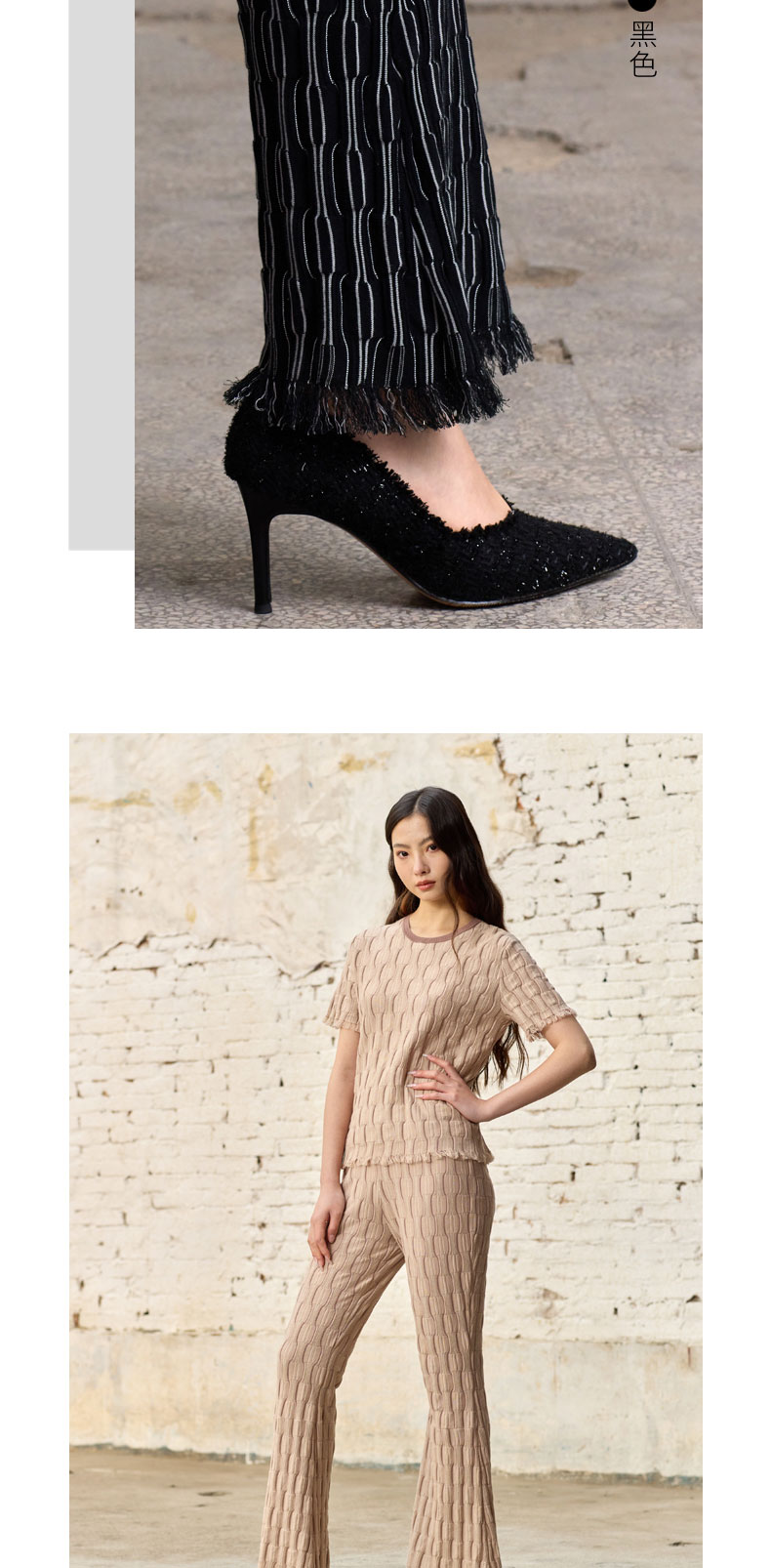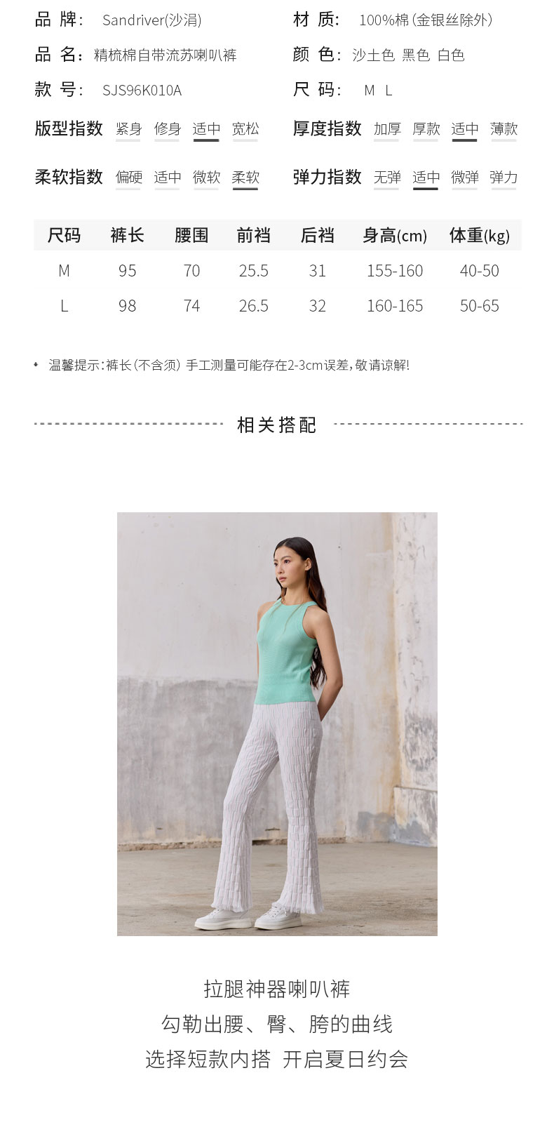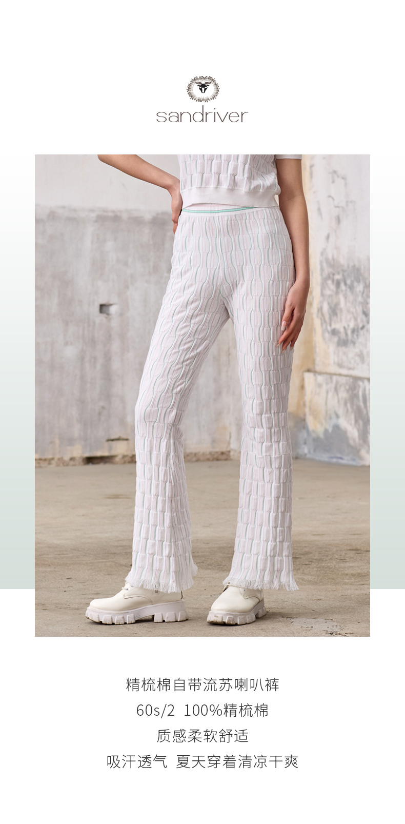 精梳棉自带流苏喇叭裤SJS96K010A