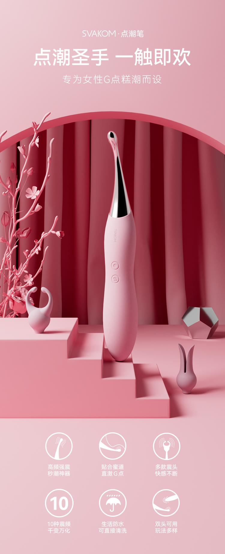SVAKOM点潮笔美国司沃康阴蒂小号震动棒 女用自慰器静音刺激柔软按摩棒 加温av棒秒潮振动棒成人性情趣用品 碧翠丝点潮笔【内外刺激丨可换头套】