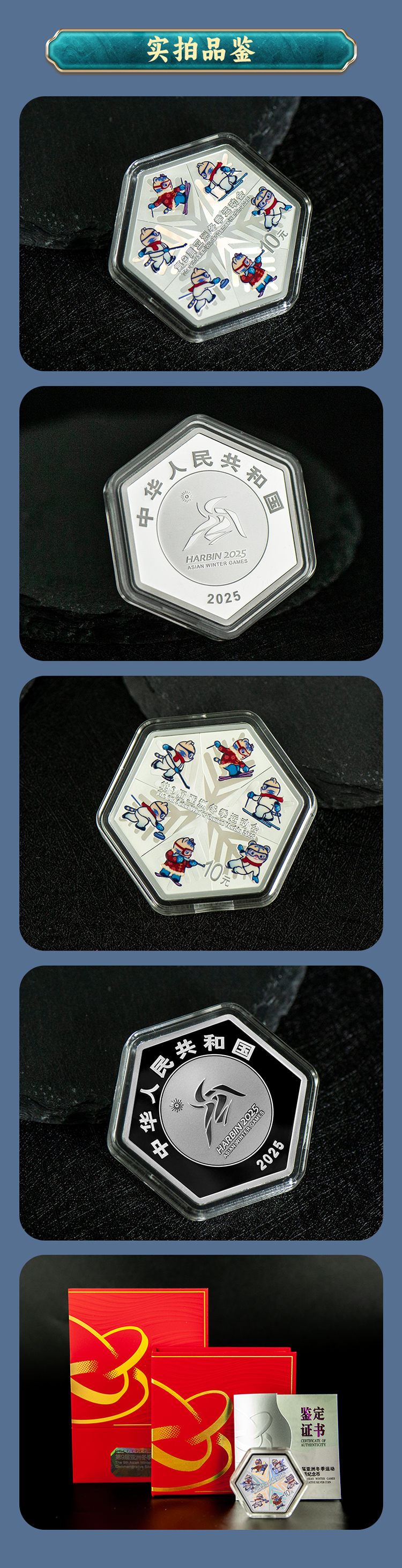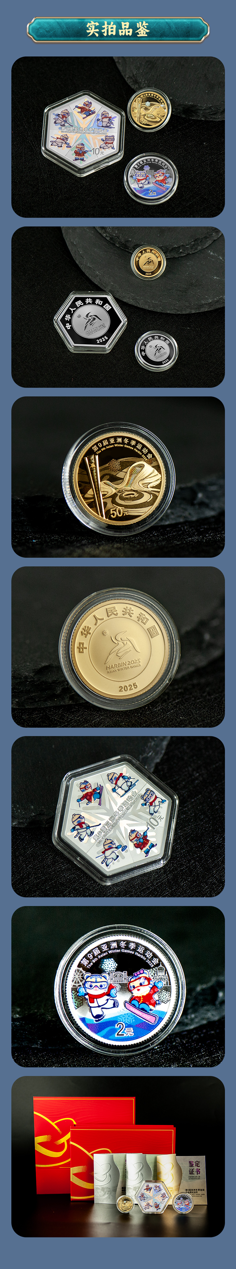 2025第9届亚洲冬季运动会 金银币大全套3克金5克银30克六边形银币