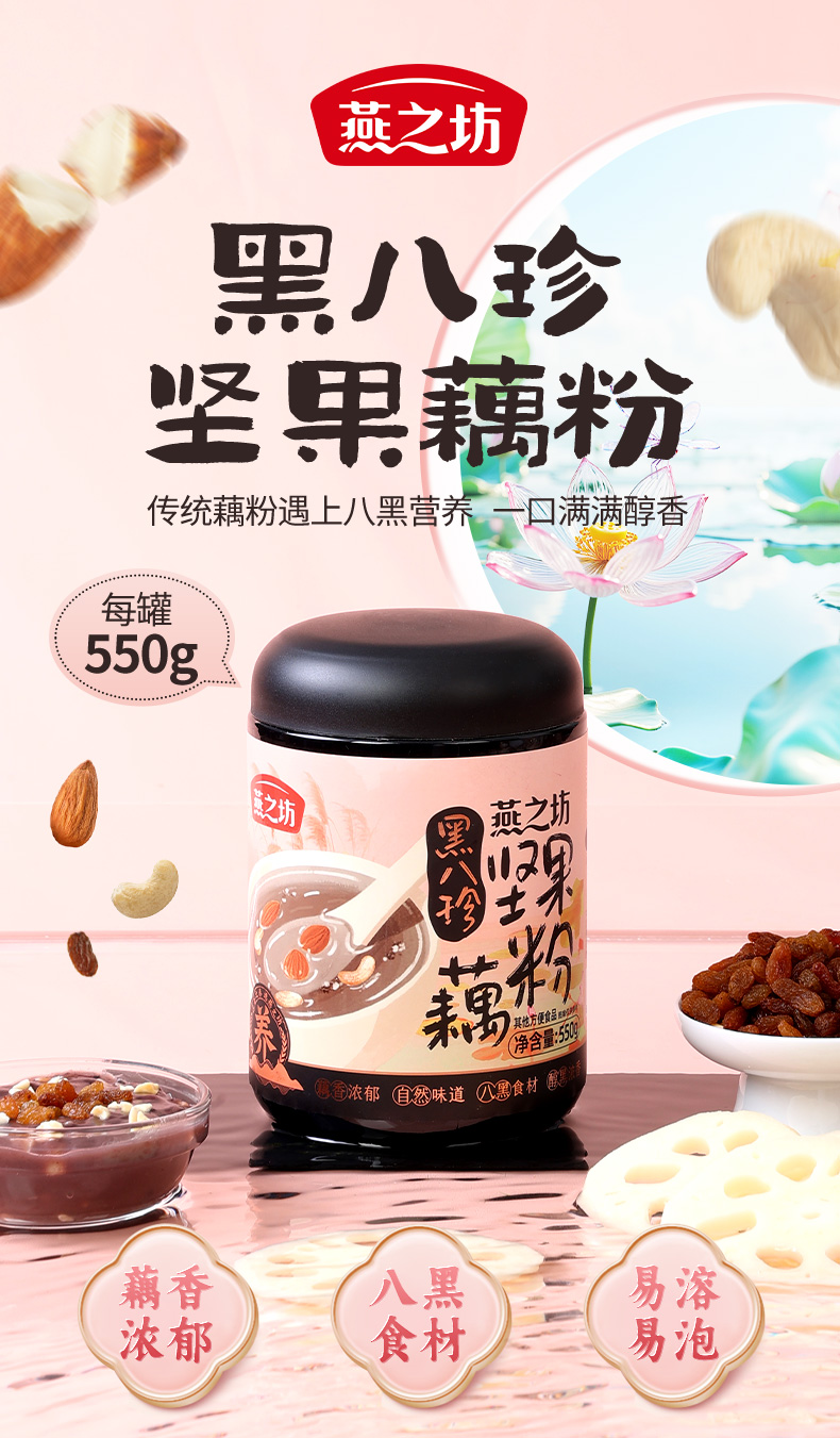 【商城专属】燕之坊黑八珍坚果藕粉550g