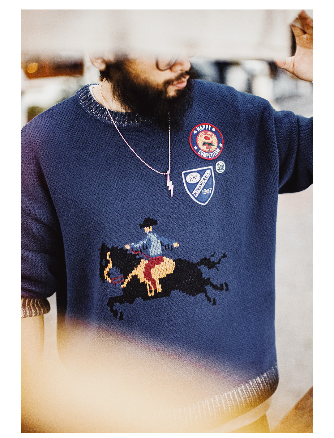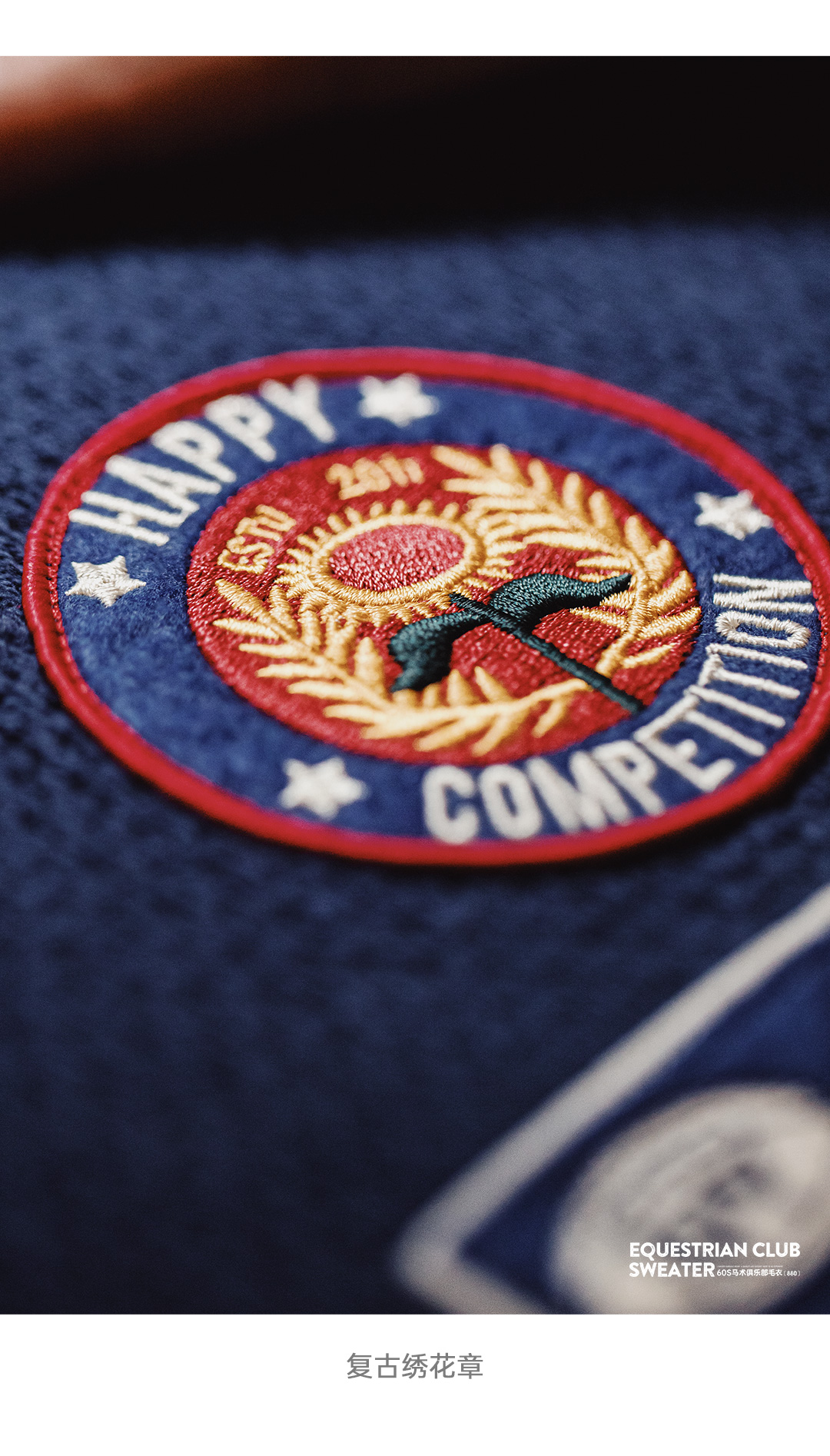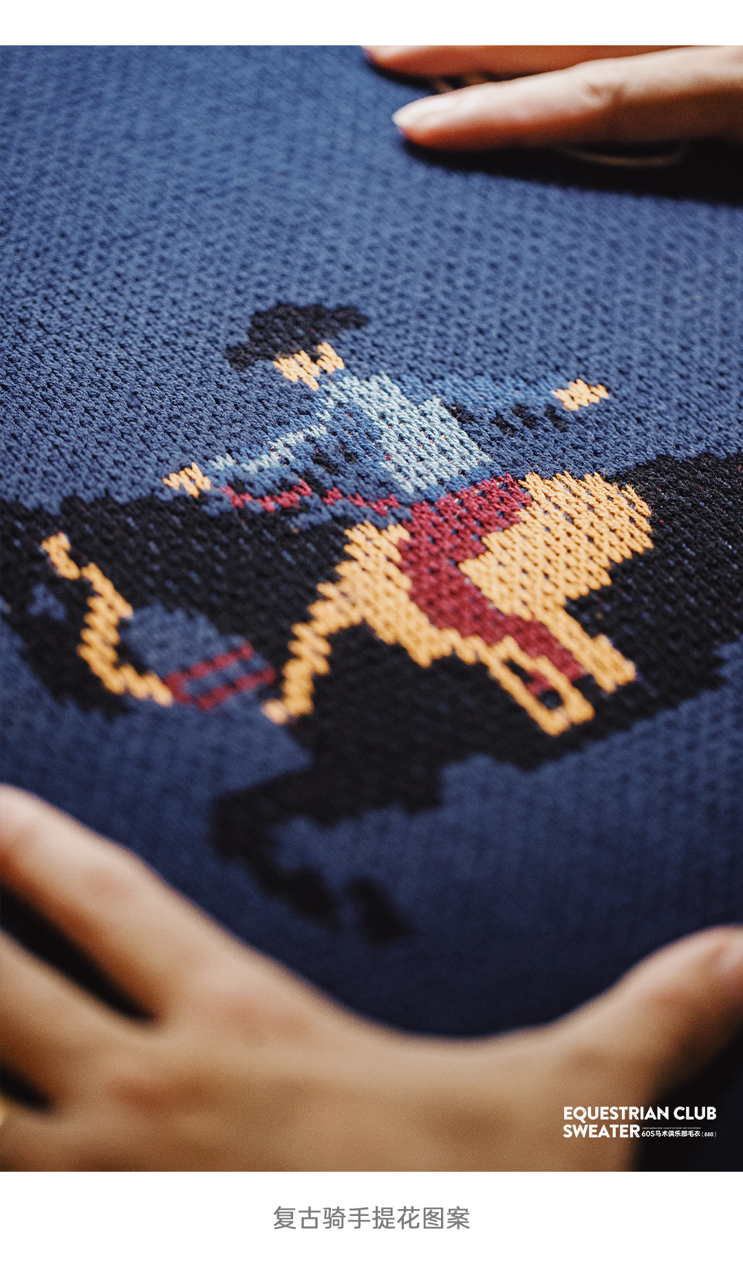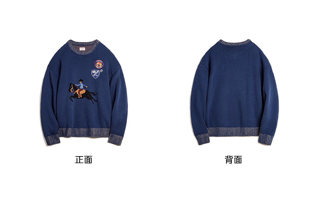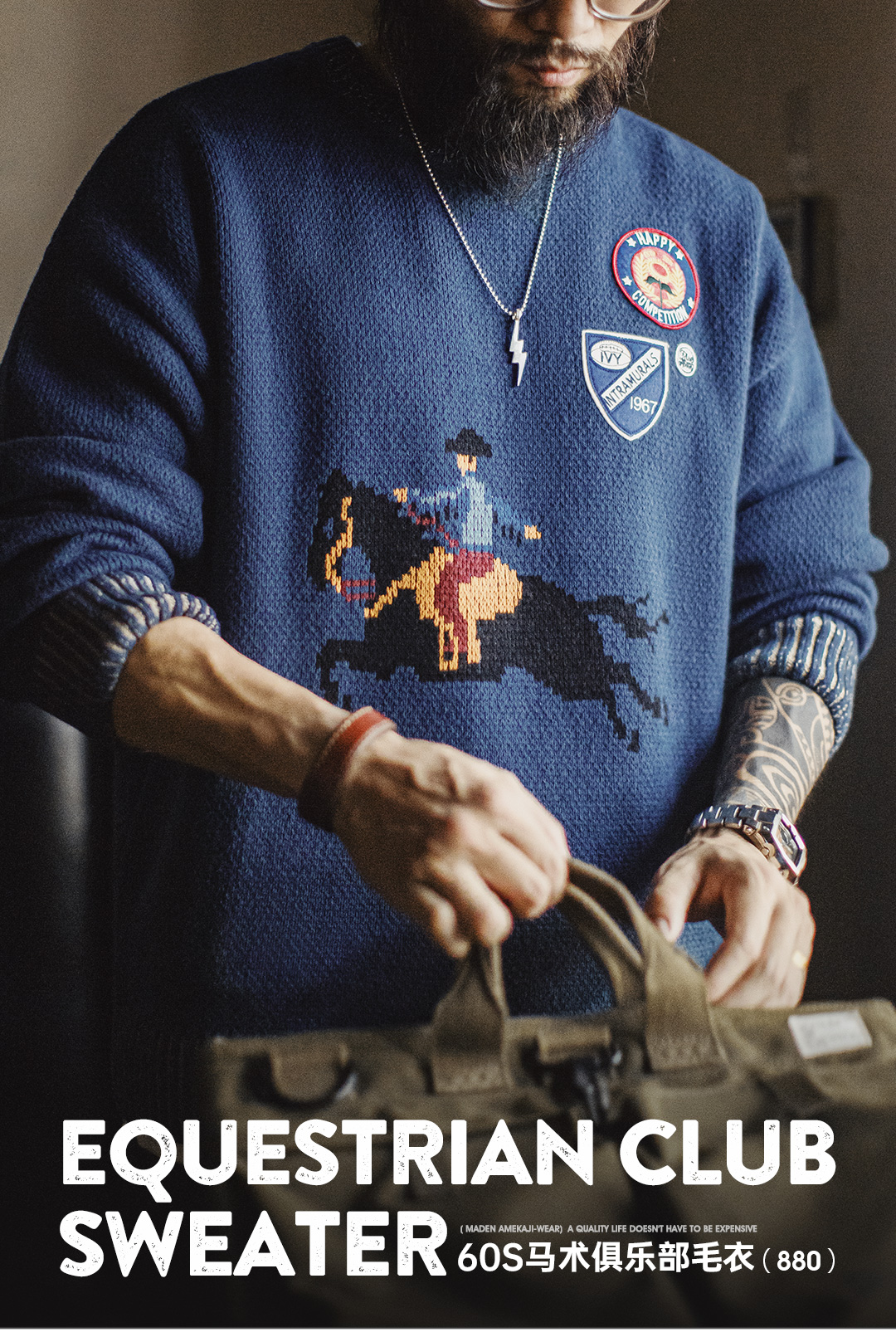 马登工装美式复古刺绣撞色毛衣保暖撞色外穿螺纹领口针织衫男秋冬