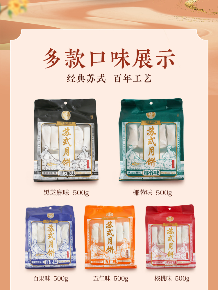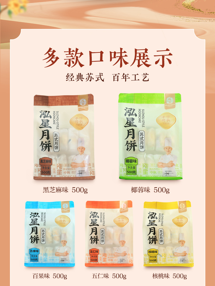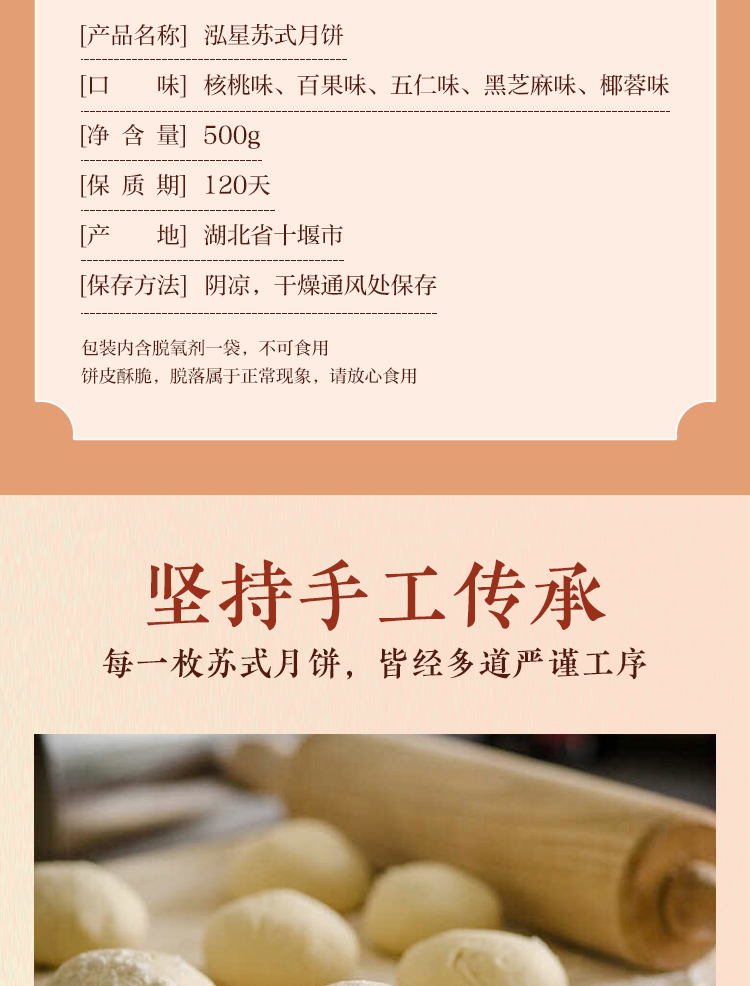 【全国包邮,部分地区除外】竹溪泓星苏式月饼多口味可选 500g/袋(10枚)