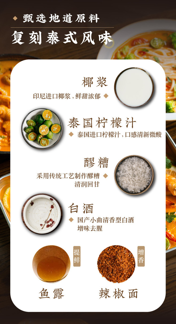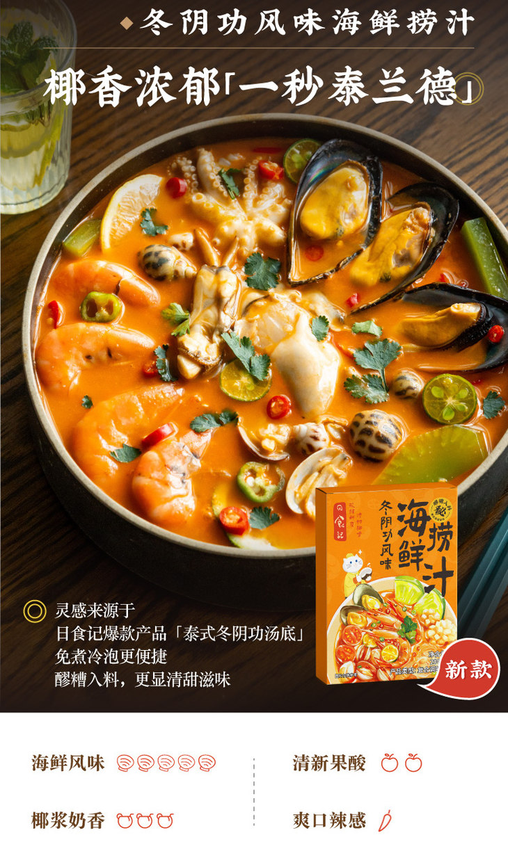 冬阴功风味捞汁,则是加入了印尼进口椰浆,鲜甜浓郁;泰国柠檬汁,让口感清新微酸;还有采用传统工艺制作醪糟,让味道清润回甘;国产小曲清香型白酒,去掉海鲜自带的腥气;以及鱼露和辣椒面提味,入口湛江的泰国气息。