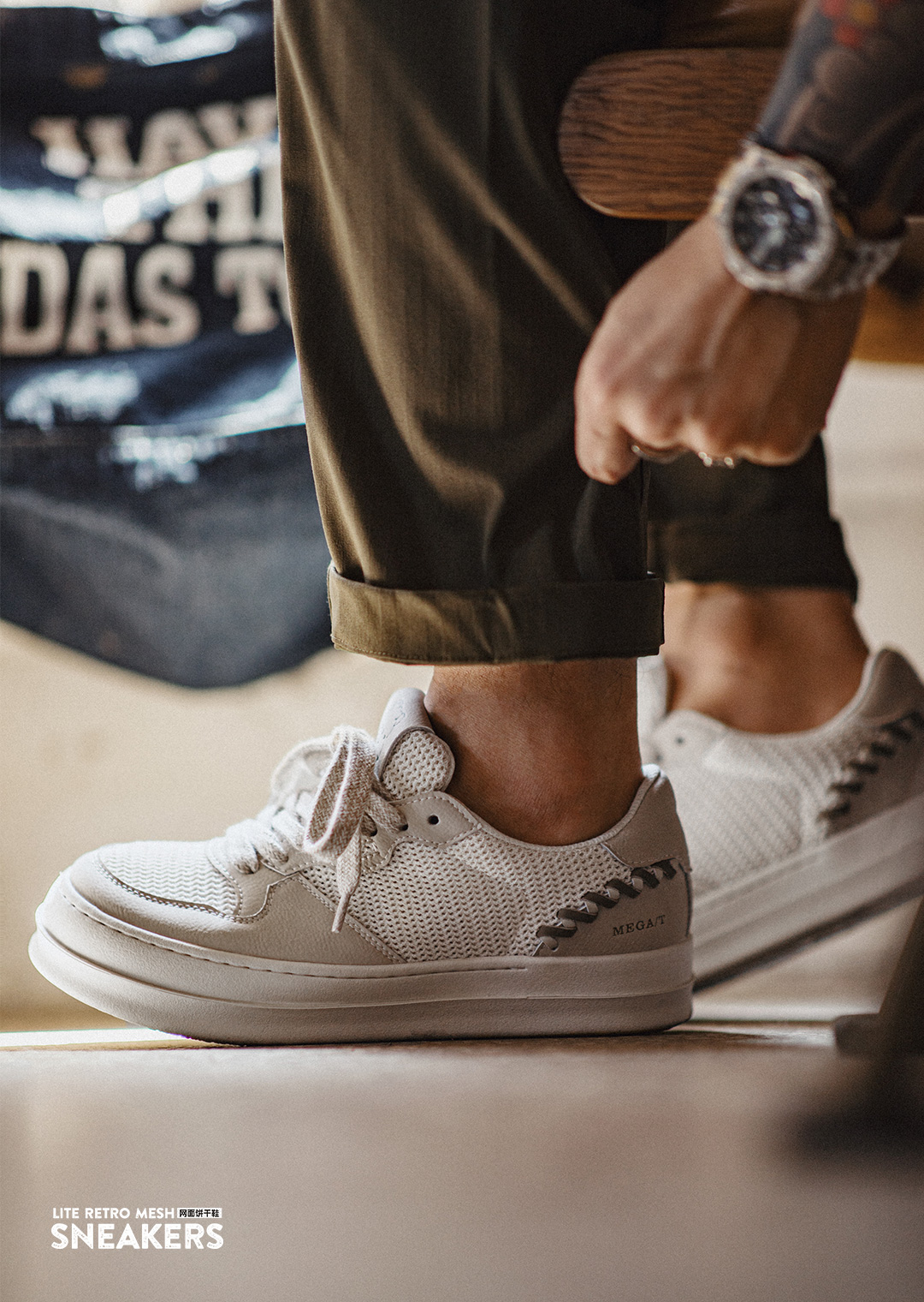 马登夏季男士新款厚底小白鞋低帮薄款网面透气轻便百搭休闲板鞋子