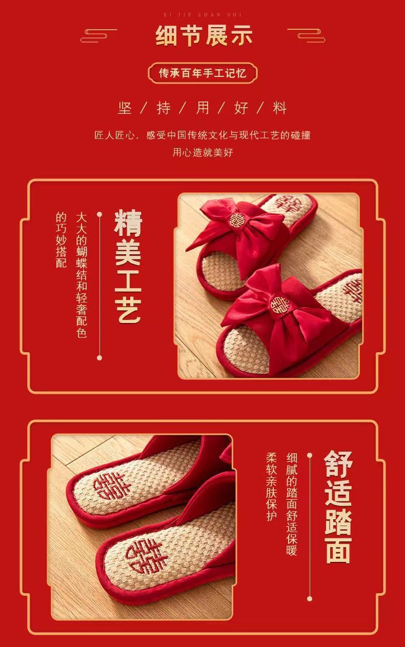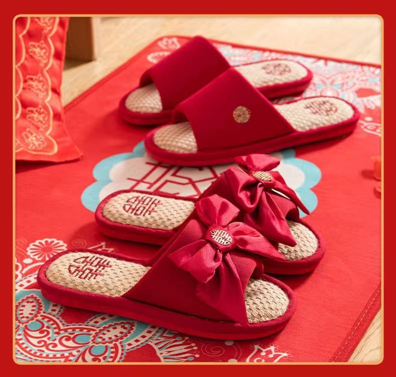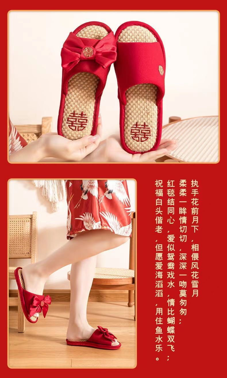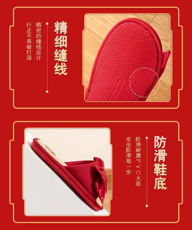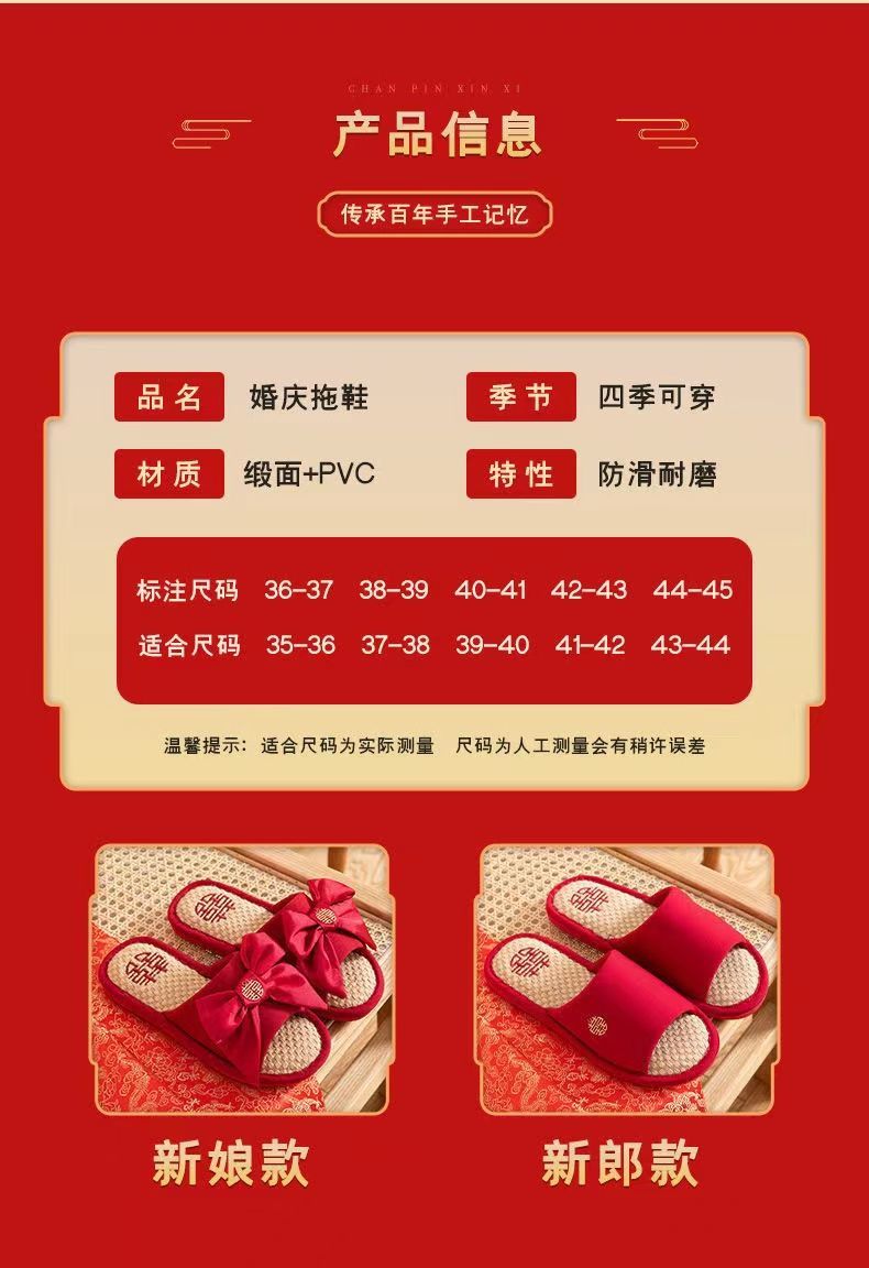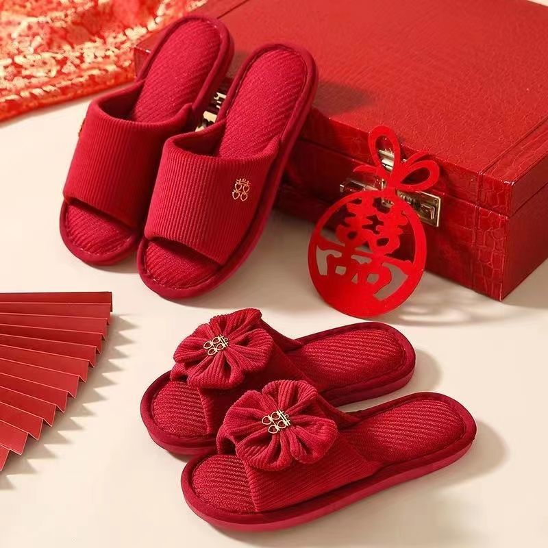 结婚拖鞋喜庆红色一对婚庆夏季新婚情侣轻奢晨袍陪嫁喜字新娘室内