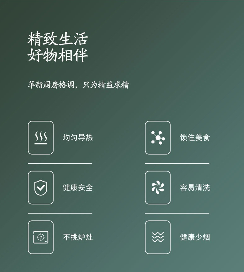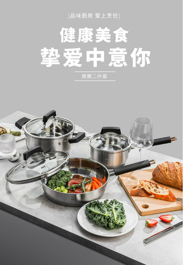 3.多种锅型组合套装,更符合现代厨房需求,将食物制作变得更加专业。