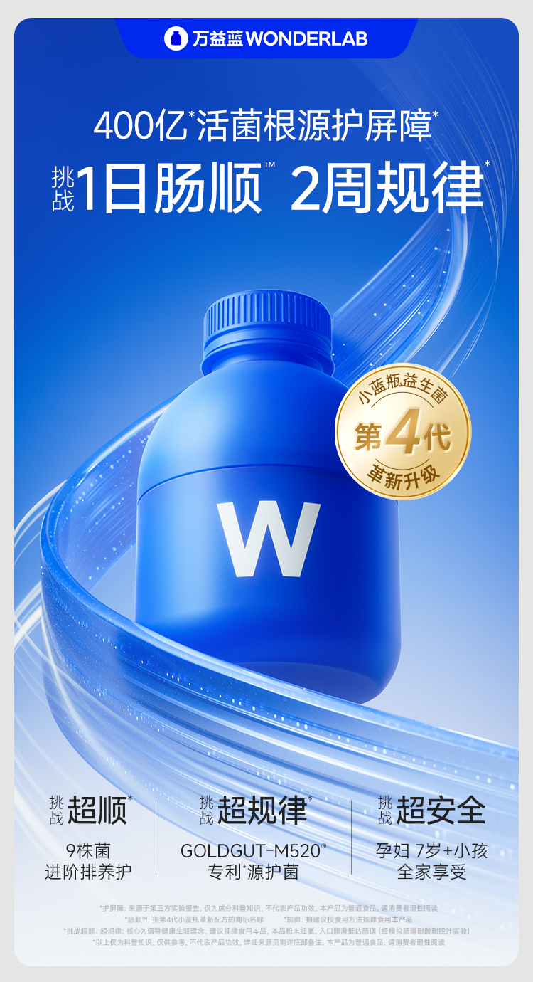[屁侠推荐]万益蓝 WonderLab 小蓝瓶全能即食益生菌大人肠胃冻干粉